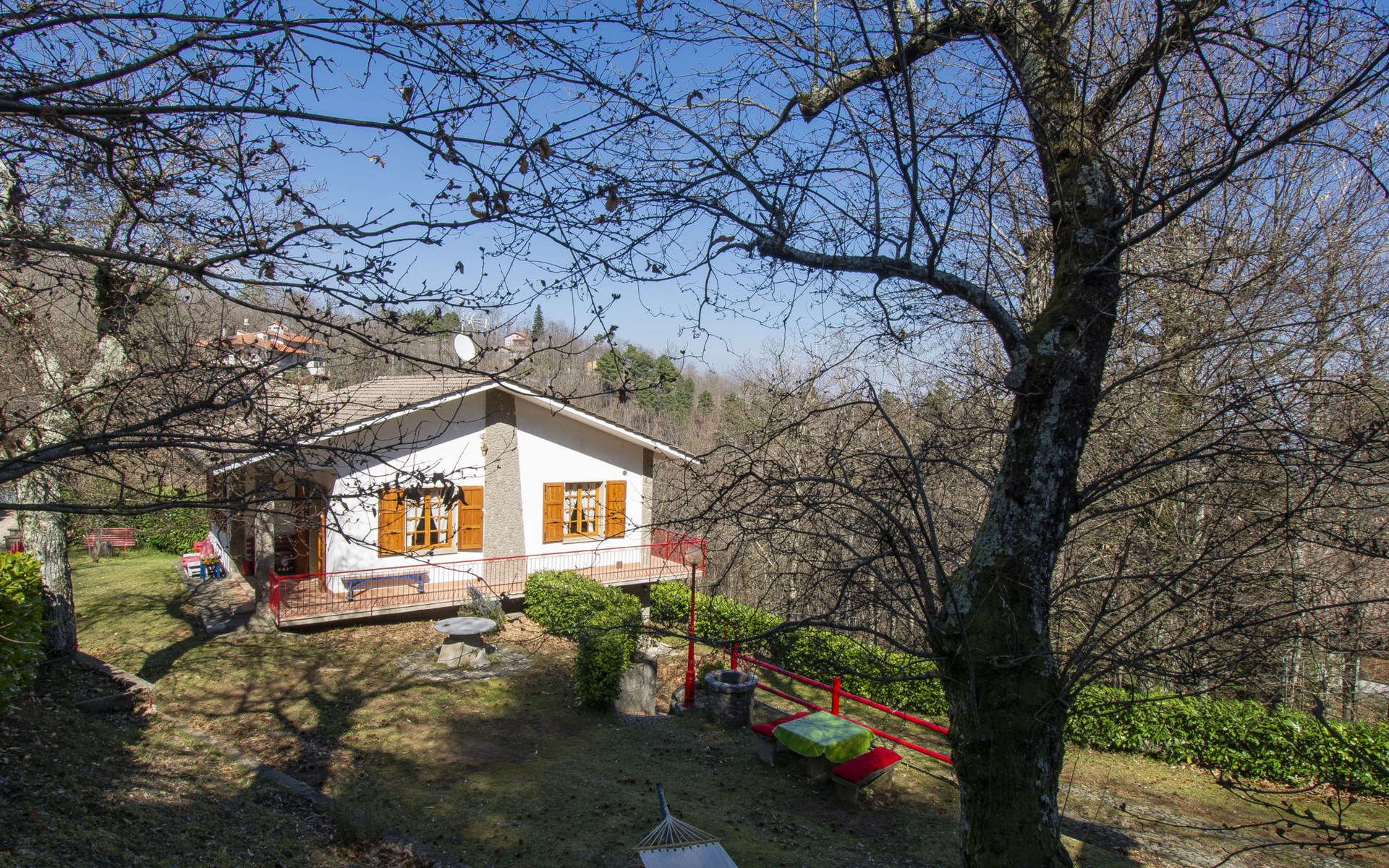 Moderne, mooi huis "Vittoria", 469 m boven zeeniveau, omgeven door bomen. Aan de rand van de plaats, 5 km van het centrum van Marliana, rustige, verhoogde ligging, 60 km van zee, te midden van groen. Voor alleengebruik: tuin 300 m2 (omheind) met bloemen en bomen. Terras, parkeerplaats (voor 2 auto's) op het terrein. Levensmiddelenwinkel 5 km, restaurant 300 m, bar, bushalte 300 m, zandstrand "Viareggio" 60 km. Attracties in de buurt: Firenze 50 km, Pistoia 25 km, Lucca 40 km, Pisa 60 km. Wandelgebied Riserva Naturale Acquerino 39 km. Auto noodzakelijk. Baby uitrusting op aanvraag (incl.).
