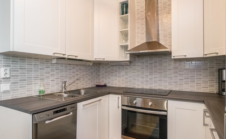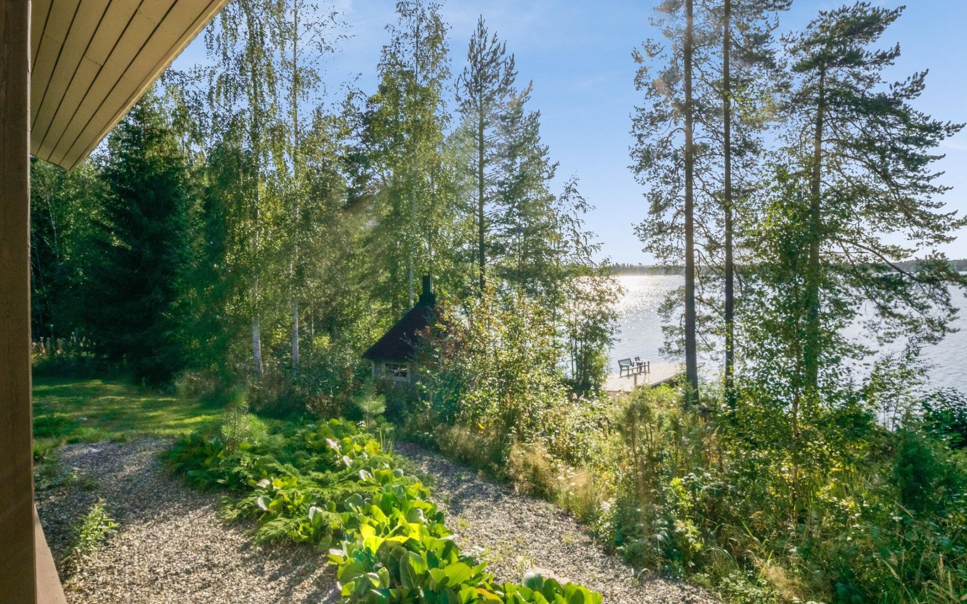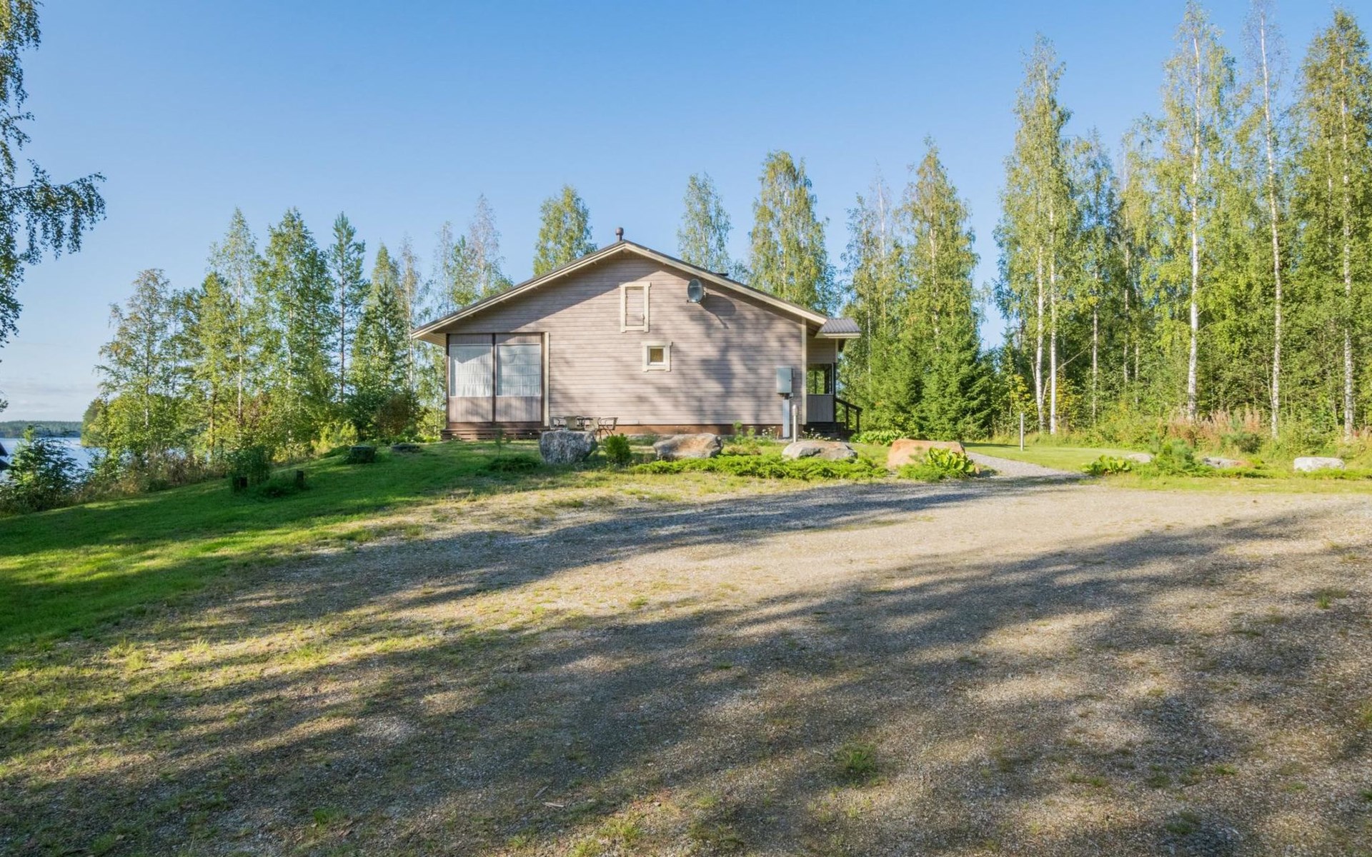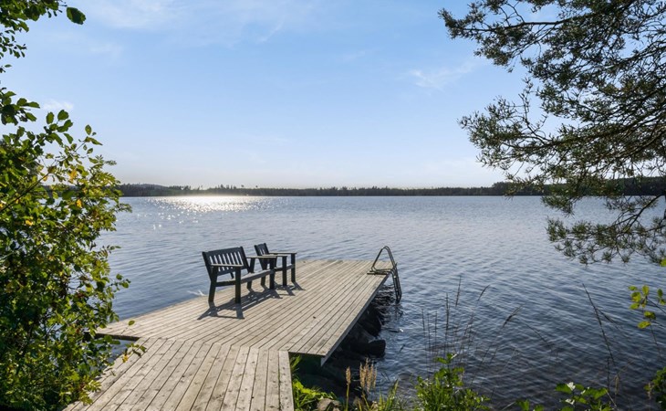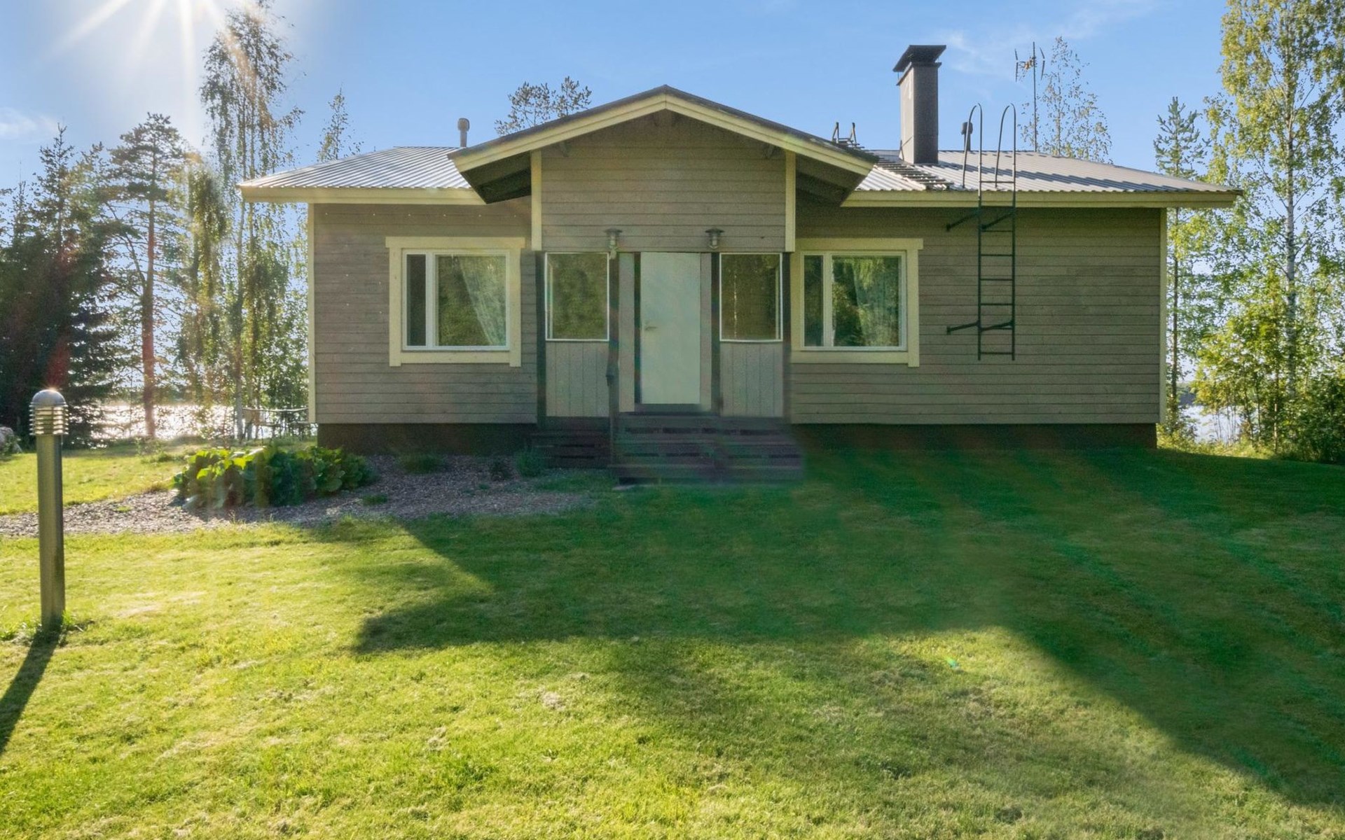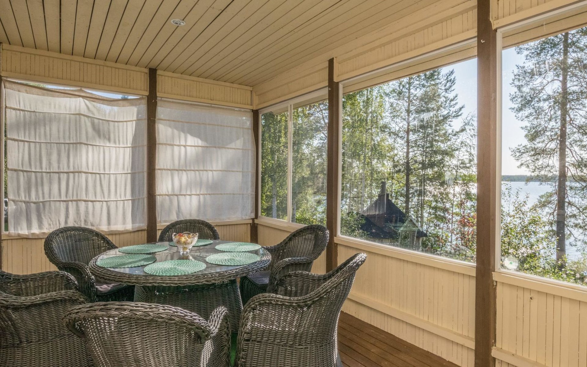 Wooden, inside log-paneled cottage built in 2013, combinated kitchen-living room with sofa bed for two, vestibule, bedroom with double bed and extra bed, bedroom with 2 beds, washroom with walk-in shower and toilet, wood heated sauna, utility/dressing room, spacious glass terrace with two seating groups.