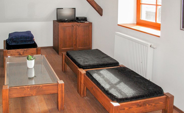 Groot, moderne, comfortabele woonboerderij "Holetín", gerenoveerd in 2012. Aan de rand van de plaats Holetín, rustige, zonnige ligging, gebied met weinig verkeer, 600 m van de bosrand. Voor alleengebruik: terrein 800 m2 (omheind), groot tuin met gazon en bomen, openluchtzwembad rond (2,5 m diameter, 160 cm diepte, seizoensgebonden beschikbaarheid: 01.Mei. - 30.Sep.). Kinderzwembad, tafeltennis, badminton, terras, tuinmeubelen, barbecue, grill, kinderspeelplaats (glijbaan, zandbak). In het huis: internetaansluiting, Internet (WiFi), speelkamer, bergruimte voor fietsen, zonneterras, berging voor ski's, centrale verwarming, alarmsysteem, wasserette, wasmachine, droger, droogruimte, fietsen beschikbaar (extra). Beschikbaar: fietsen (2), kinderfietsen (1). Parkeerplaats (voor 4 auto's) bij het huis. Winkel 1 km, levensmiddelenwinkel 1 km, supermarkt 1 km, restaurant 1 km, bushalte 3 km, station 600 m, openluchtzwembad 1 km, overdekt zwembad 2 km. Golfterrein (9 holes) 10 km, skilift 4 km, langlaufloipe 10 km. Attracties in de buurt: Skanzen Veselý Kopec (Museum), Galerie Hlinsko. Geschikt voor families, geschikt voor senioren. Geschikt voor evenementen. Vissen toegestaan (visvergunning noodzakelijk), op aanvraag. Lokale verkoop van streekproducten. Hoofdstraat 150 m van het huis.
