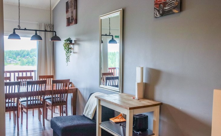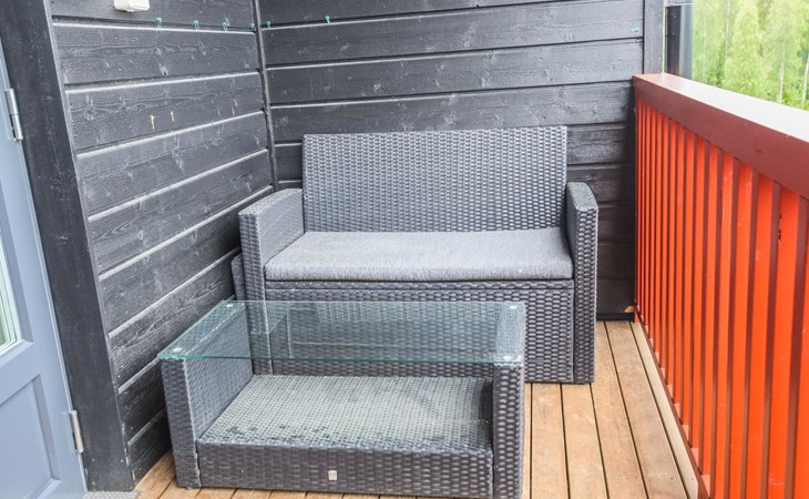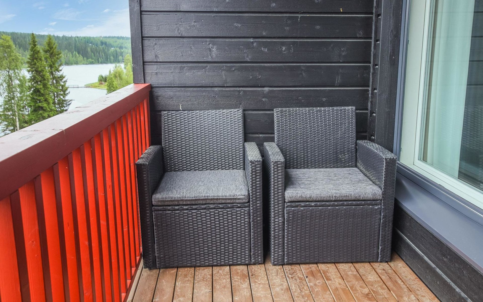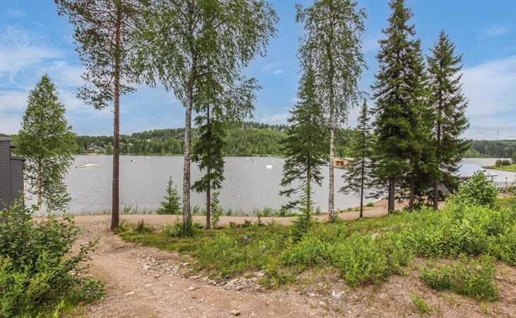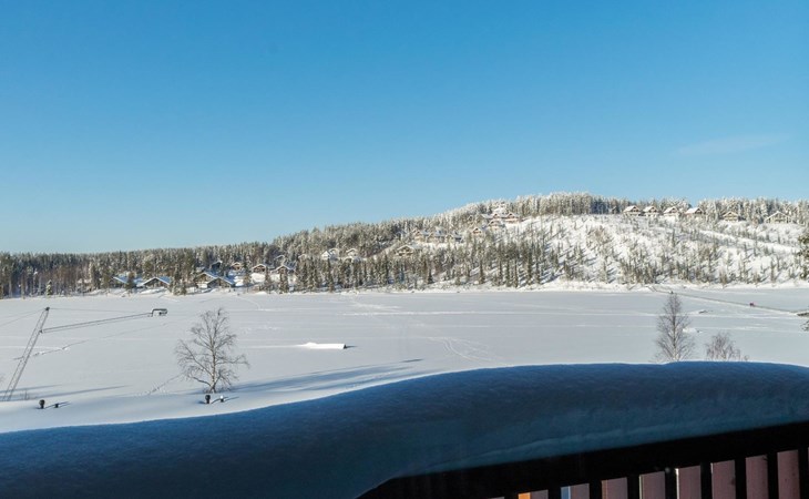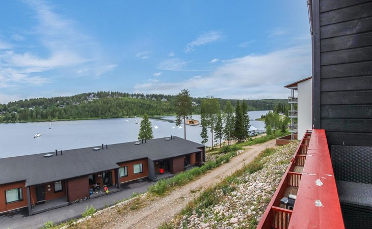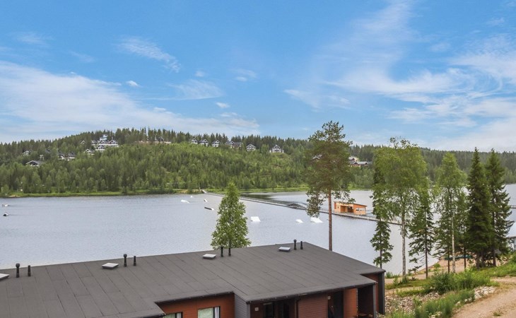 Balcony with view of deep lake. Balcony furniture for four. Wakeboard track right next door.