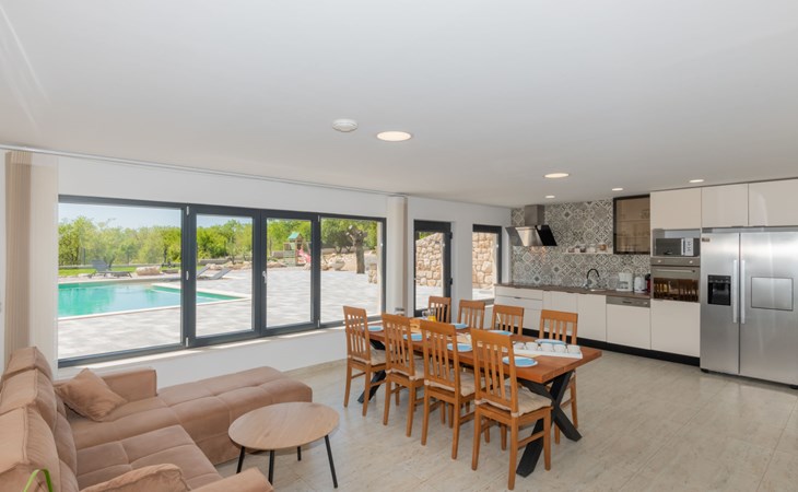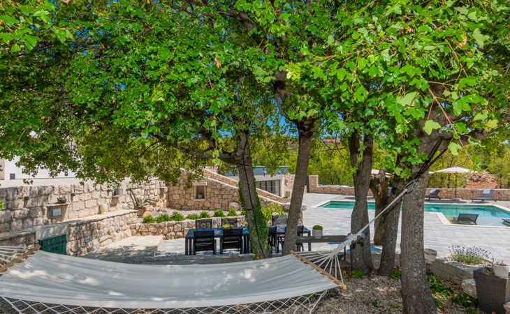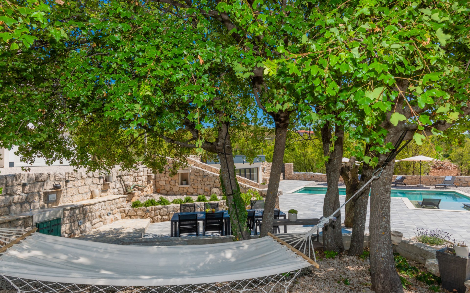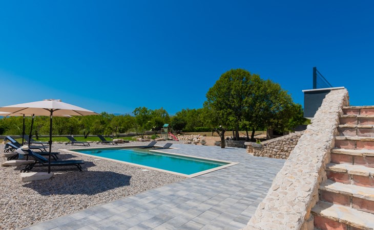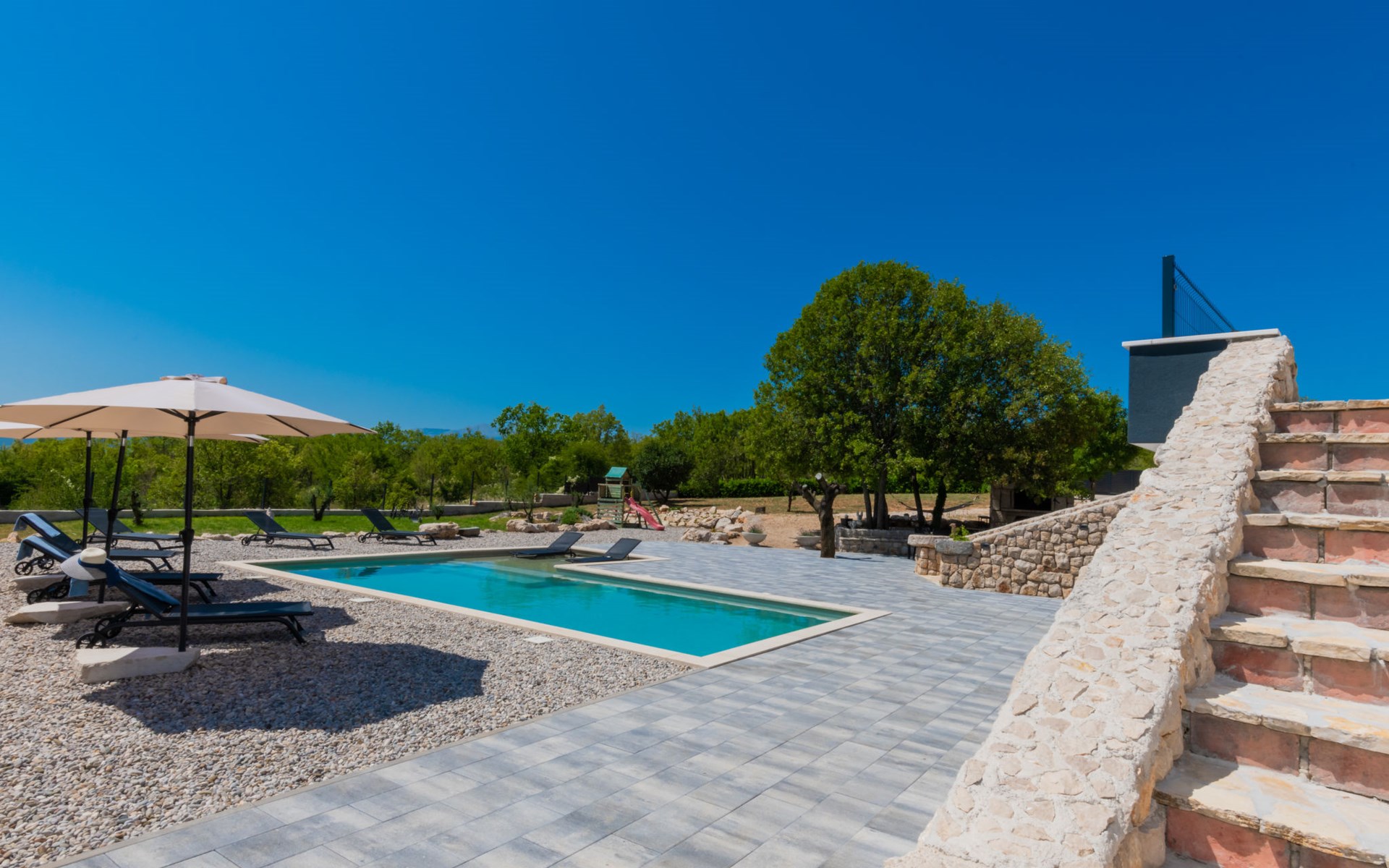 Donji Proložac 15 km van Imotski: Eengezinswoning "Secret Gem", van 2 verdiepingen in 2023. 5 km van het centrum van Donji Proložac, geïsoleerde, rustige, zonnige ligging, 33 km van zee. Voor alleengebruik: terrein 1.000 m2 (omheind), tuin met bomen, openluchtzwembad hoekig (5 x 10 m, 150 cm diepte, seizoensgebonden beschikbaarheid: 01.Jun. - 01.Okt.) met trap. Buitendouche, poolhouse met koelkast en fornuis, terras (50 m2), tuinmeubelen. In het huis: internetaansluiting, wasmachine, droger. Parkeerplaats (voor 4 auto's) bij het huis op het terrein. Winkel 5 km, supermarkt 5 km, restaurant 10 km, bushalte 900 m, kiezelstrand 30 km. Attracties in de buurt: Modro jezero 10 km.