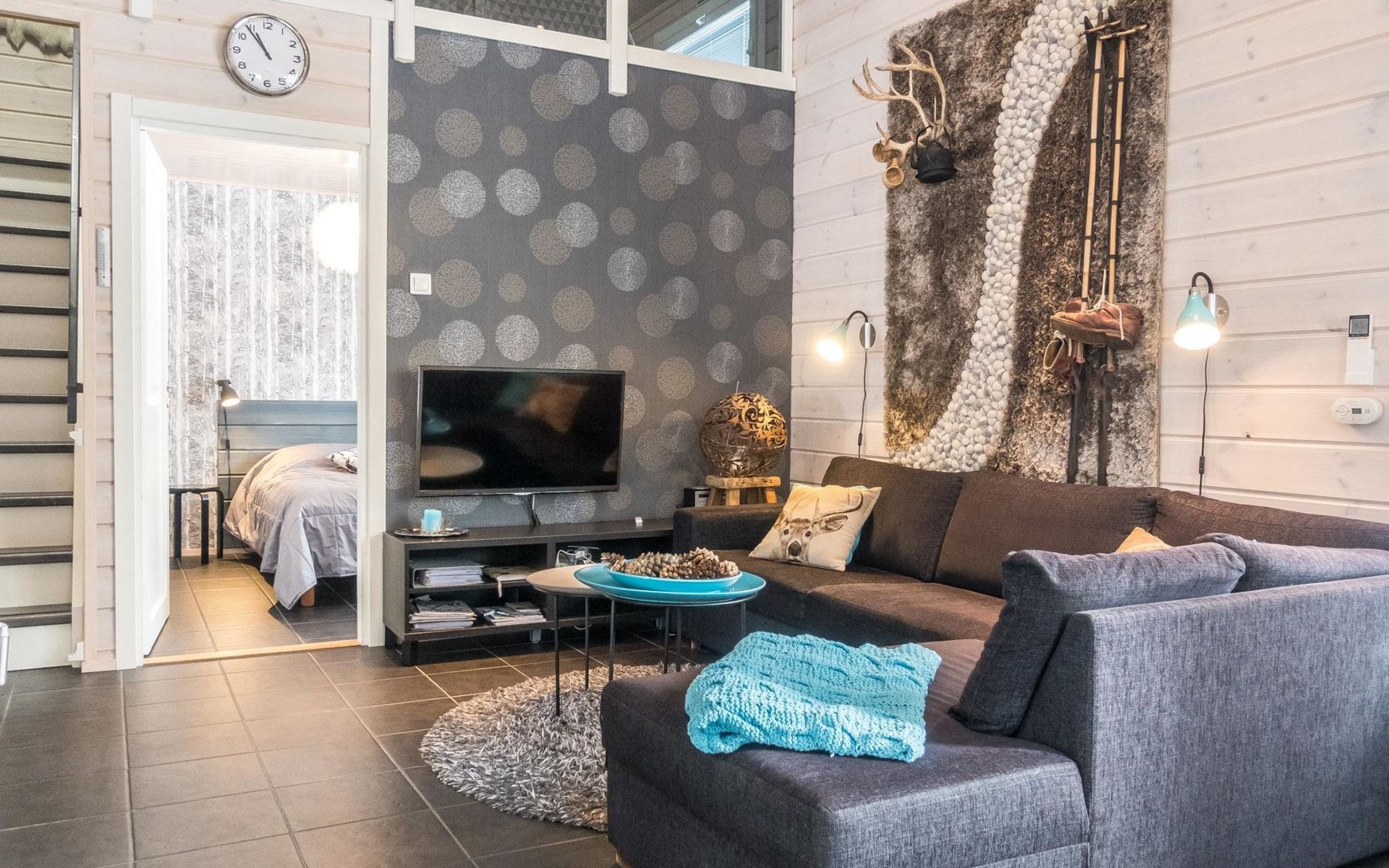 Levi center services 2.5 - 3.0 km. The nearest ski slope is Eturinne 2.9 km. Golf Course 6.5 km.