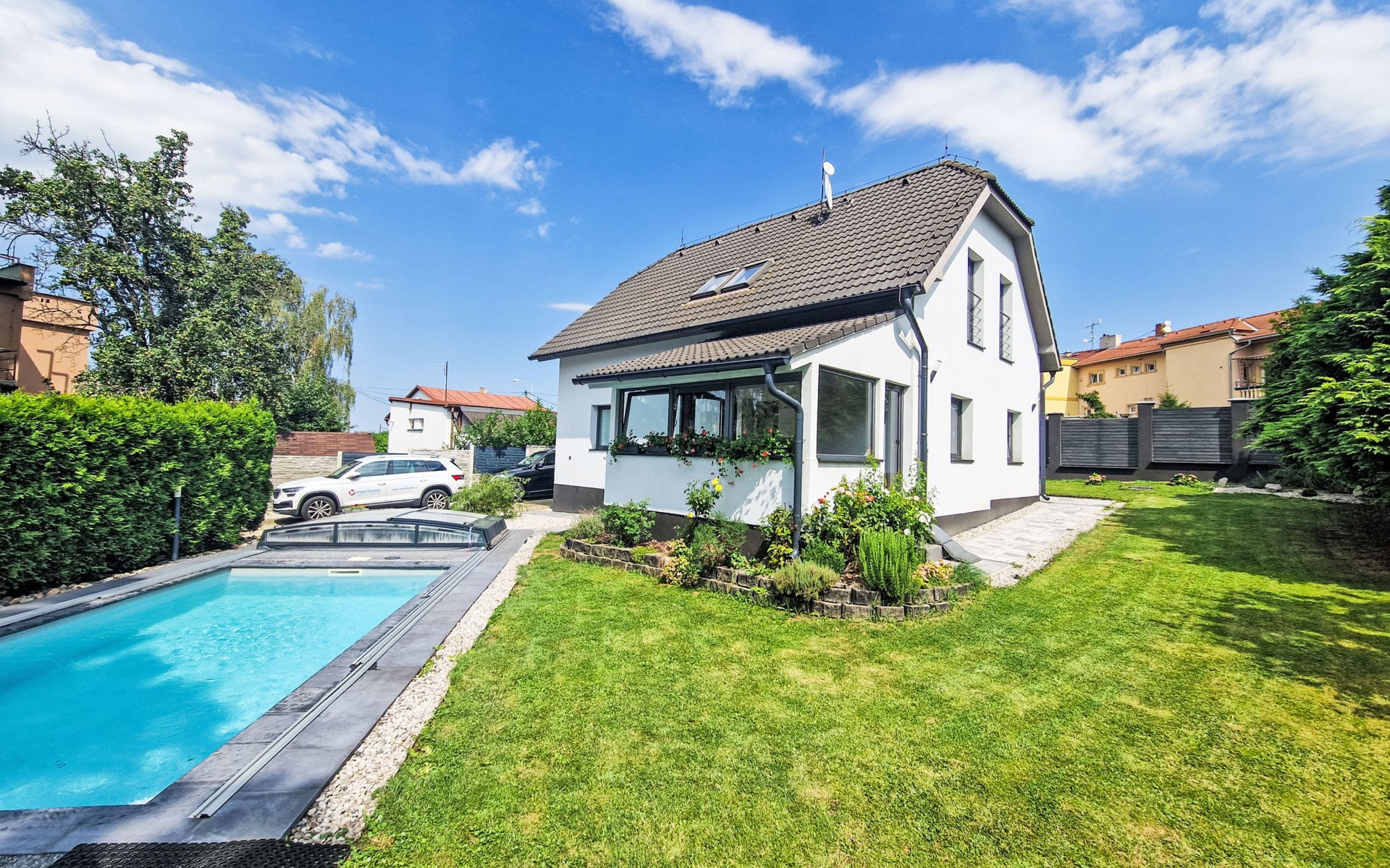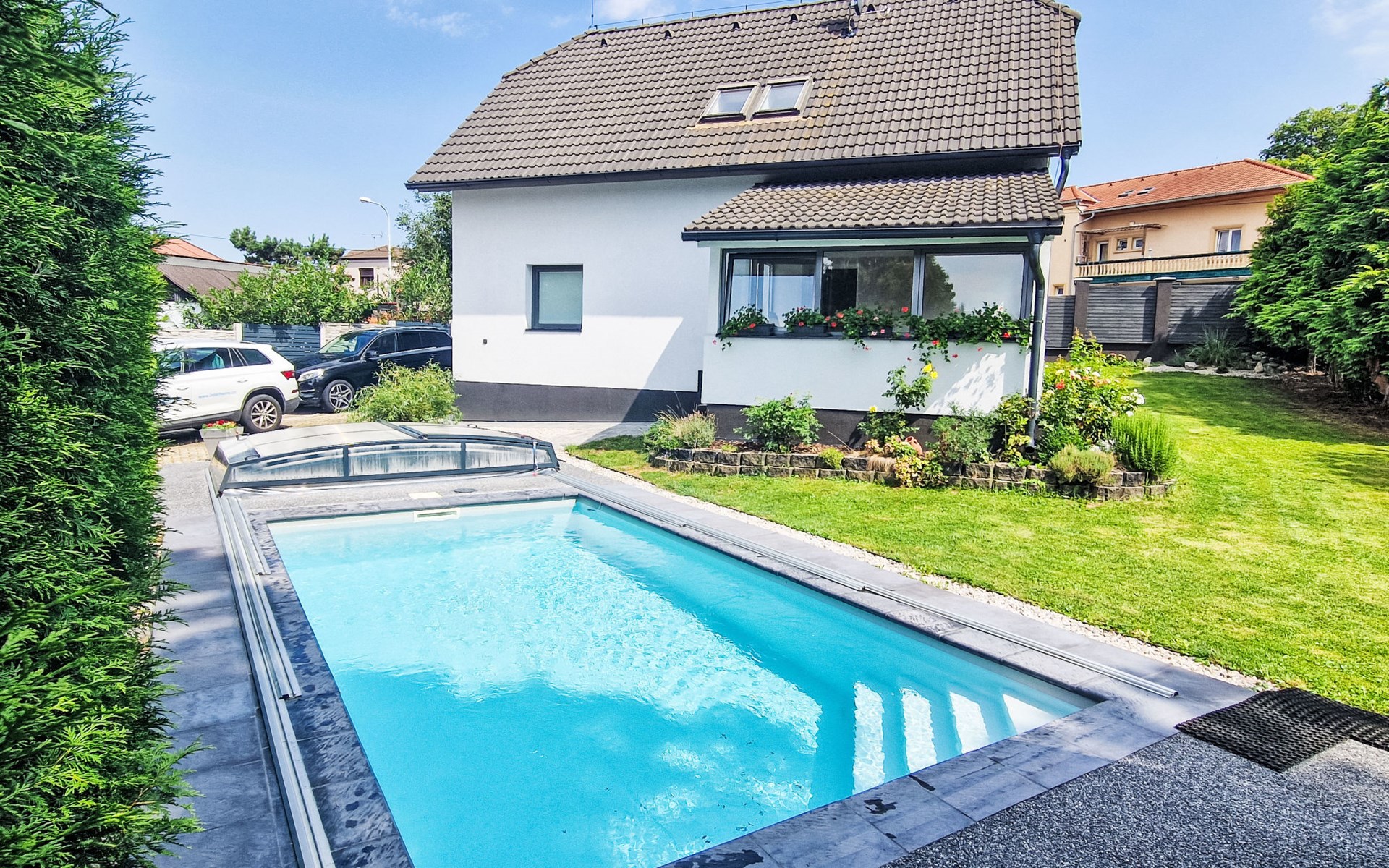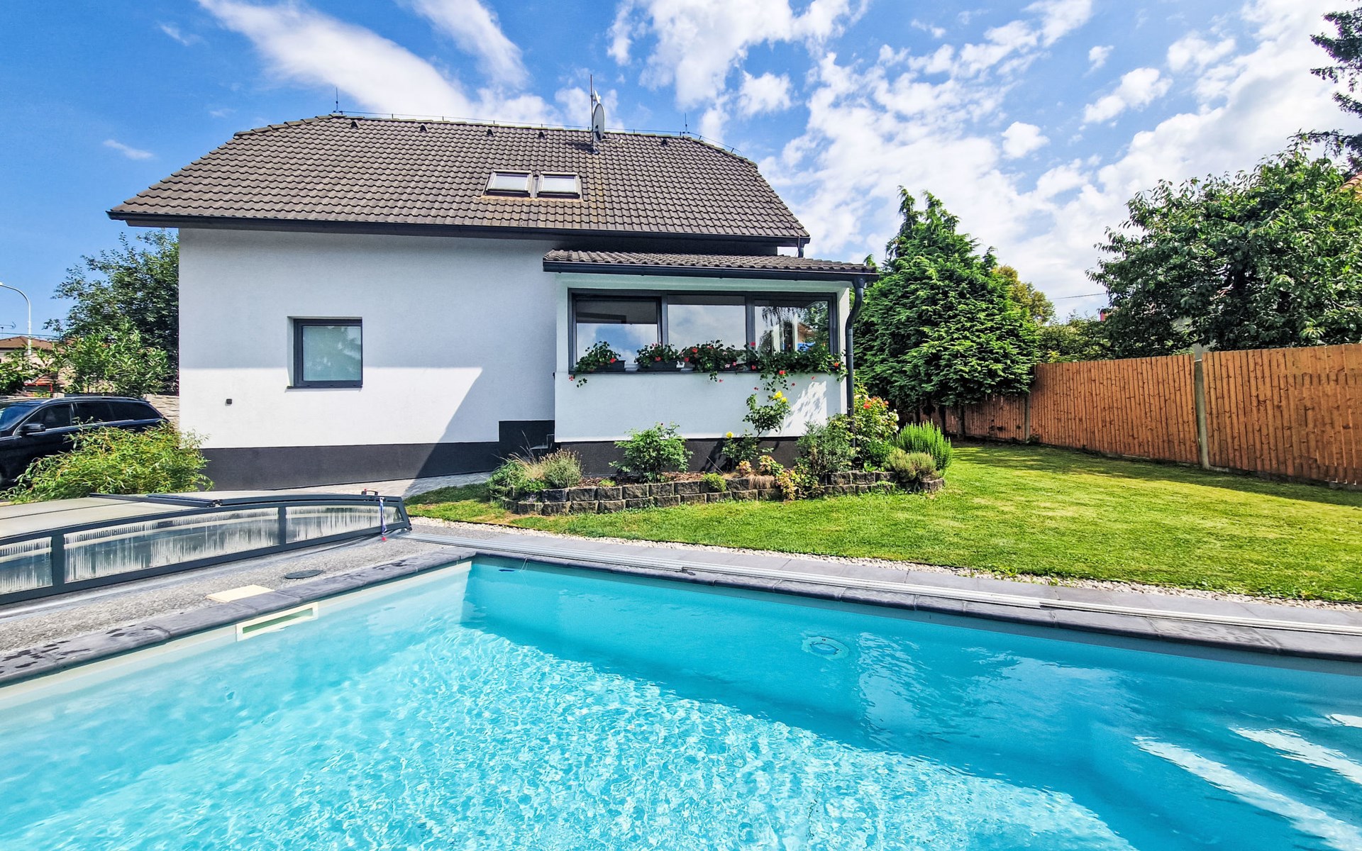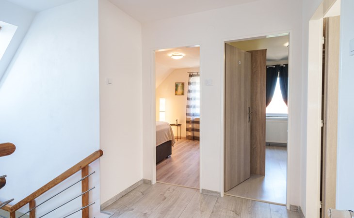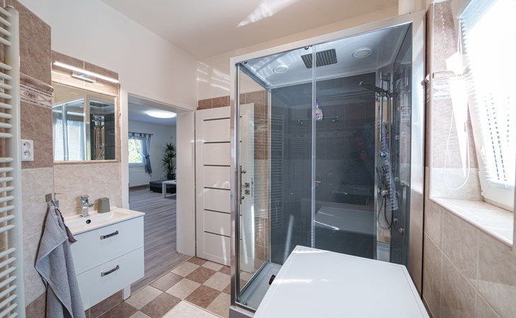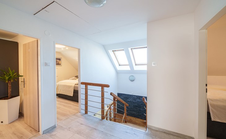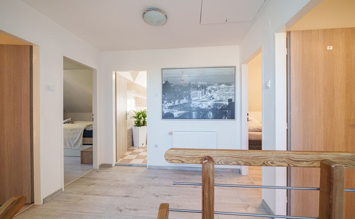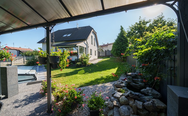 Zeer mooi eengezinswoning "Starý Chodov", van 2 verdiepingen, vrijstaand, gerenoveerd in 2024. In de wijk Chodov. Voor alleengebruik: terrein (omheind), tuin met gazon, binnenplaats, openluchtzwembad verwarmd (6 x 3 m, 120 cm diepte, seizoensgebonden beschikbaarheid: 15.Apr. - 15.Okt.) met zeewater, trap en oprolbaar afdekscherm. Prieel, tuinmeubelen, barbecue. In het huis: centrale verwarming. Parkeerplaats (voor 4 auto's) bij het huis. Levensmiddelenwinkel 450 m, supermarkt 550 m, winkelcentrum 1.8 km, restaurant 350 m, bakkerij 600 m, café 550 m, biertuin 250 m, bushalte "Donovalská" 150 m, park "Hotsivař" 800 m, overdekt zwembad 850 m, meer (zwemmen) "Hostivařská přehrada" 2.6 km. Golfterrein (18 holes) 5.5 km, tennishal 3.5 km, midgetgolf 1 km, sportcentrum 800 m, wandelroutes 800 m vanaf het huis, fietspad 700 m, kinderspeelplaats 550 m. Attracties in de buurt: Chodovská tvrz 1 km, Toulcův Dvůr - vyhlídka, farma 1.7 km, Biotop Lhotka 5.5 km, Průhonice - zámek, park 8 km, Žluté lázně, Podolí, Vyšehrad 8 km, Karlův most, Václavské náměstí, Hradčany. Bekende skigebieden kunnen gemakkelijk worden bereikt: Hostivařská přehrada 2.6 km. Wandelgebied Hostivařský lesopark 800 m, Milíčovský les 2.5 km, Kunratický les 3 km. Geschikt voor families, geschikt voor senioren. De eigenaar accepteert geen jeugdgroepen.