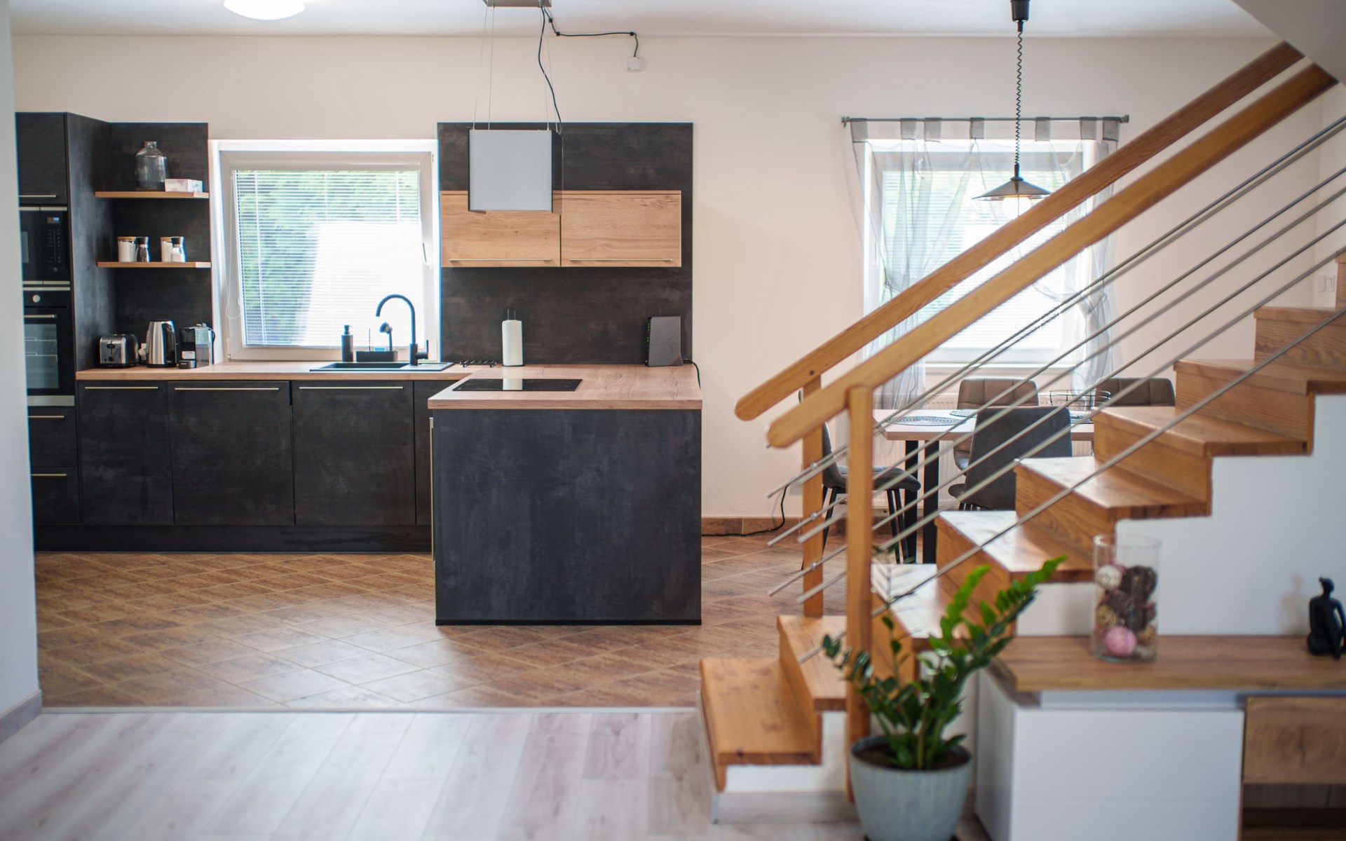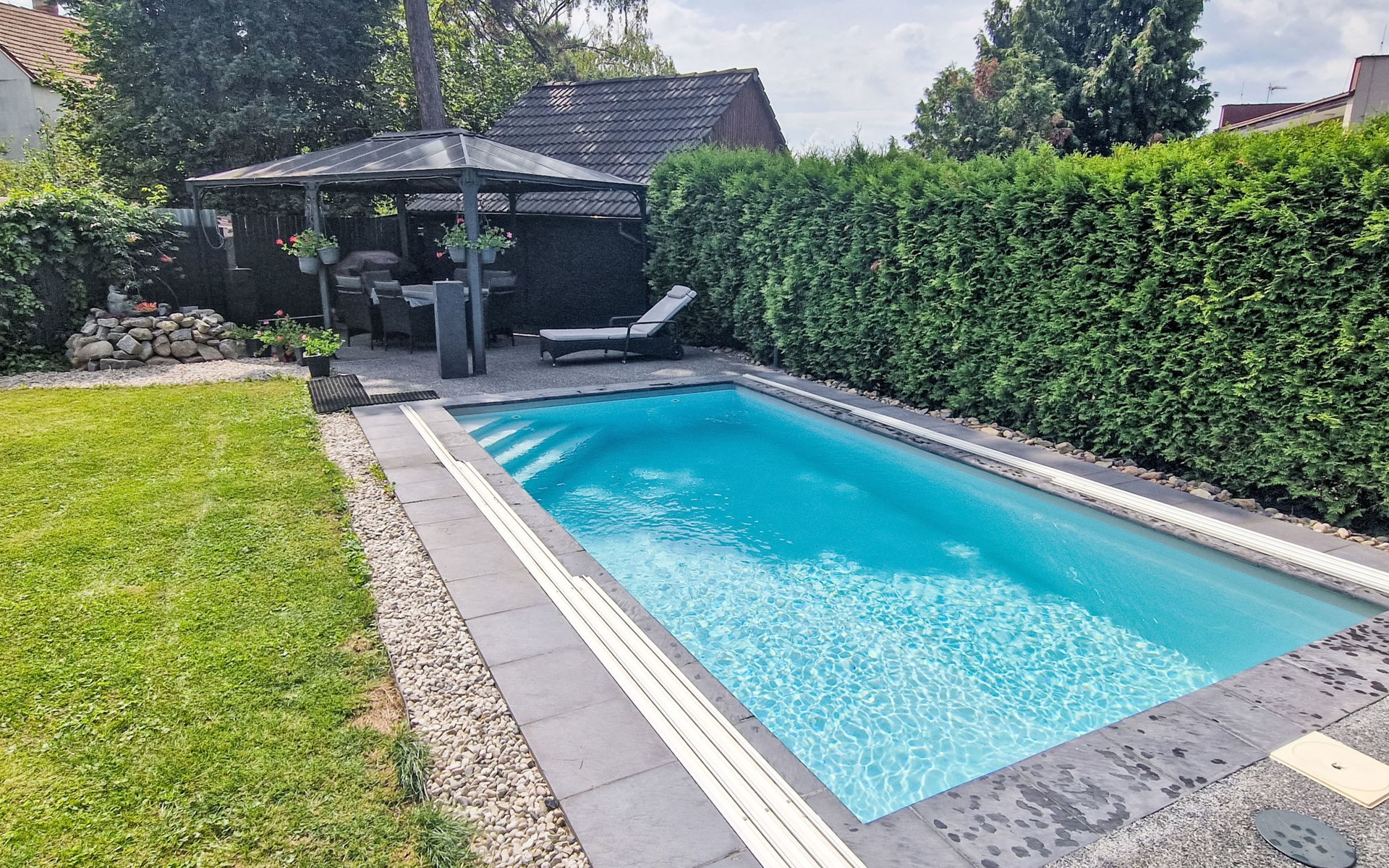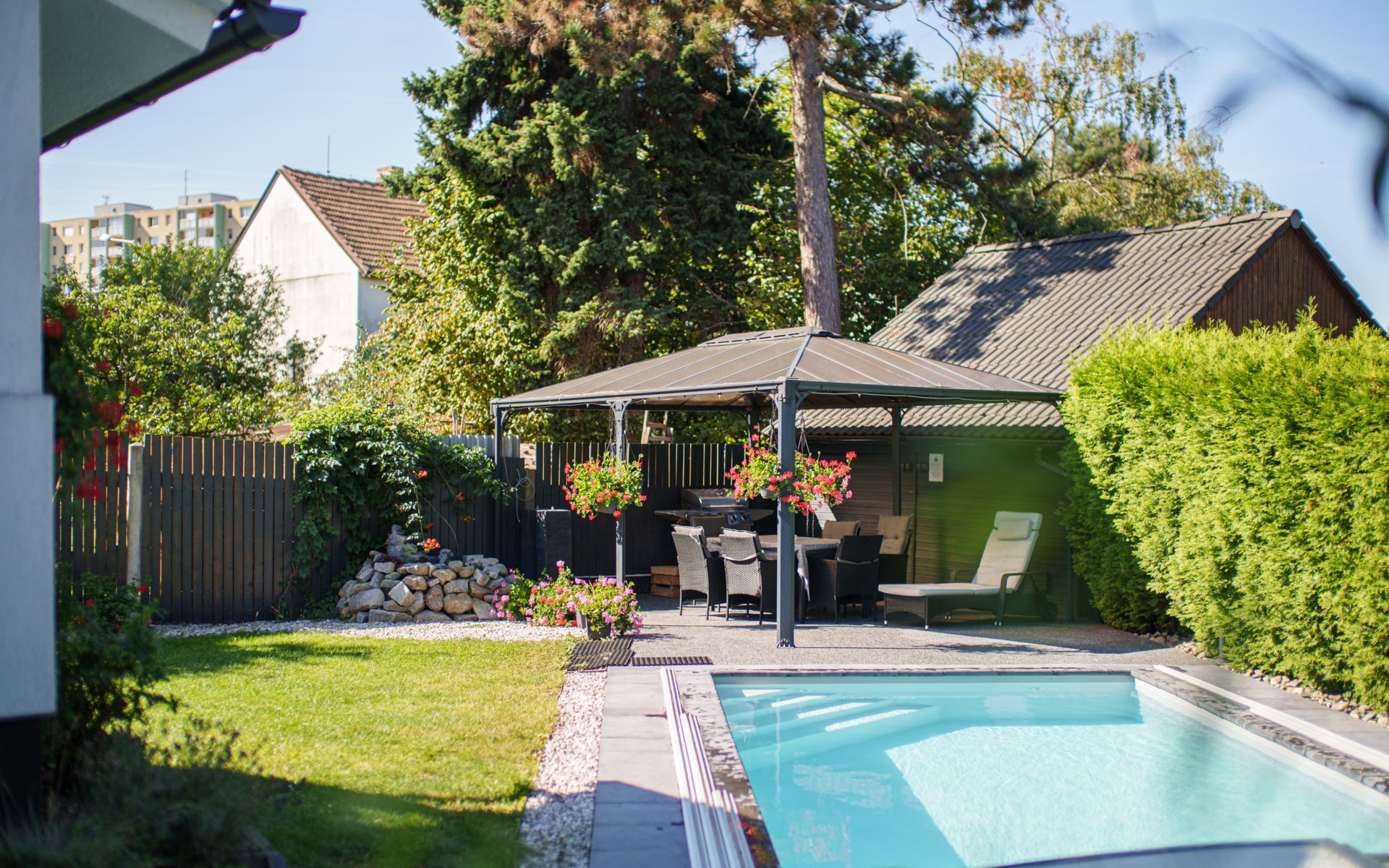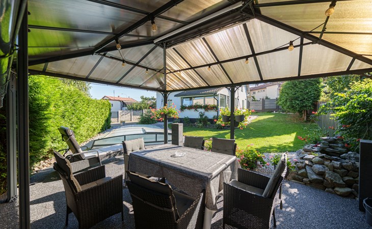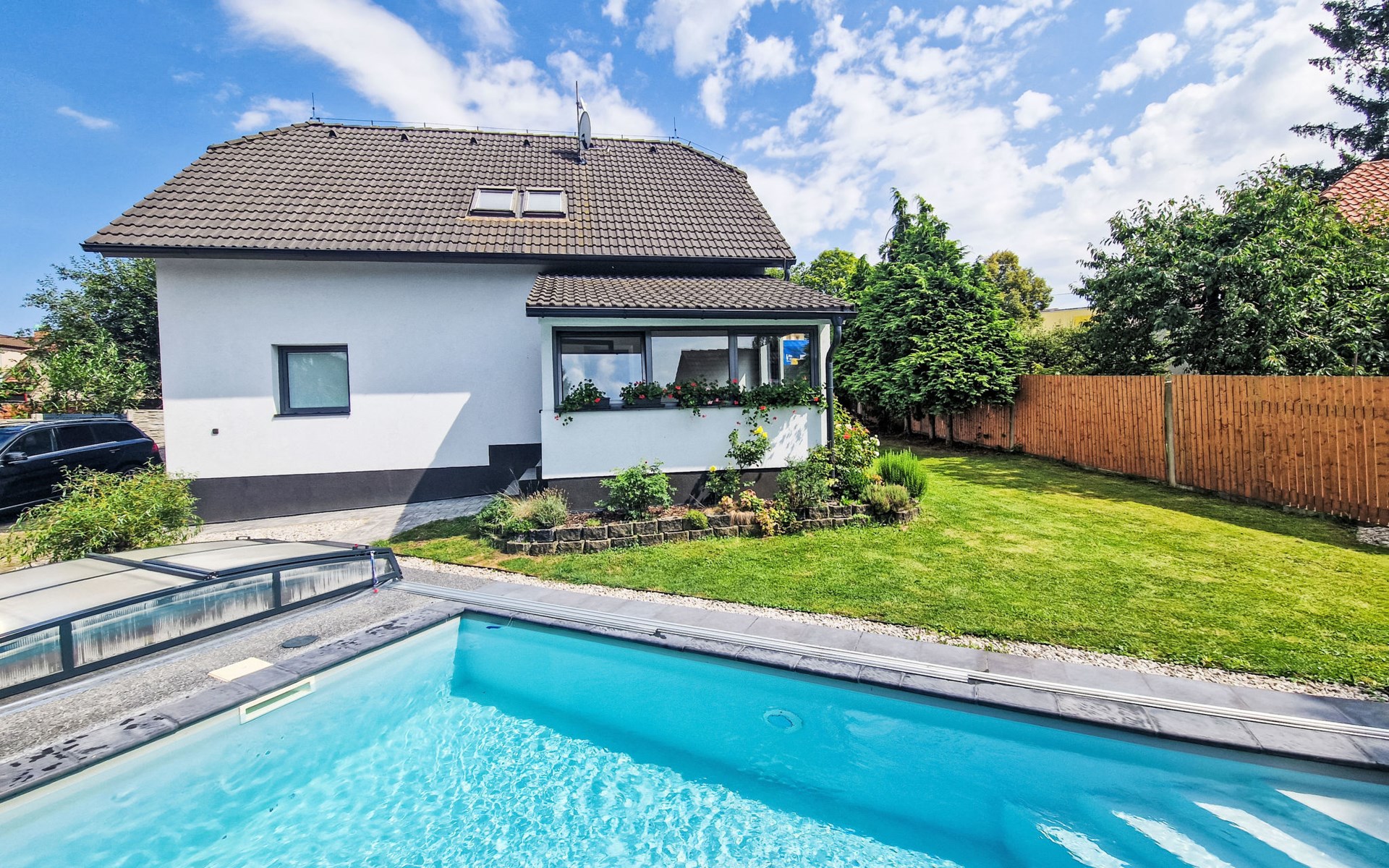 Zeer mooi eengezinswoning "Starý Chodov", van 2 verdiepingen, vrijstaand, gerenoveerd in 2024. In de wijk Chodov. Voor alleengebruik: terrein (omheind), tuin met gazon, binnenplaats, openluchtzwembad verwarmd (6 x 3 m, 120 cm diepte, seizoensgebonden beschikbaarheid: 15.Apr. - 15.Okt.) met zeewater, trap en oprolbaar afdekscherm. Prieel, tuinmeubelen, barbecue. In het huis: centrale verwarming. Parkeerplaats (voor 4 auto's) bij het huis. Levensmiddelenwinkel 450 m, supermarkt 550 m, winkelcentrum 1.8 km, restaurant 350 m, bakkerij 600 m, café 550 m, biertuin 250 m, bushalte "Donovalská" 150 m, park "Hotsivař" 800 m, overdekt zwembad 850 m, meer (zwemmen) "Hostivařská přehrada" 2.6 km. Golfterrein (18 holes) 5.5 km, tennishal 3.5 km, midgetgolf 1 km, sportcentrum 800 m, wandelroutes 800 m vanaf het huis, fietspad 700 m, kinderspeelplaats 550 m. Attracties in de buurt: Chodovská tvrz 1 km, Toulcův Dvůr - vyhlídka, farma 1.7 km, Biotop Lhotka 5.5 km, Průhonice - zámek, park 8 km, Žluté lázně, Podolí, Vyšehrad 8 km, Karlův most, Václavské náměstí, Hradčany. Bekende skigebieden kunnen gemakkelijk worden bereikt: Hostivařská přehrada 2.6 km. Wandelgebied Hostivařský lesopark 800 m, Milíčovský les 2.5 km, Kunratický les 3 km. Geschikt voor families, geschikt voor senioren. De eigenaar accepteert geen jeugdgroepen.