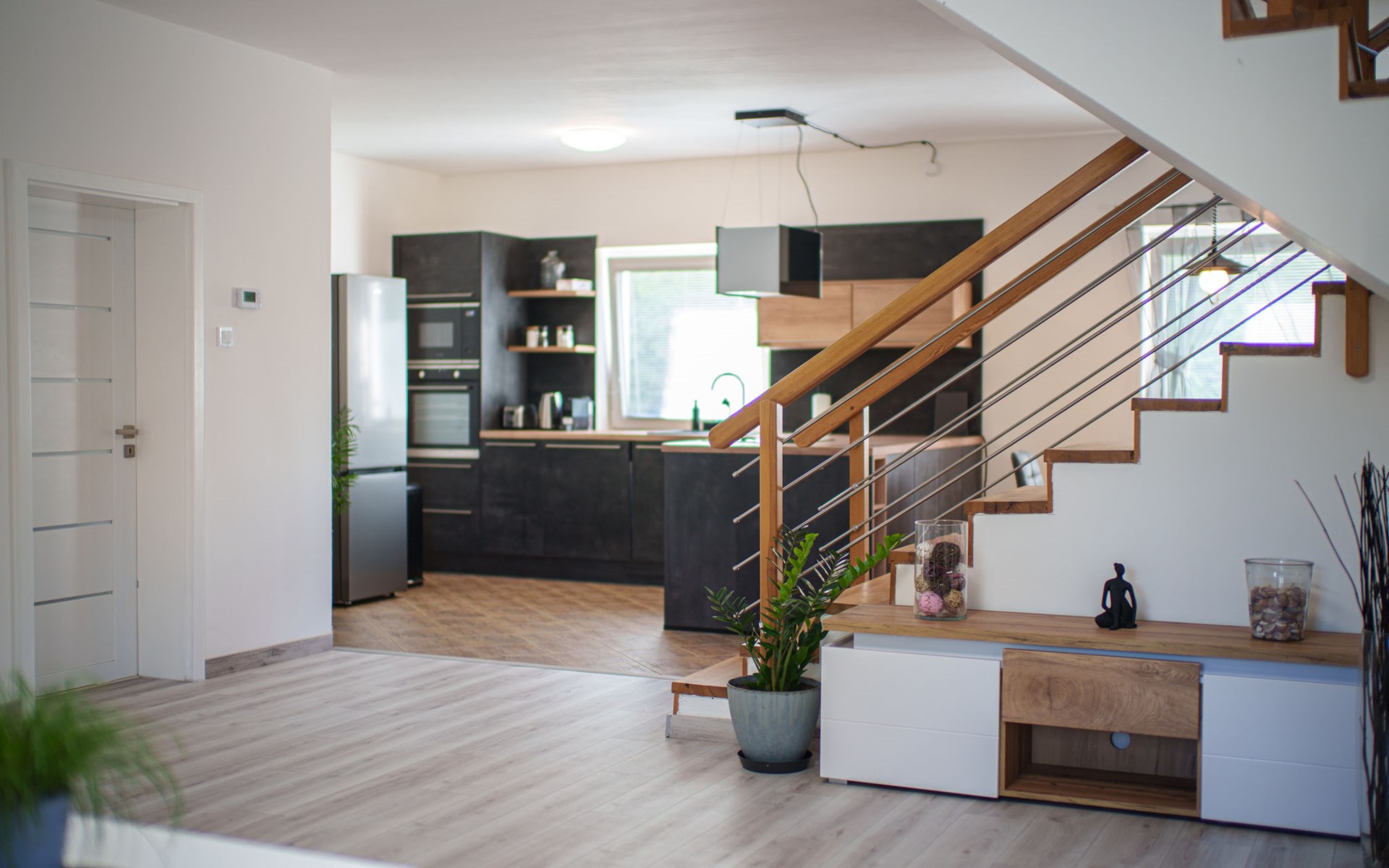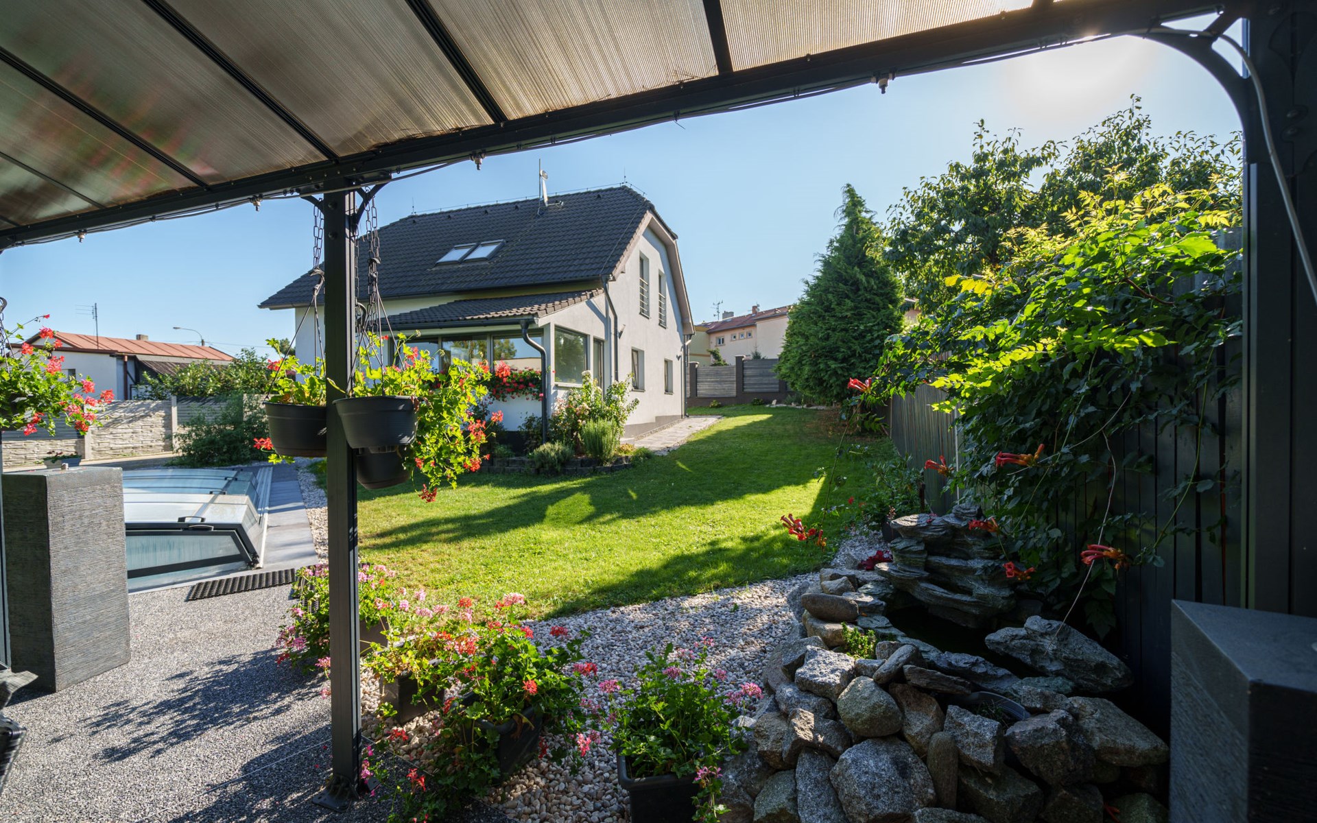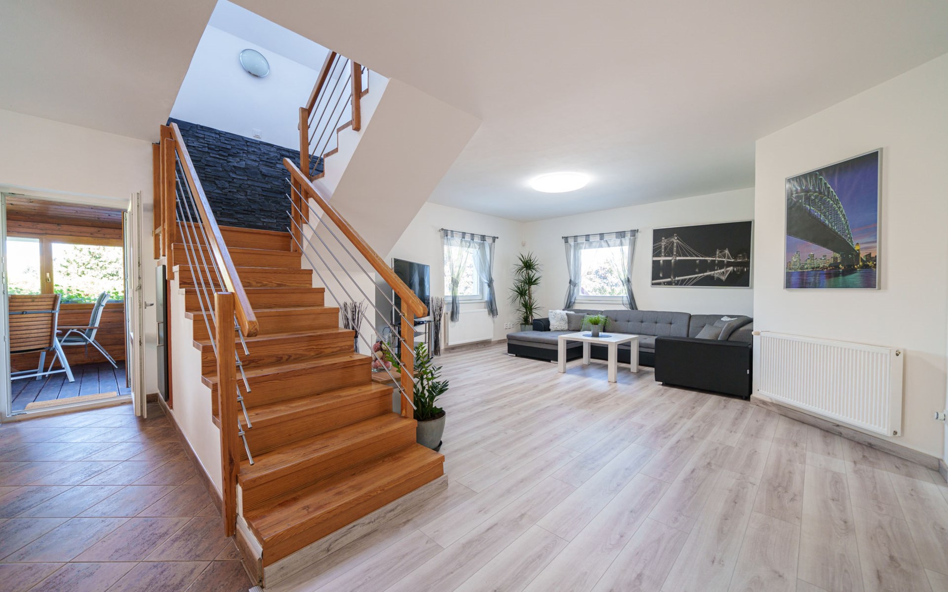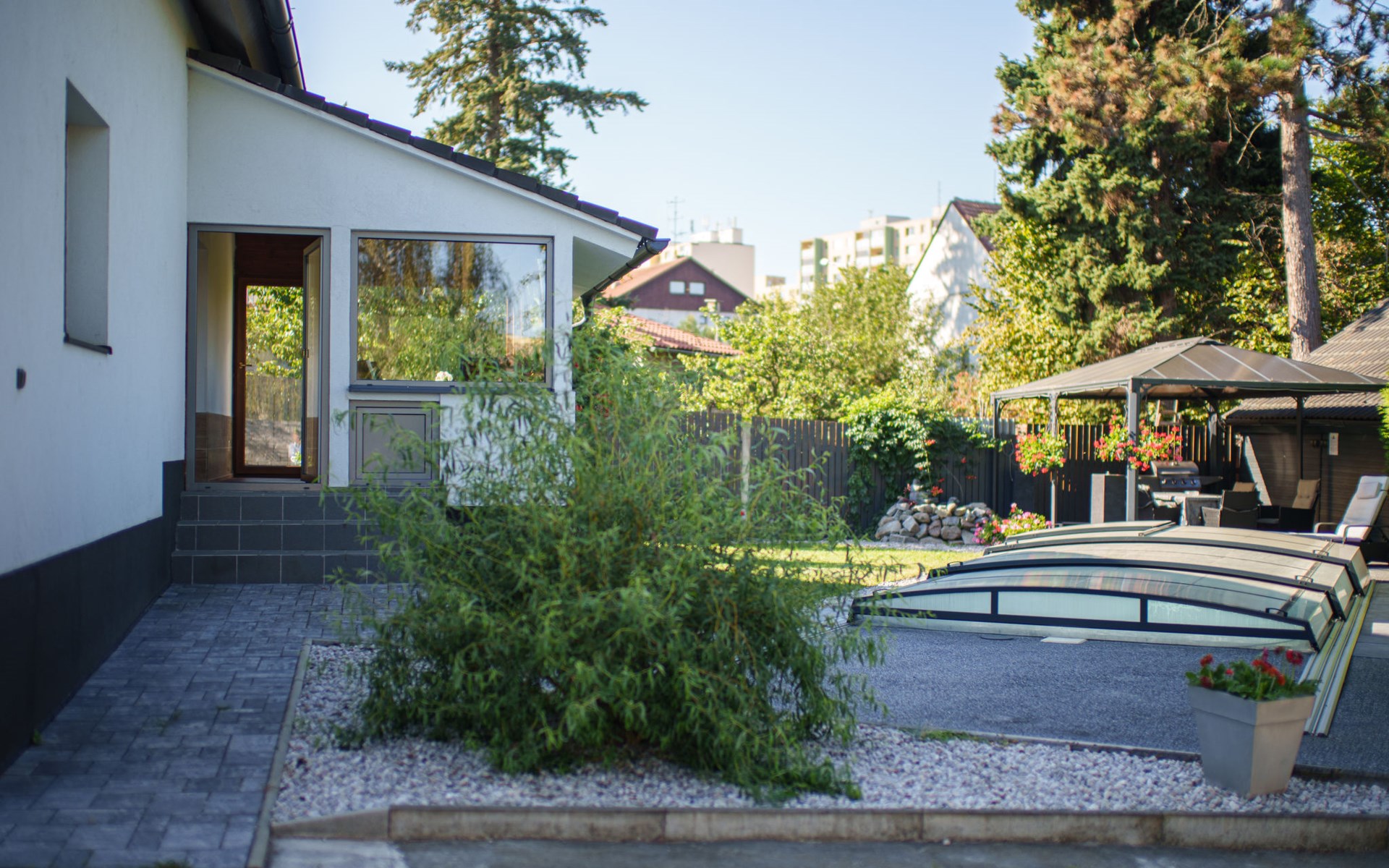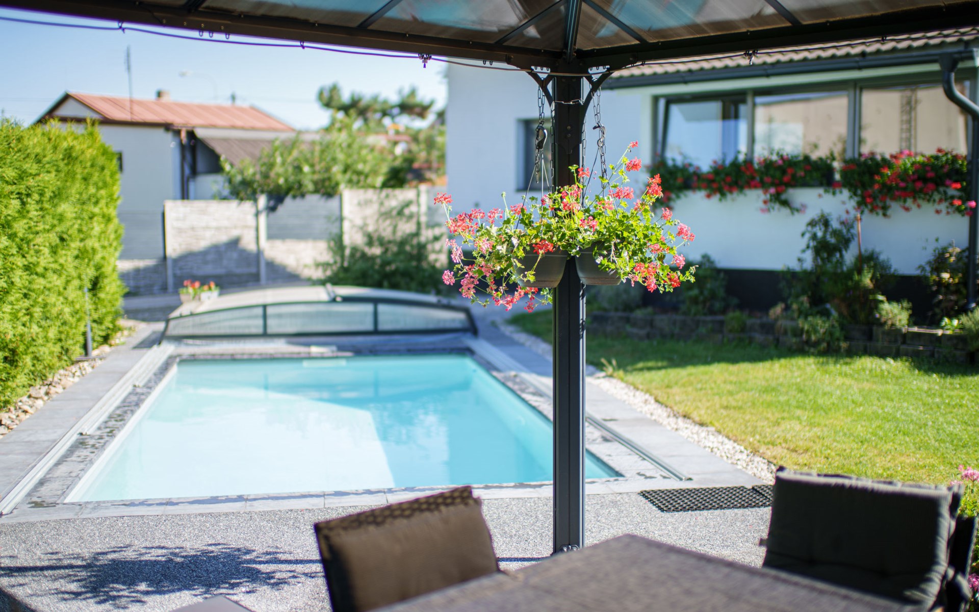 Zeer mooi eengezinswoning "Starý Chodov", van 2 verdiepingen, vrijstaand, gerenoveerd in 2024. In de wijk Chodov. Voor alleengebruik: terrein (omheind), tuin met gazon, binnenplaats, openluchtzwembad verwarmd (6 x 3 m, 120 cm diepte, seizoensgebonden beschikbaarheid: 15.Apr. - 15.Okt.) met zeewater, trap en oprolbaar afdekscherm. Prieel, tuinmeubelen, barbecue. In het huis: centrale verwarming. Parkeerplaats (voor 4 auto's) bij het huis. Levensmiddelenwinkel 450 m, supermarkt 550 m, winkelcentrum 1.8 km, restaurant 350 m, bakkerij 600 m, café 550 m, biertuin 250 m, bushalte "Donovalská" 150 m, park "Hotsivař" 800 m, overdekt zwembad 850 m, meer (zwemmen) "Hostivařská přehrada" 2.6 km. Golfterrein (18 holes) 5.5 km, tennishal 3.5 km, midgetgolf 1 km, sportcentrum 800 m, wandelroutes 800 m vanaf het huis, fietspad 700 m, kinderspeelplaats 550 m. Attracties in de buurt: Chodovská tvrz 1 km, Toulcův Dvůr - vyhlídka, farma 1.7 km, Biotop Lhotka 5.5 km, Průhonice - zámek, park 8 km, Žluté lázně, Podolí, Vyšehrad 8 km, Karlův most, Václavské náměstí, Hradčany. Bekende skigebieden kunnen gemakkelijk worden bereikt: Hostivařská přehrada 2.6 km. Wandelgebied Hostivařský lesopark 800 m, Milíčovský les 2.5 km, Kunratický les 3 km. Geschikt voor families, geschikt voor senioren. De eigenaar accepteert geen jeugdgroepen.