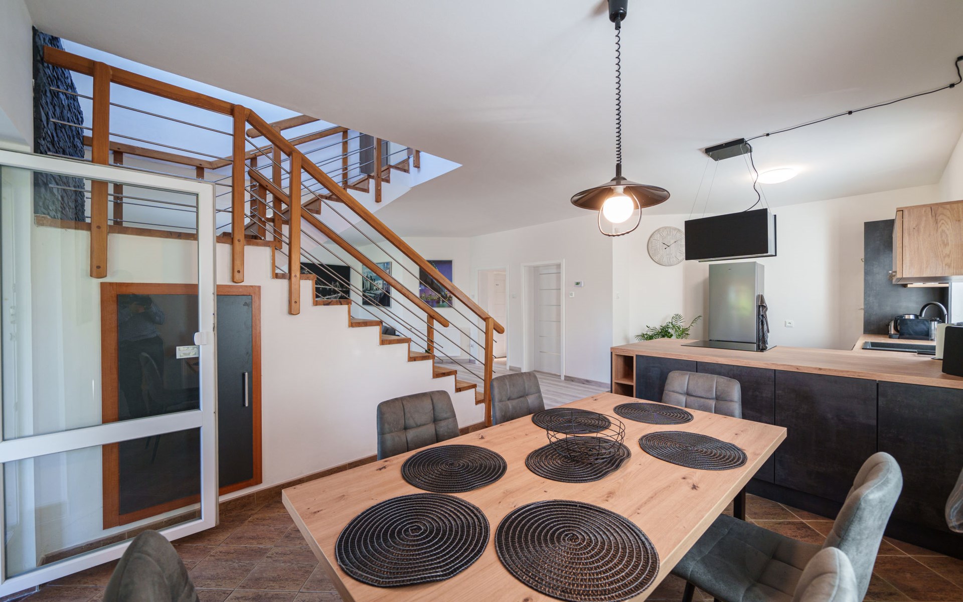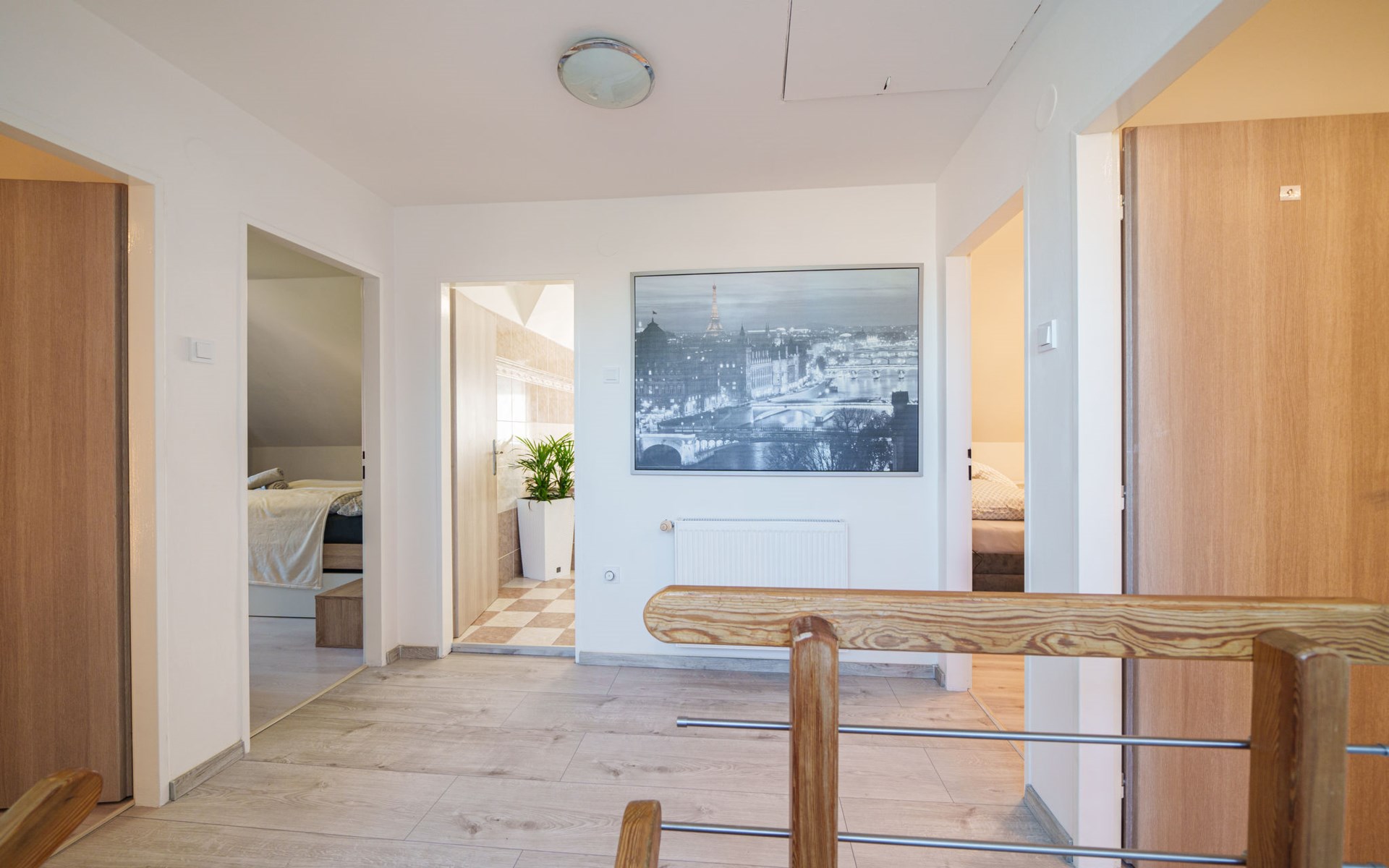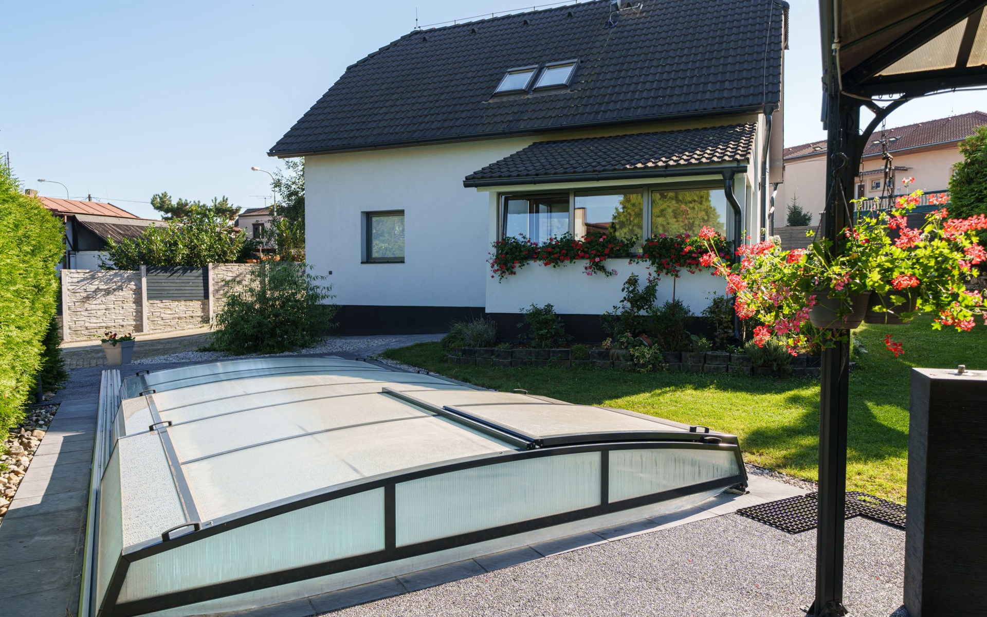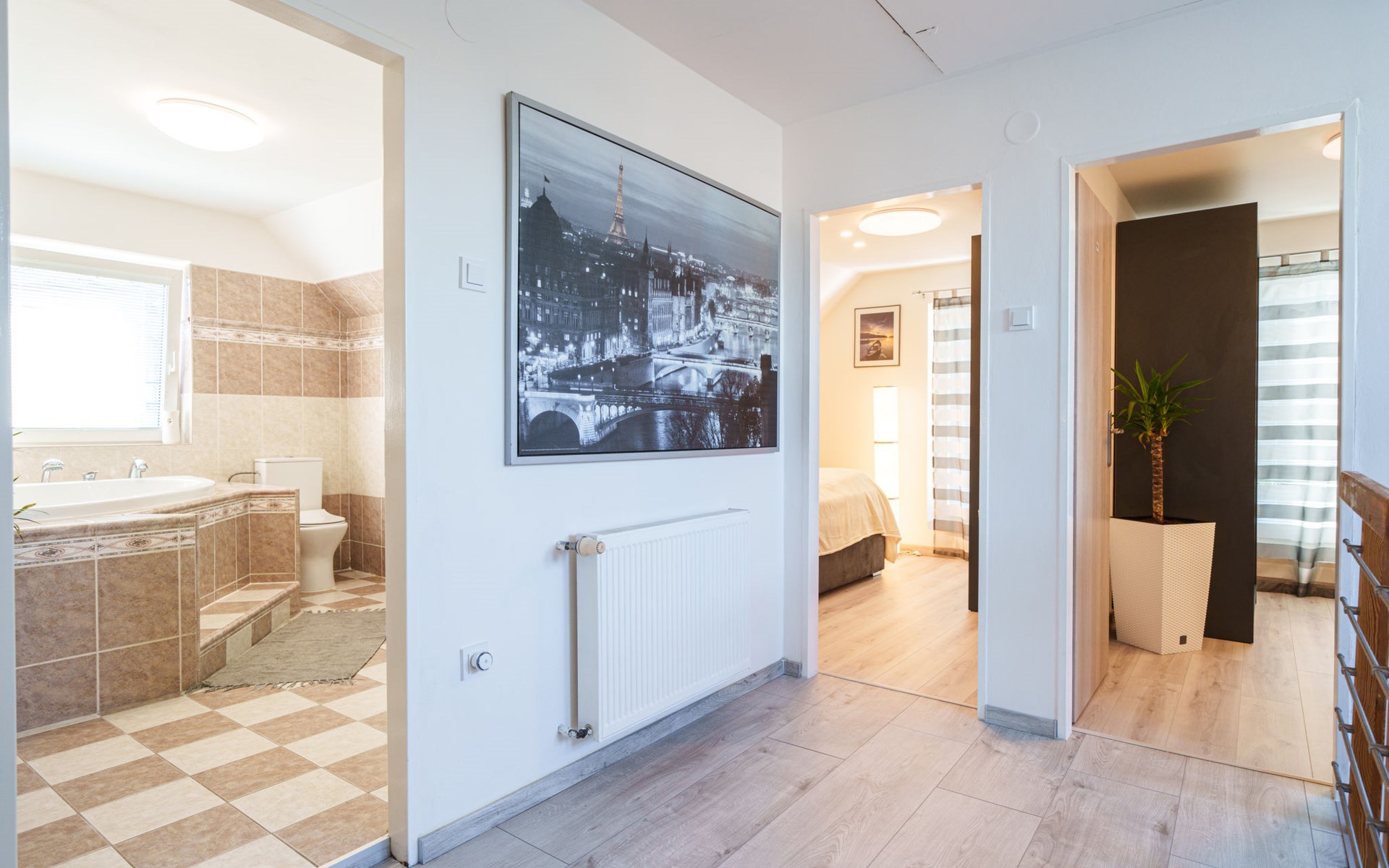 Zeer mooi eengezinswoning "Starý Chodov", van 2 verdiepingen, vrijstaand, gerenoveerd in 2024. In de wijk Chodov. Voor alleengebruik: terrein (omheind), tuin met gazon, binnenplaats, openluchtzwembad verwarmd (6 x 3 m, 120 cm diepte, seizoensgebonden beschikbaarheid: 15.Apr. - 15.Okt.) met zeewater, trap en oprolbaar afdekscherm. Prieel, tuinmeubelen, barbecue. In het huis: centrale verwarming. Parkeerplaats (voor 4 auto's) bij het huis. Levensmiddelenwinkel 450 m, supermarkt 550 m, winkelcentrum 1.8 km, restaurant 350 m, bakkerij 600 m, café 550 m, biertuin 250 m, bushalte "Donovalská" 150 m, park "Hotsivař" 800 m, overdekt zwembad 850 m, meer (zwemmen) "Hostivařská přehrada" 2.6 km. Golfterrein (18 holes) 5.5 km, tennishal 3.5 km, midgetgolf 1 km, sportcentrum 800 m, wandelroutes 800 m vanaf het huis, fietspad 700 m, kinderspeelplaats 550 m. Attracties in de buurt: Chodovská tvrz 1 km, Toulcův Dvůr - vyhlídka, farma 1.7 km, Biotop Lhotka 5.5 km, Průhonice - zámek, park 8 km, Žluté lázně, Podolí, Vyšehrad 8 km, Karlův most, Václavské náměstí, Hradčany. Bekende skigebieden kunnen gemakkelijk worden bereikt: Hostivařská přehrada 2.6 km. Wandelgebied Hostivařský lesopark 800 m, Milíčovský les 2.5 km, Kunratický les 3 km. Geschikt voor families, geschikt voor senioren. De eigenaar accepteert geen jeugdgroepen.