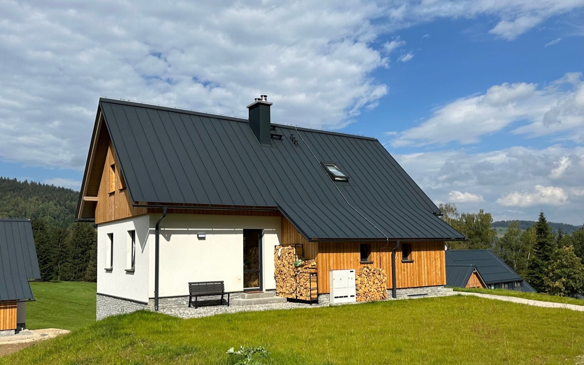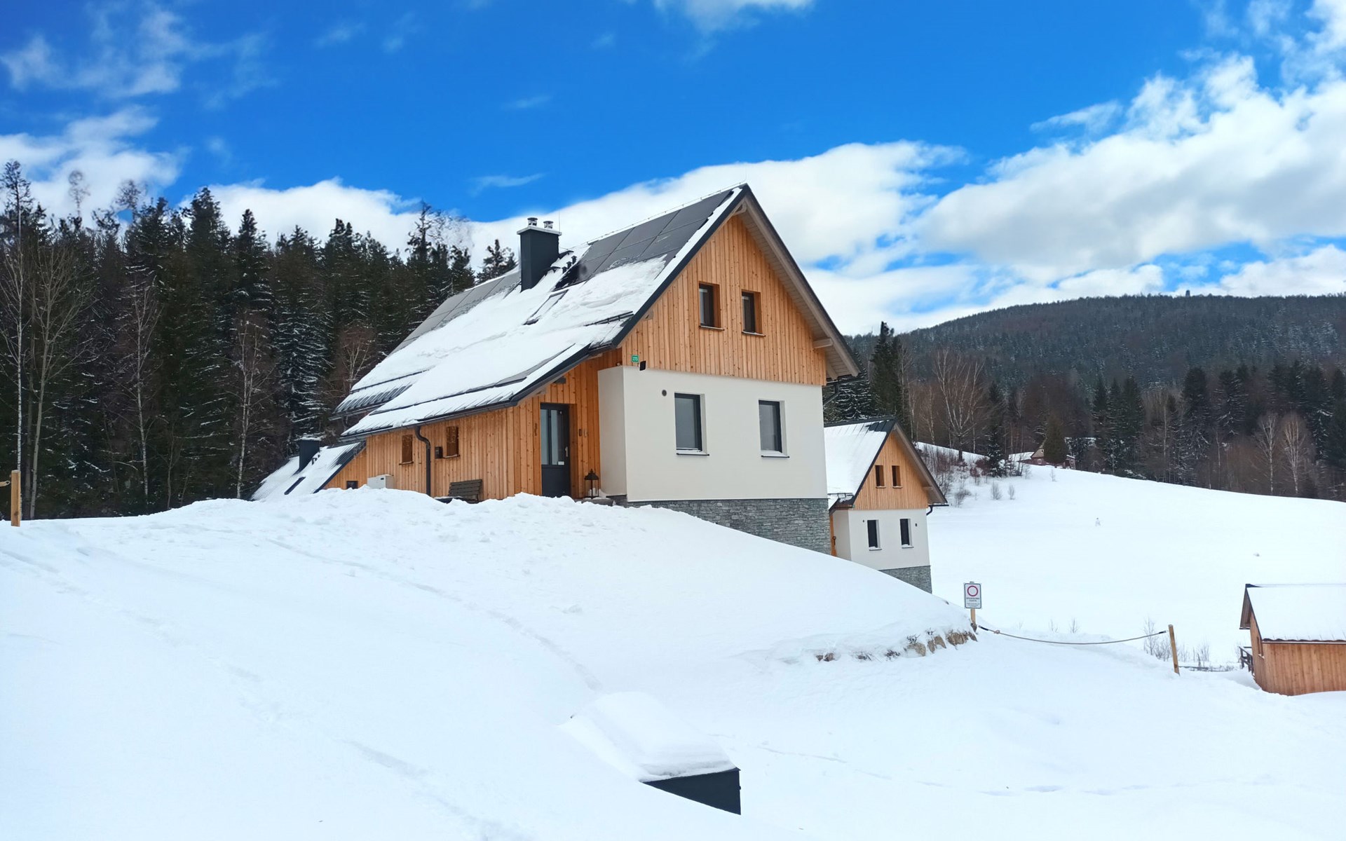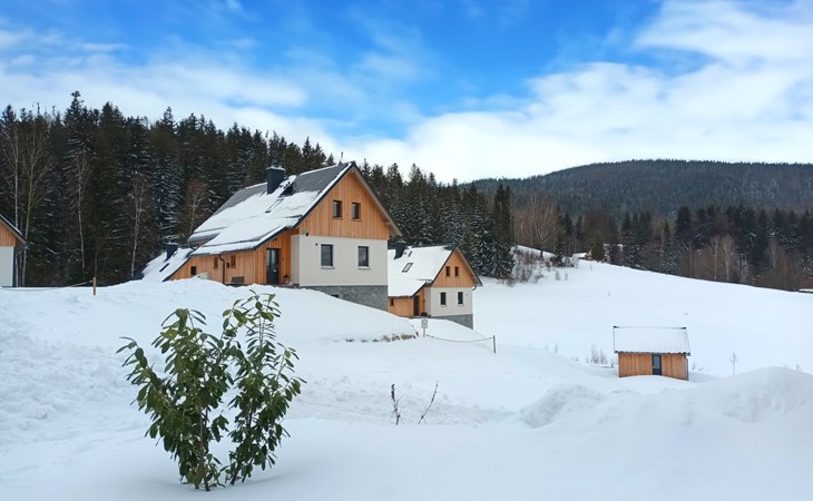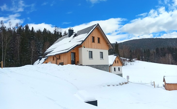 Comfortabele cottage van 2 verdiepingen, vrijstaand, bouwjaar 2023. Buiten de plaats, direct aan de bosrand, 2 km van het skigebied. Voor alleengebruik: terrein. Terras. In de winter sneeuwkettingen aanbevolen. Parkeerplaats. Oplaadstation. Winkel 2 km, levensmiddelenwinkel 2.5 km, supermarkt 6 km, winkelcentrum 20 km, restaurant 2 km, bushalte "Jiřetín pod Bukovou" 1.4 km, treinstation "Jiřetín pod Bukovou" 1.3 km, openluchtzwembad 7 km, overdekt zwembad 20 km. Golfterrein (9 holes) 17 km, wandelroutes 10 m vanaf het huis, fietspad 100 m, skilift 2 km, skipisten 2 km, skiverhuur 2 km, skischool 2 km, langlaufloipe 100 m, kinderspeelplaats 3 km. Attracties in de buurt: Rozhledna Černá Studnice 6 km, Muzeum obrněné techniky Smržovka 6 km, Vodopády Jedlové 7 km, Kittelovo muzeum v Krásné 12 km, Aquapark Babylon, IQLandia, ZOO Liberec 22 km, Bozkovské jeskyně 22 km. Bekende skigebieden kunnen gemakkelijk worden bereikt: Tanvaldský Špičák 2 km, Filip Smržovka 4 km, Světlý Vrch Albrechtice 4 km, Josefův Důl 7 km, Severák, Bedřichov 12 km. Wandelgebied Hřebenovka.