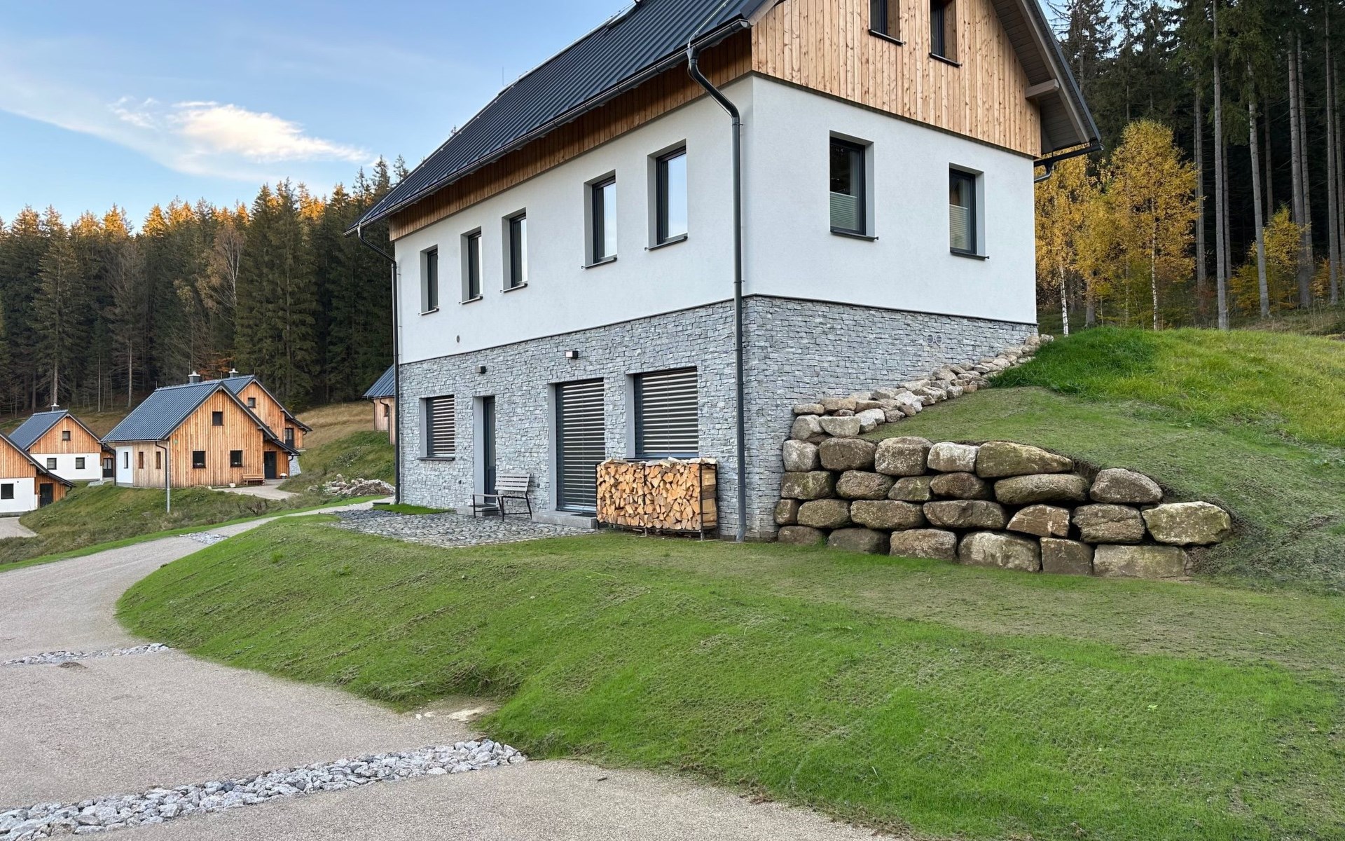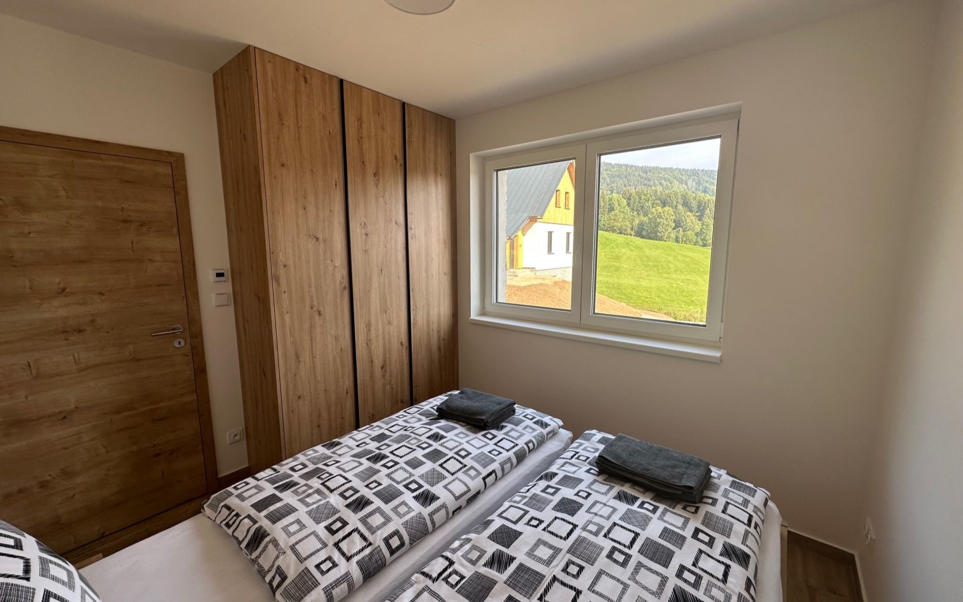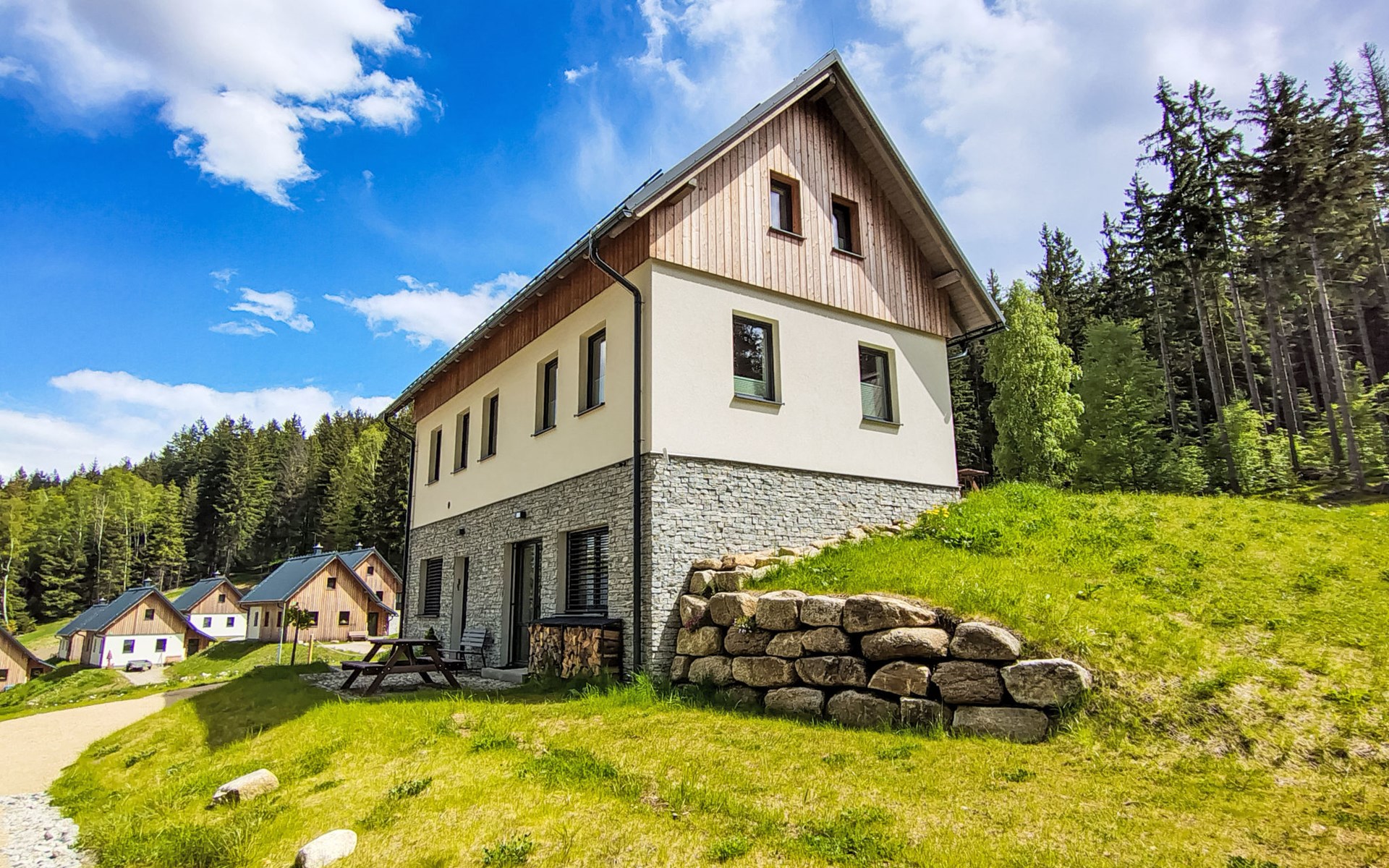 Comfortabele cottage van 2 verdiepingen, vrijstaand, bouwjaar 2023. Buiten de plaats, direct aan de bosrand, 2 km van het skigebied. Voor alleengebruik: terrein. Terras. In de winter sneeuwkettingen aanbevolen. Parkeerplaats. Oplaadstation. Winkel 2 km, levensmiddelenwinkel 2.5 km, supermarkt 6 km, winkelcentrum 20 km, restaurant 2 km, bushalte "Jiřetín pod Bukovou" 1.4 km, treinstation "Jiřetín pod Bukovou" 1.3 km, openluchtzwembad 7 km, overdekt zwembad 20 km. Golfterrein (9 holes) 17 km, wandelroutes 10 m vanaf het huis, fietspad 100 m, skilift 2 km, skipisten 2 km, skiverhuur 2 km, skischool 2 km, langlaufloipe 100 m, kinderspeelplaats 3 km. Attracties in de buurt: Rozhledna Černá Studnice 6 km, Muzeum obrněné techniky Smržovka 6 km, Vodopády Jedlové 7 km, Kittelovo muzeum v Krásné 12 km, Aquapark Babylon, IQLandia, ZOO Liberec 22 km, Bozkovské jeskyně 22 km. Bekende skigebieden kunnen gemakkelijk worden bereikt: Tanvaldský Špičák 2 km, Filip Smržovka 4 km, Světlý Vrch Albrechtice 4 km, Josefův Důl 7 km, Severák, Bedřichov 12 km. Wandelgebied Hřebenovka.