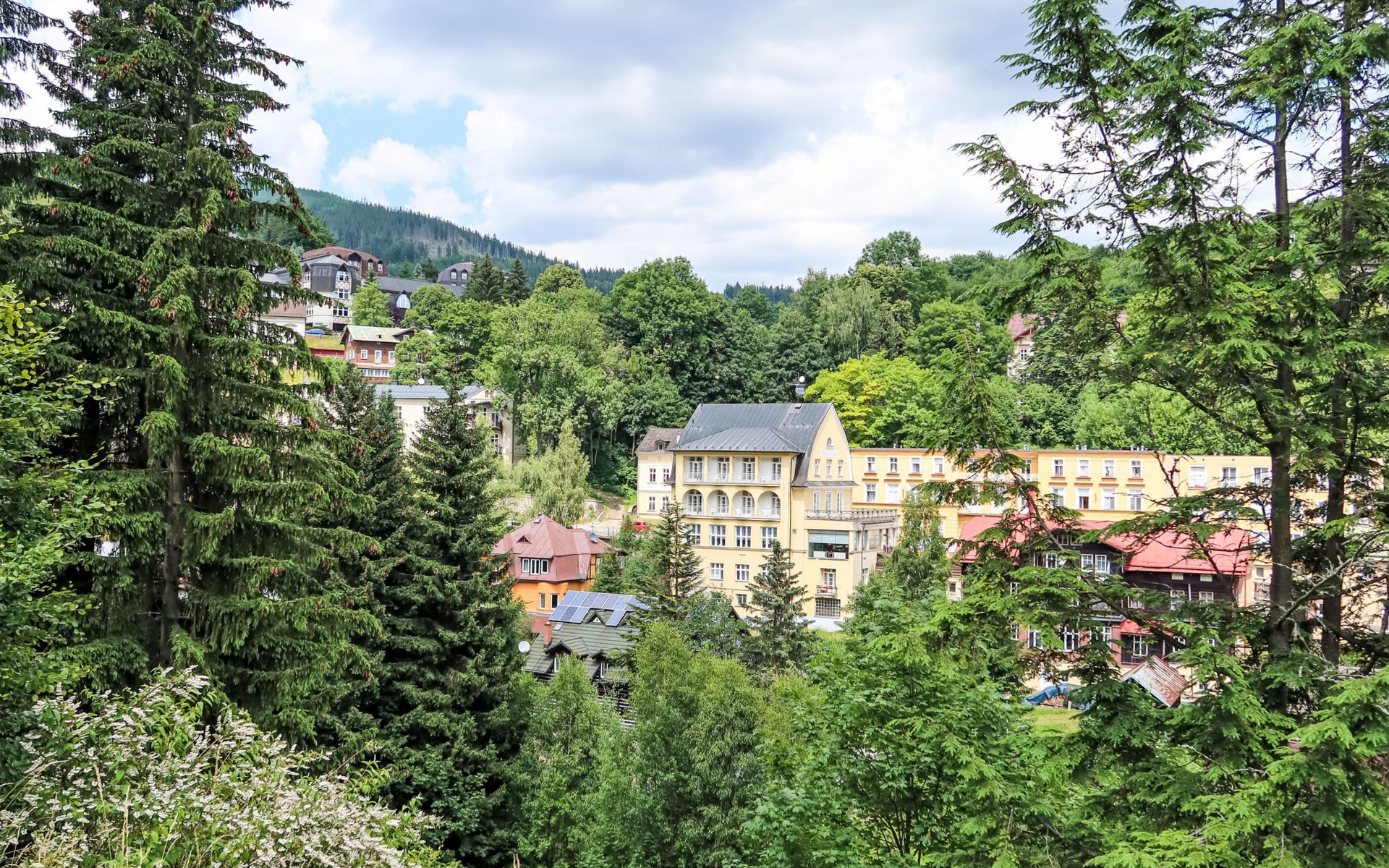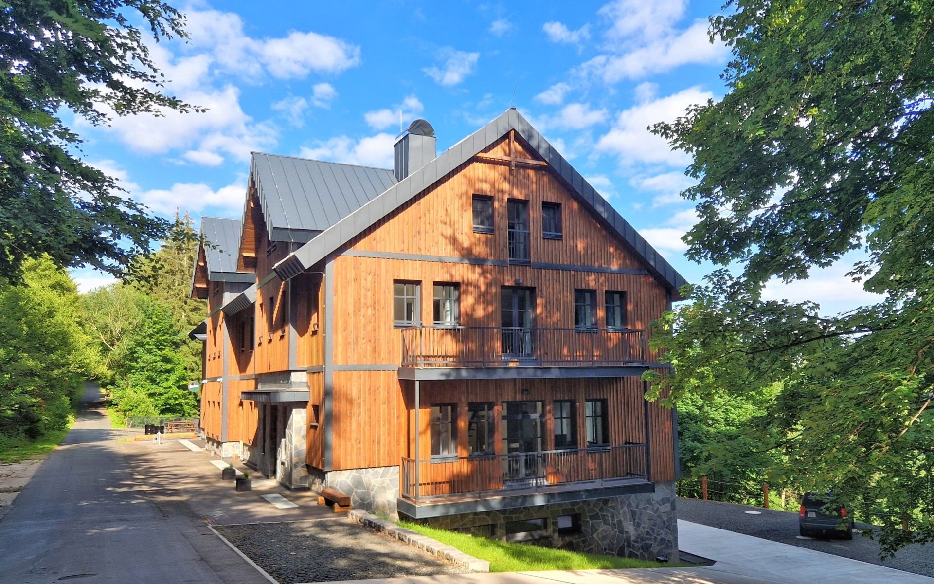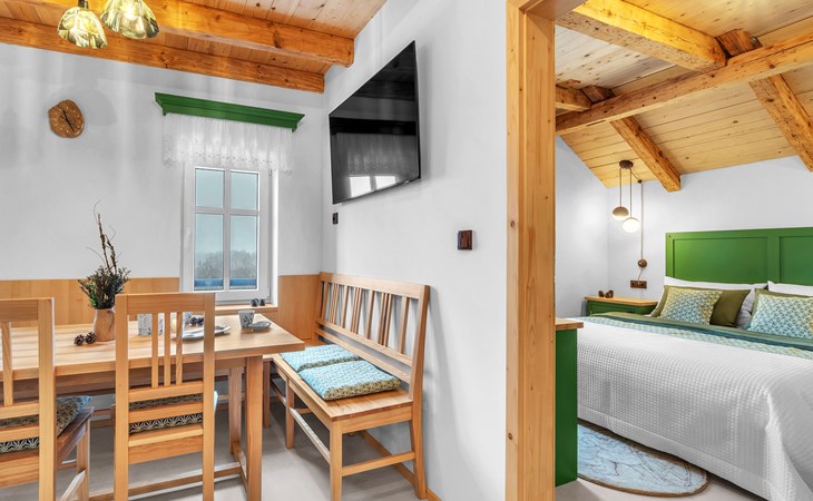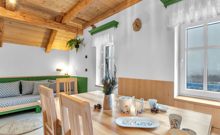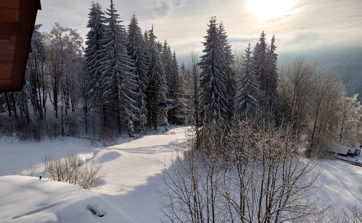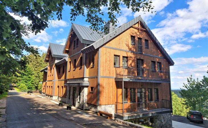 Mooi chalet "Ludvíkova bouda", van 3 verdiepingen, vrijstaand, gerenoveerd in 2023. 15 appartementen in de woning. Aan de rand van de plaats, 1.5 km van het centrum van Janské Lázně, geïsoleerde, rustige, verhoogde ligging, direct aan de bosrand, 500 m van het skigebied. In het huis: restaurant, Internet (WiFi), centrale verwarming. Ontbijt en half pension op aanvraag (extra). Parkeerplaats bij het huis. Levensmiddelenwinkel 1.7 km, restaurant 10 m, bar 1.7 km, bushalte "Janské Lázně, Zátiší" 320 m, openluchtzwembad 8 km, overdekt zwembad 2 km. Tennis 1.7 km, midgetgolf 800 m, kabelbaan 600 m, stoeltjeslift, kabelbaan op, skipisten 100 m, skiverhuur 700 m, skischool 700 m, kinderskischool, rodelbaan 800 m, langlaufloipe. Attracties in de buurt: Lanovka na Černou horu 600 m, Janské Lázně Spa, Stezka korunami stromů 500 m, bobová dráha 5 km, Pec pod Sněžkou, Relaxpark, bobová dráha 11 km, Vrchlabí 10 km, Trutnov 12 km, Malá Úpa 15 km, Zoo Dvůr Králové, Adršpach 35, Karpacz 40 km. Bekende skigebieden kunnen gemakkelijk worden bereikt: SkiResort ČERNÁ HORA - PEC 600 m, Mladé Buky 5 km, Horní Malá Úpa 16 km, Špindlerův Mlýn 30 km. Wandelgebied Krkonošské naučné stezky. Geschikt voor families, geschikt voor senioren.