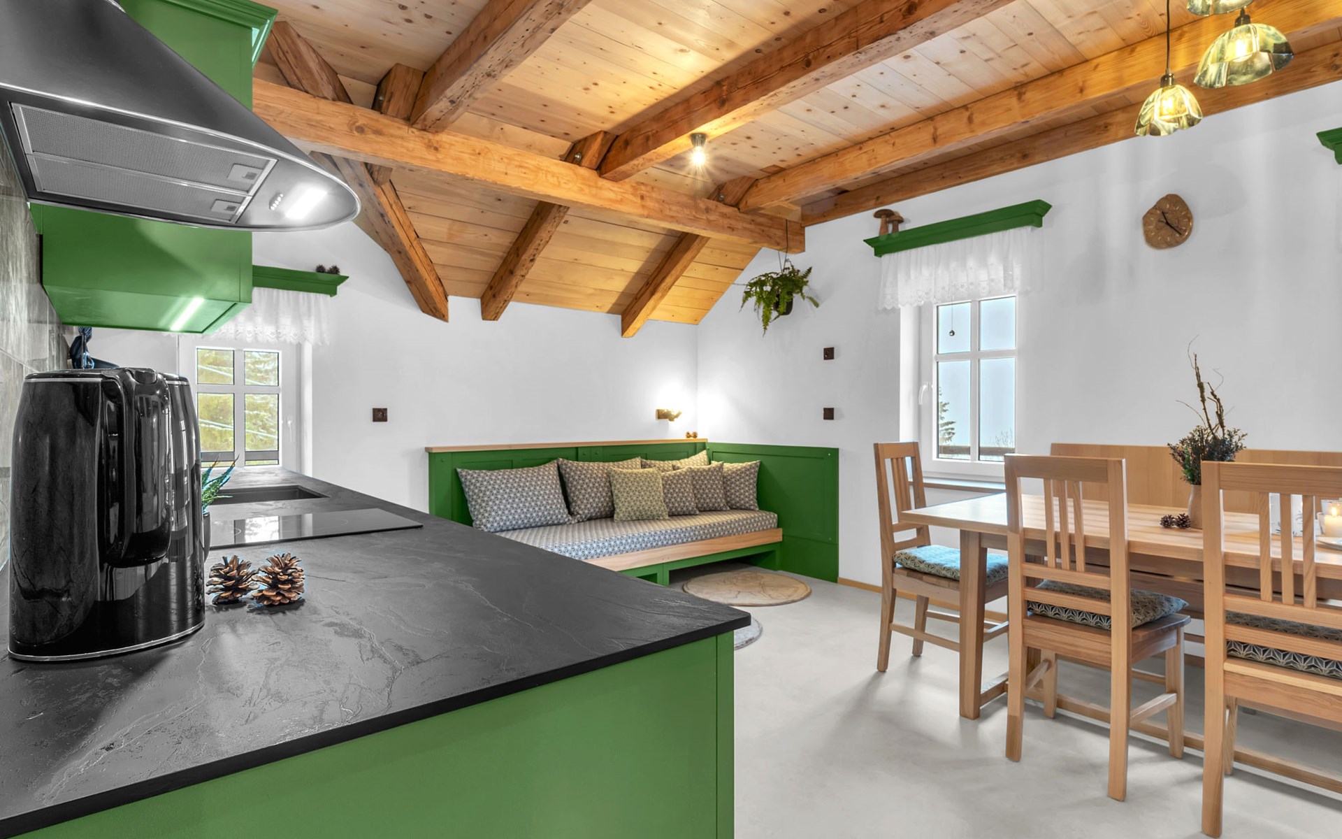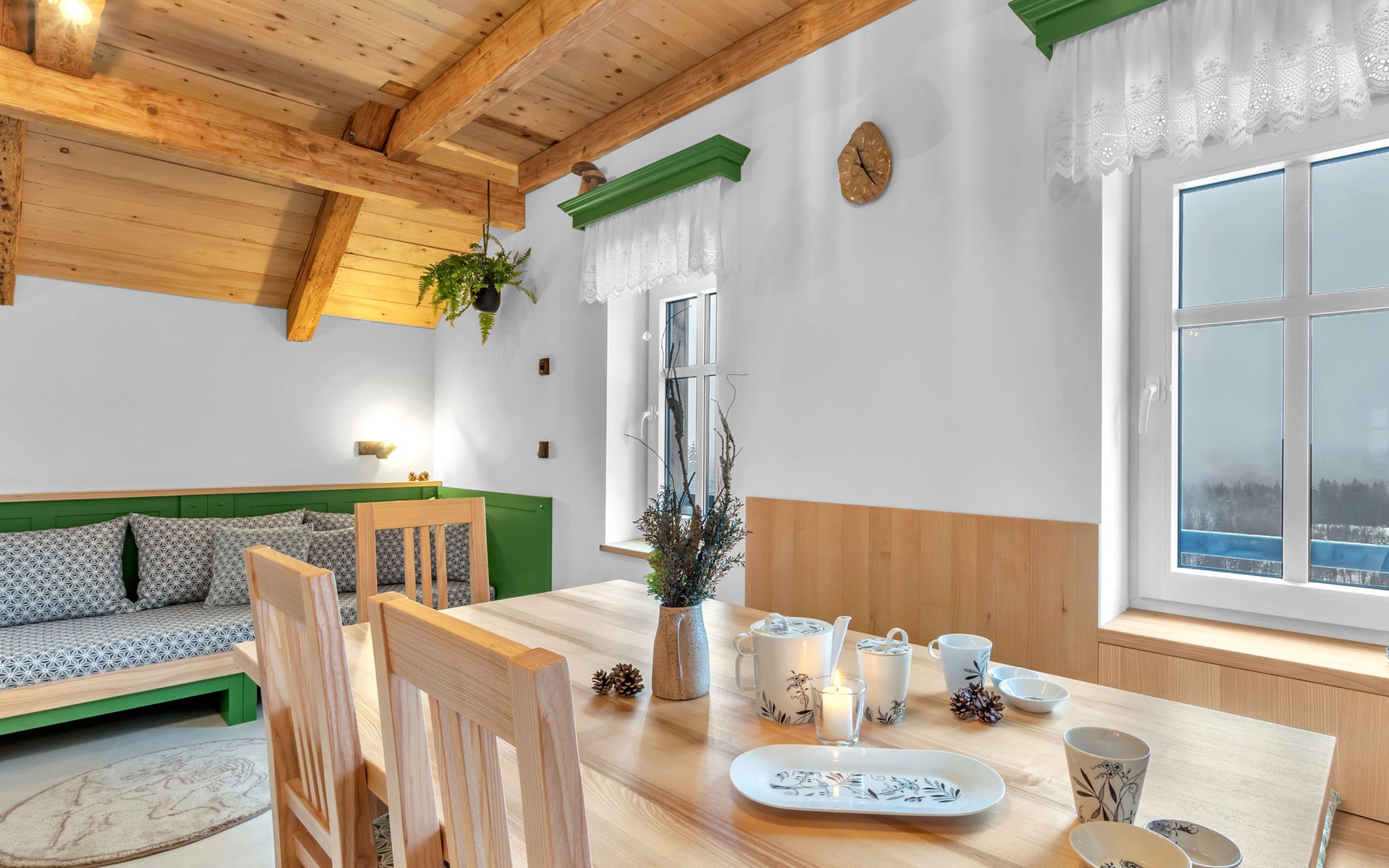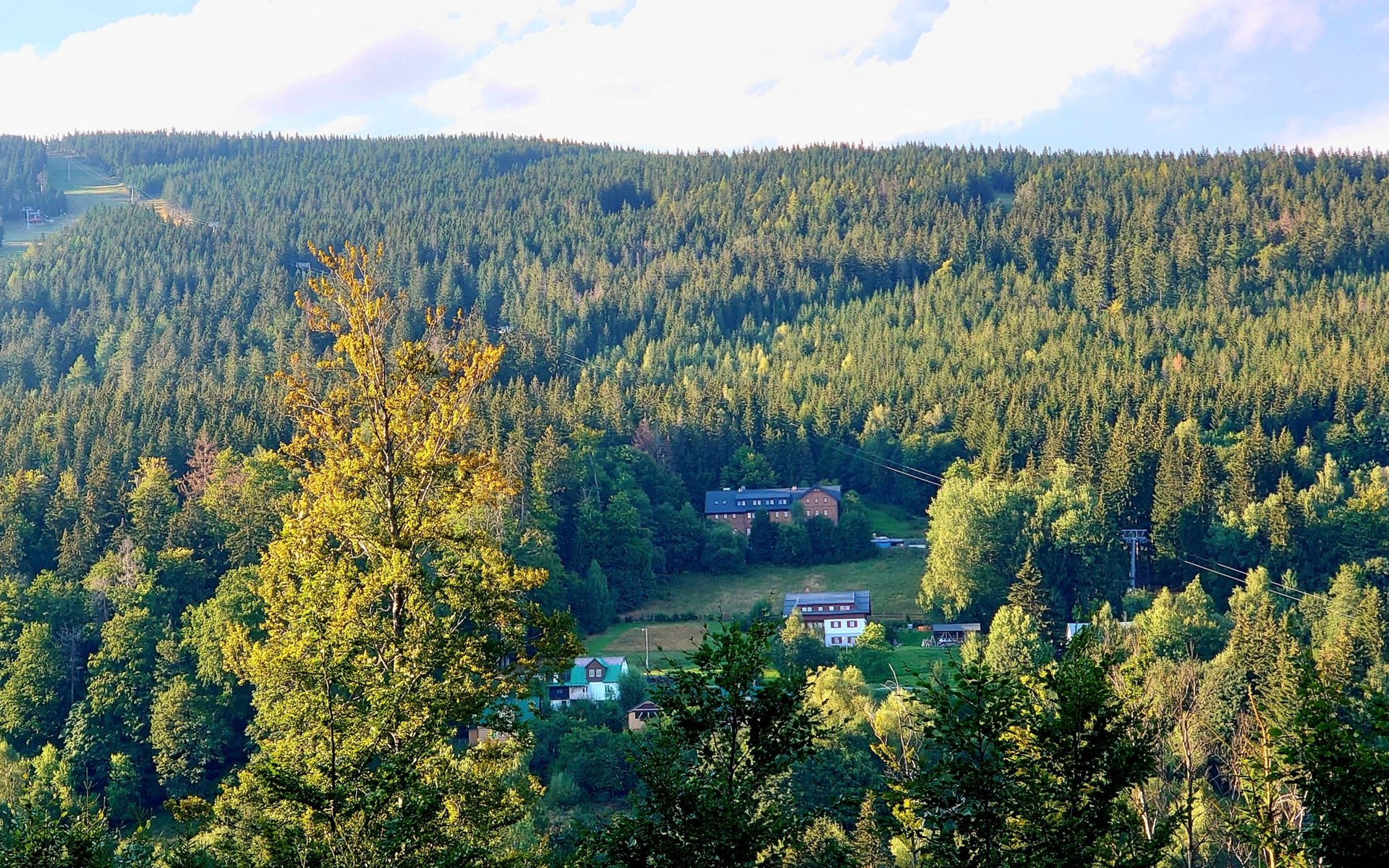 Mooi chalet "Ludvíkova bouda", van 3 verdiepingen, vrijstaand, gerenoveerd in 2023. 15 appartementen in de woning. Aan de rand van de plaats, 1.5 km van het centrum van Janské Lázně, geïsoleerde, rustige, verhoogde ligging, direct aan de bosrand, 500 m van het skigebied. In het huis: restaurant, Internet (WiFi), centrale verwarming. Ontbijt en half pension op aanvraag (extra). Parkeerplaats bij het huis. Levensmiddelenwinkel 1.7 km, restaurant 10 m, bar 1.7 km, bushalte "Janské Lázně, Zátiší" 320 m, openluchtzwembad 8 km, overdekt zwembad 2 km. Tennis 1.7 km, midgetgolf 800 m, kabelbaan 600 m, stoeltjeslift, kabelbaan op, skipisten 100 m, skiverhuur 700 m, skischool 700 m, kinderskischool, rodelbaan 800 m, langlaufloipe. Attracties in de buurt: Lanovka na Černou horu 600 m, Janské Lázně Spa, Stezka korunami stromů 500 m, bobová dráha 5 km, Pec pod Sněžkou, Relaxpark, bobová dráha 11 km, Vrchlabí 10 km, Trutnov 12 km, Malá Úpa 15 km, Zoo Dvůr Králové, Adršpach 35, Karpacz 40 km. Bekende skigebieden kunnen gemakkelijk worden bereikt: SkiResort ČERNÁ HORA - PEC 600 m, Mladé Buky 5 km, Horní Malá Úpa 16 km, Špindlerův Mlýn 30 km. Wandelgebied Krkonošské naučné stezky. Geschikt voor families, geschikt voor senioren.