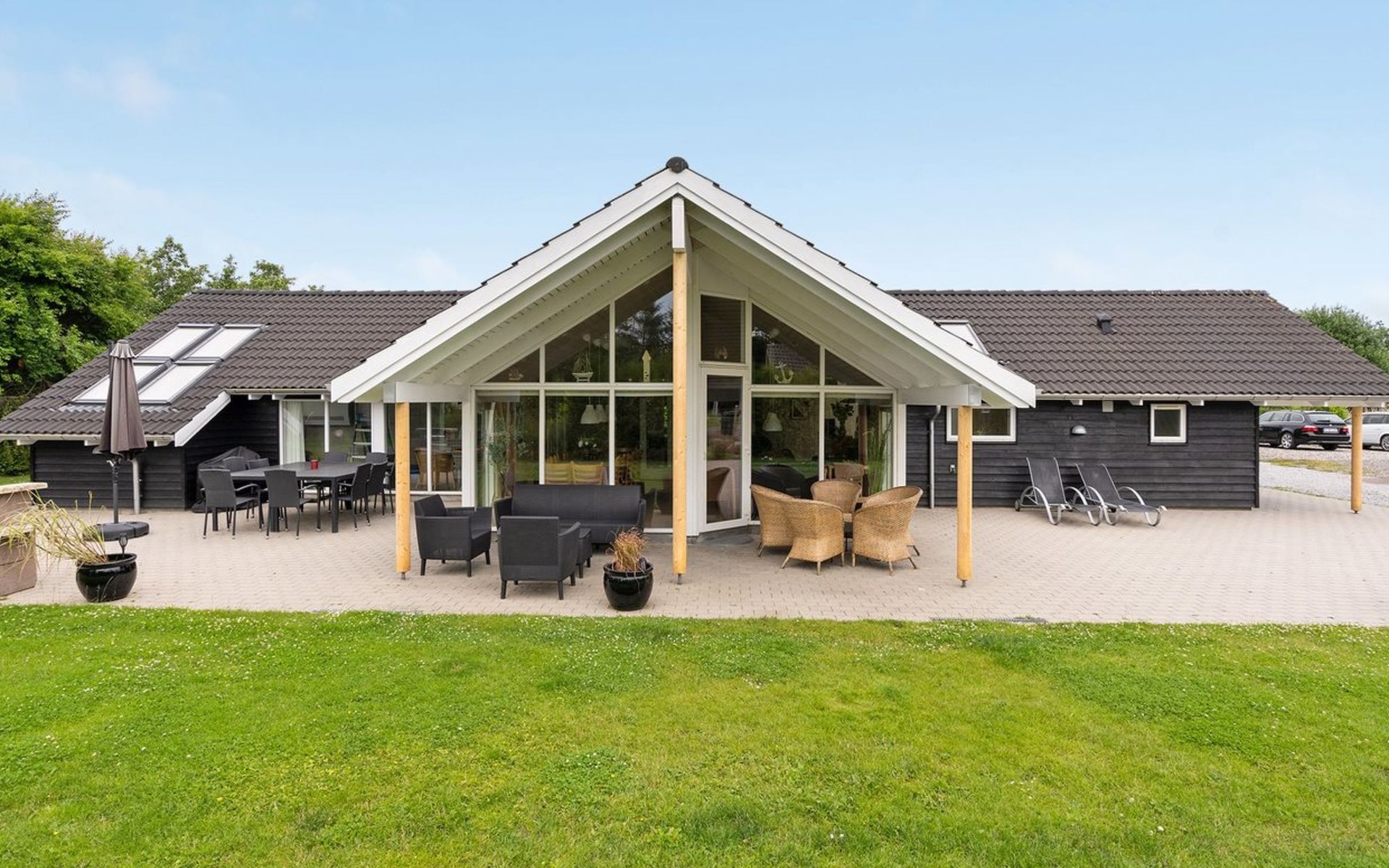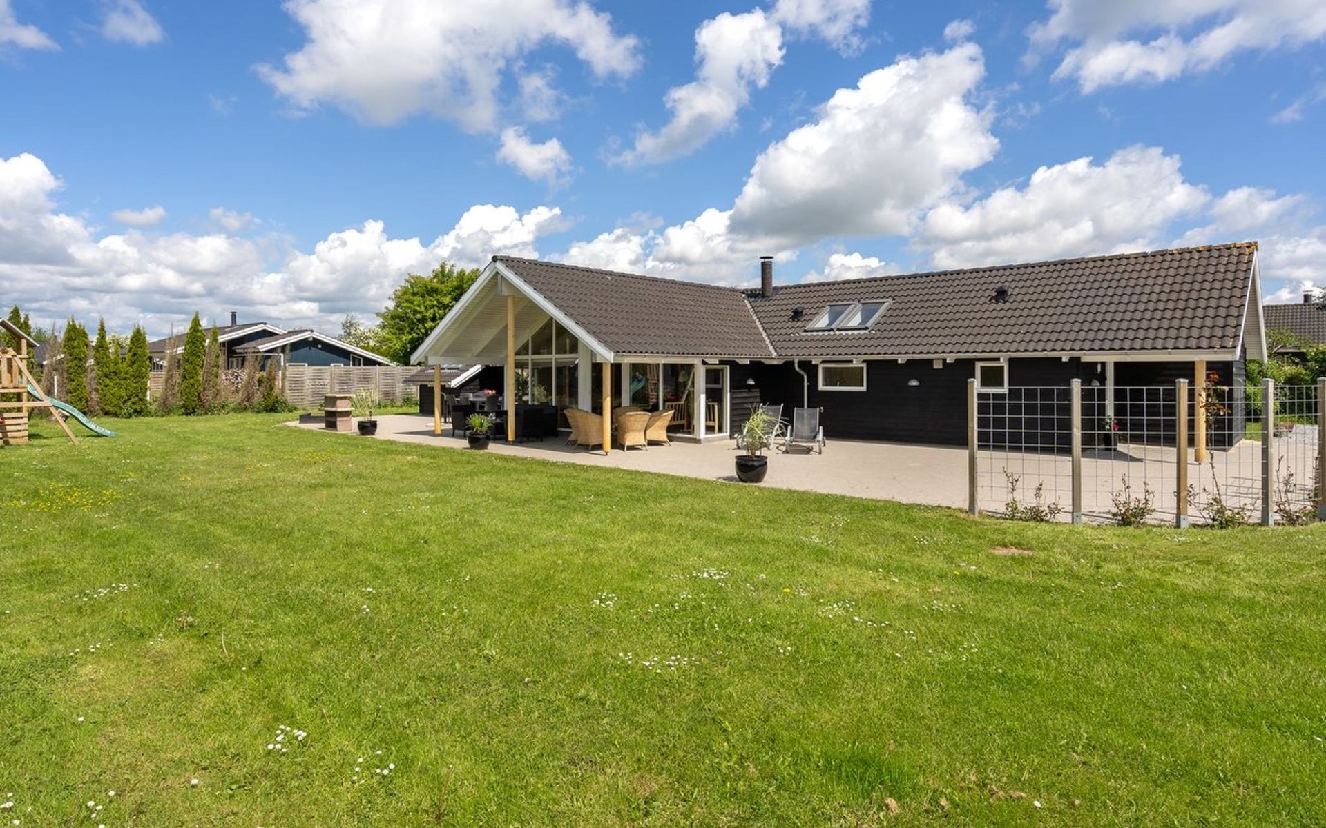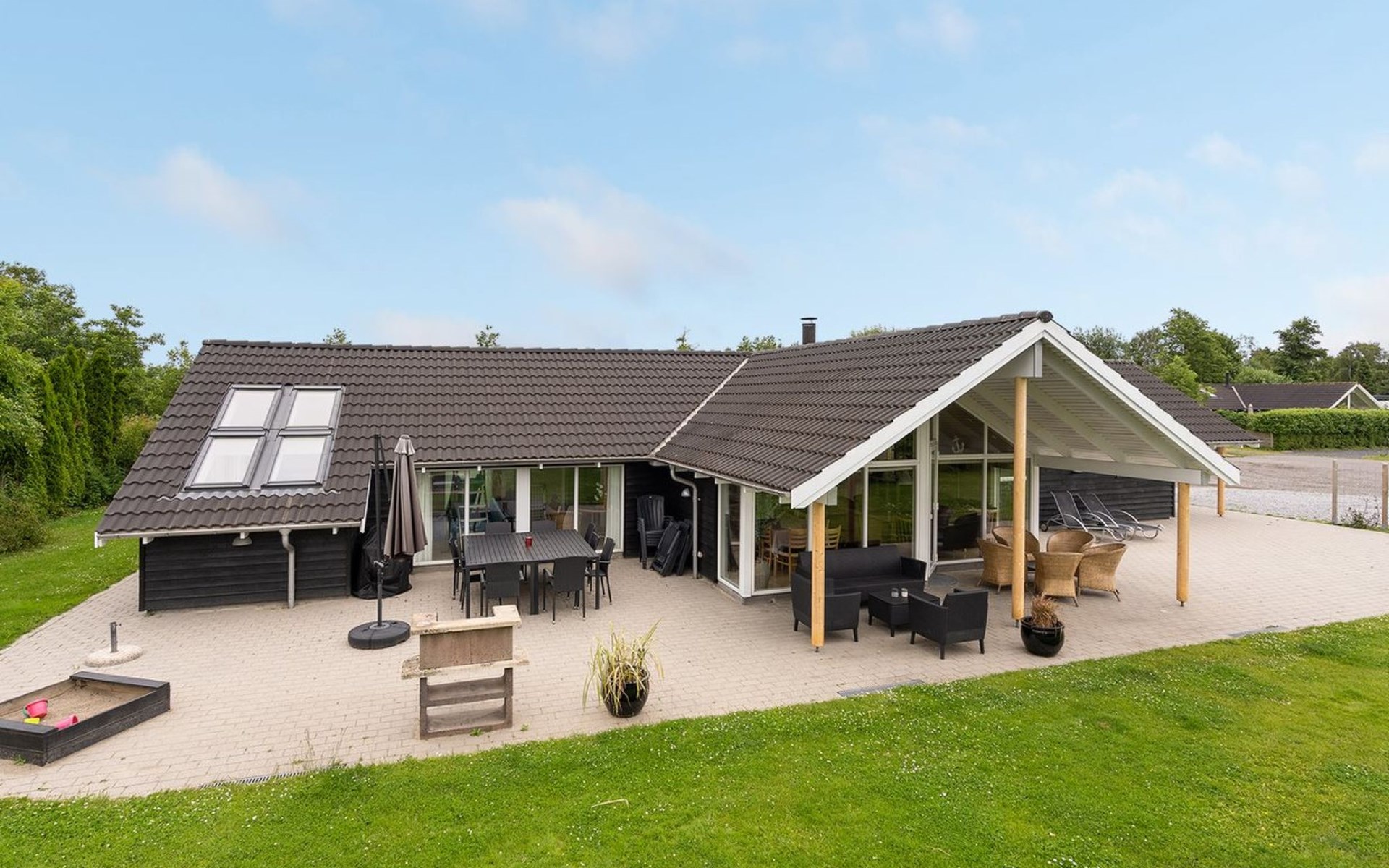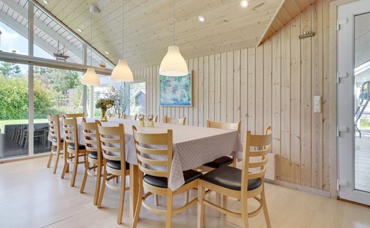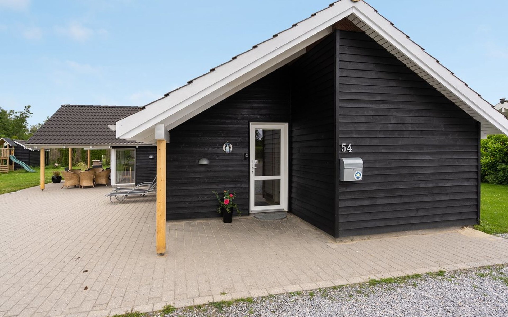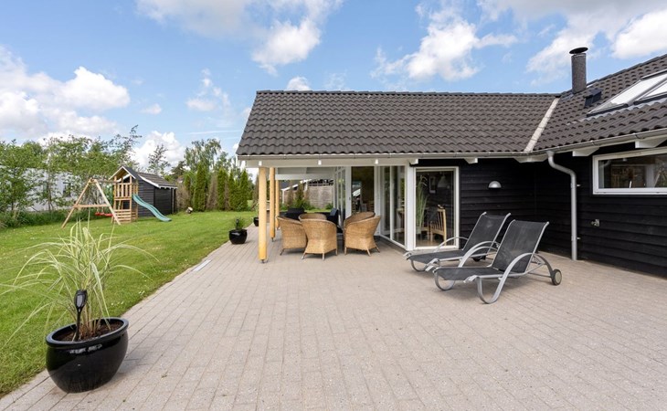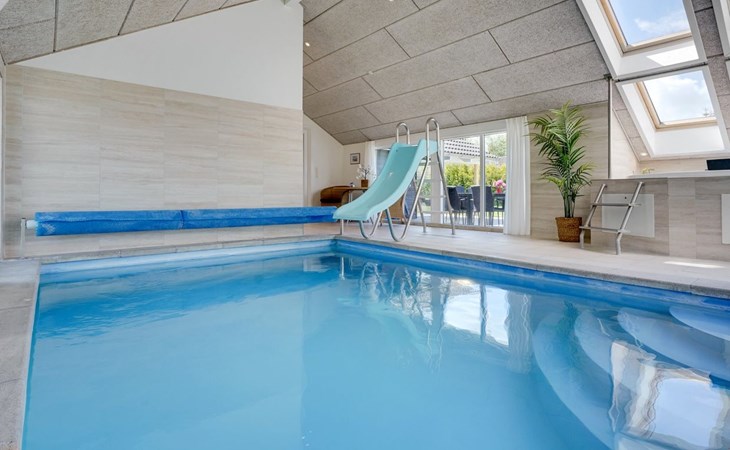 Eengezinswoning, bouwjaar 2006. 800 m van zee. Voor alleengebruik: terrein 1.200 m2, verzorgde tuin, overdekt zwembad. Terras (80 m2), kinderspeelplaats (schommel). In het huis: sauna, tafelvoetbal, wasmachine, droger. Parkeerplaats bij het huis. Levensmiddelenwinkel 300 m. Golfterrein 1.5 km. De eigenaar accepteert geen jeugdgroepen.