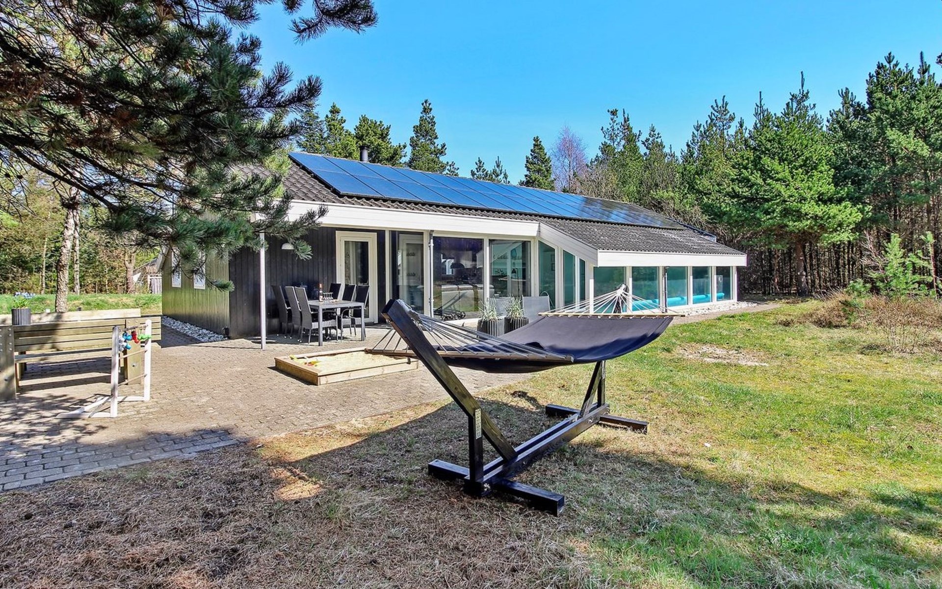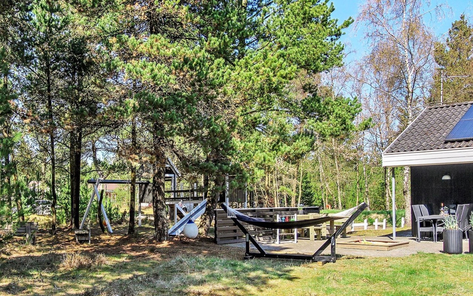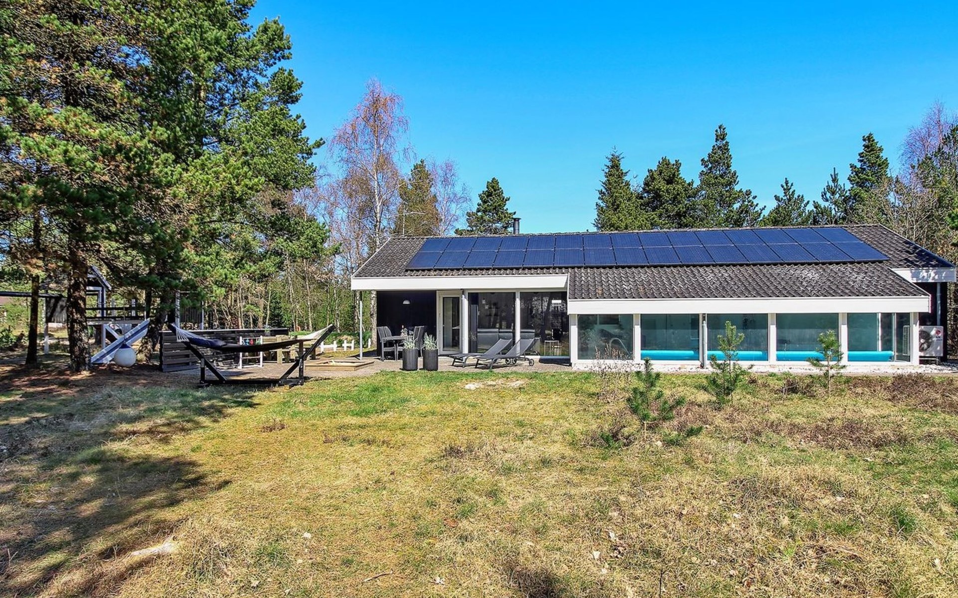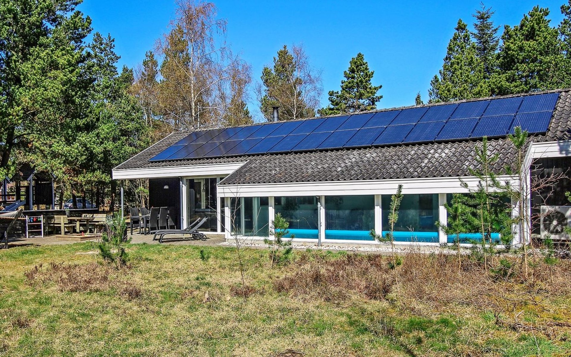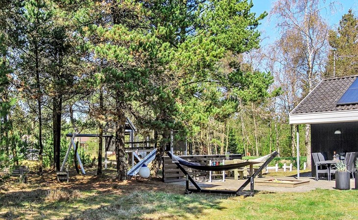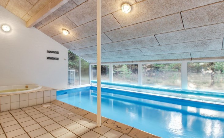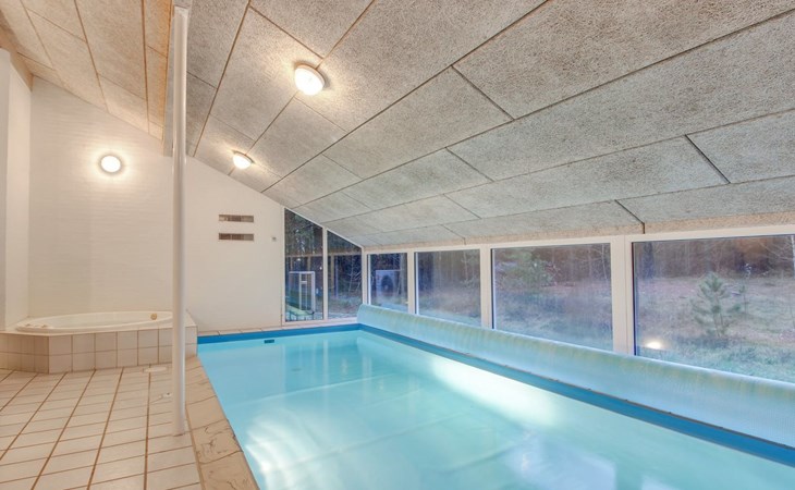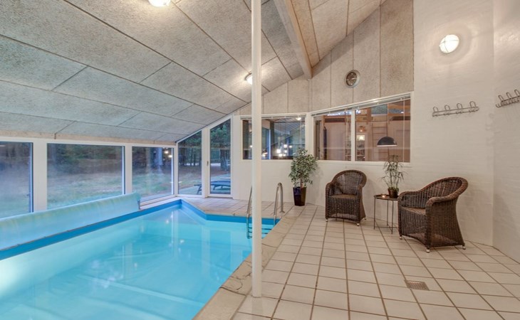 Eengezinswoning, bouwjaar 1995. 8 km van zee. Voor alleengebruik: wild terrein 3.530 m2, overdekt zwembad. Terras (25 m2), kinderspeelplaats (schommel). In het huis: sauna, wasmachine, droger. Parkeerplaats bij het huis. Levensmiddelenwinkel 6 km. De eigenaar accepteert geen jeugdgroepen.