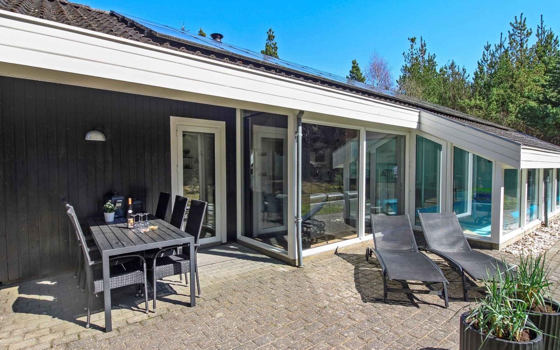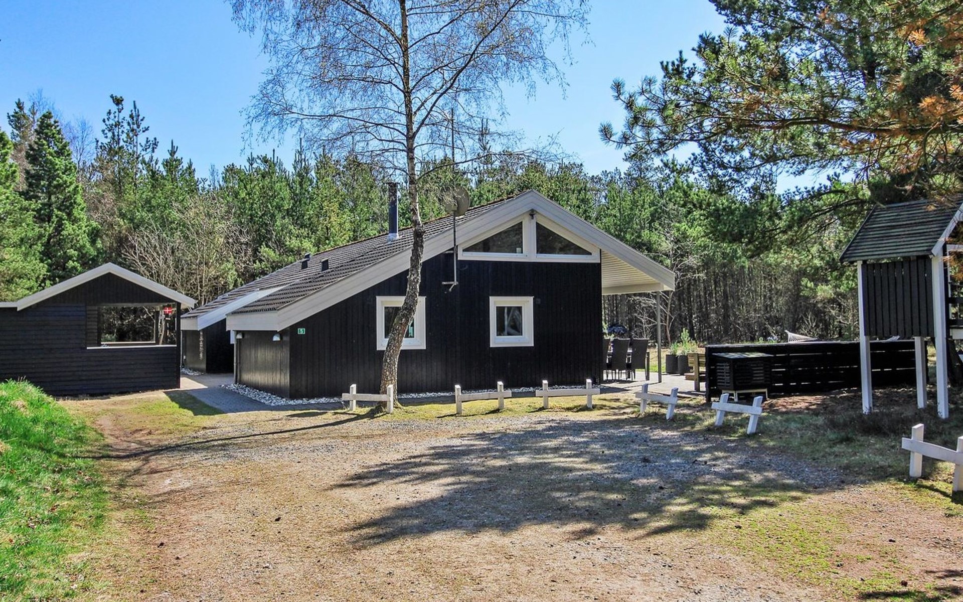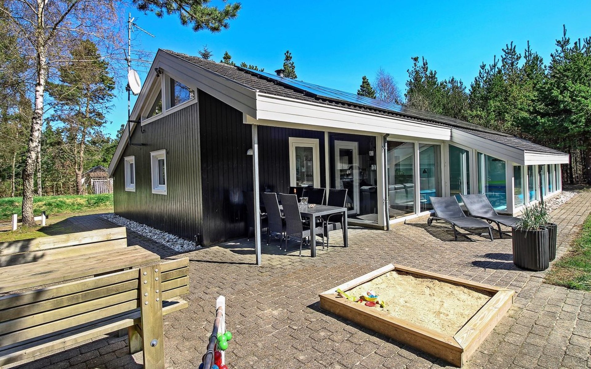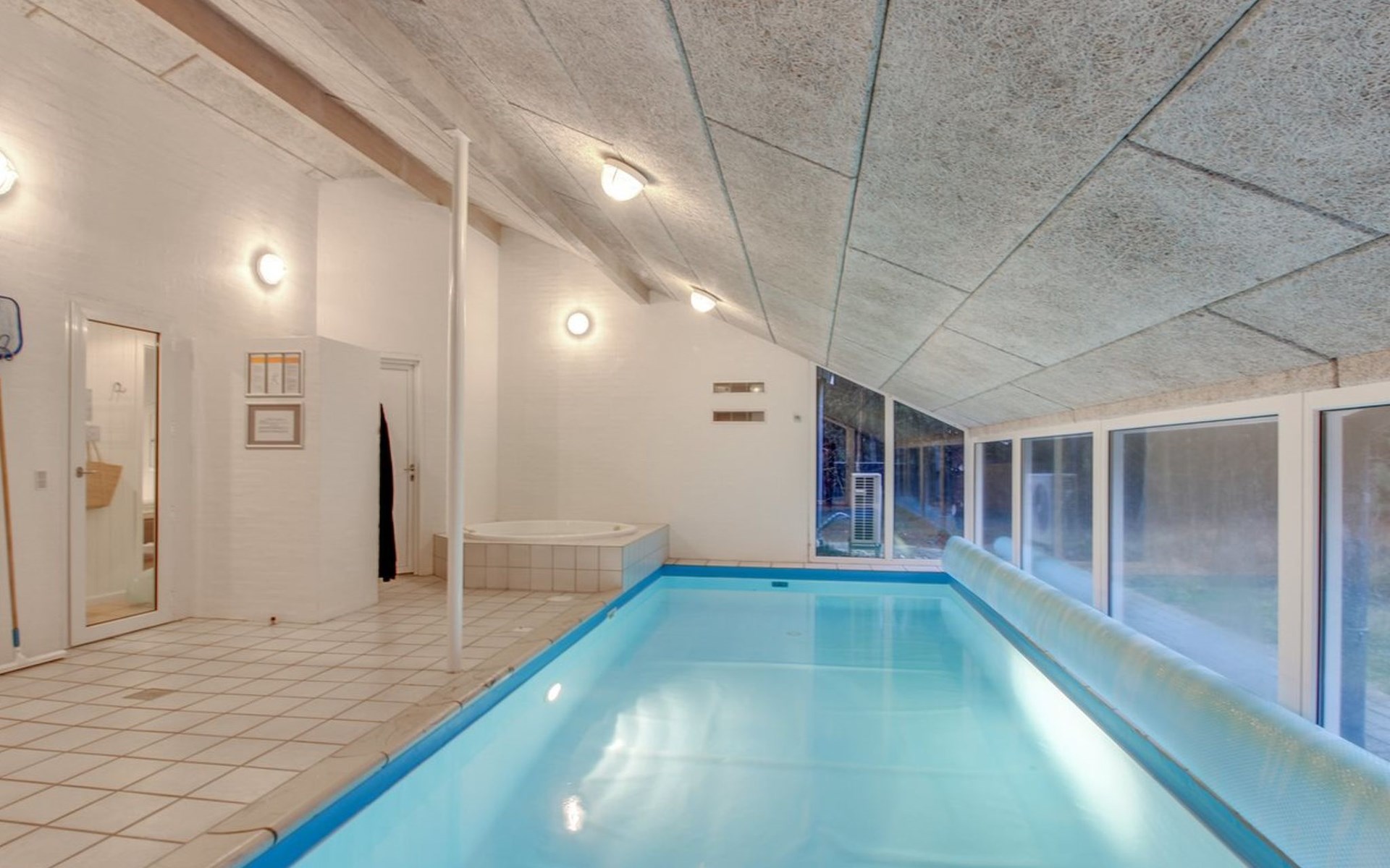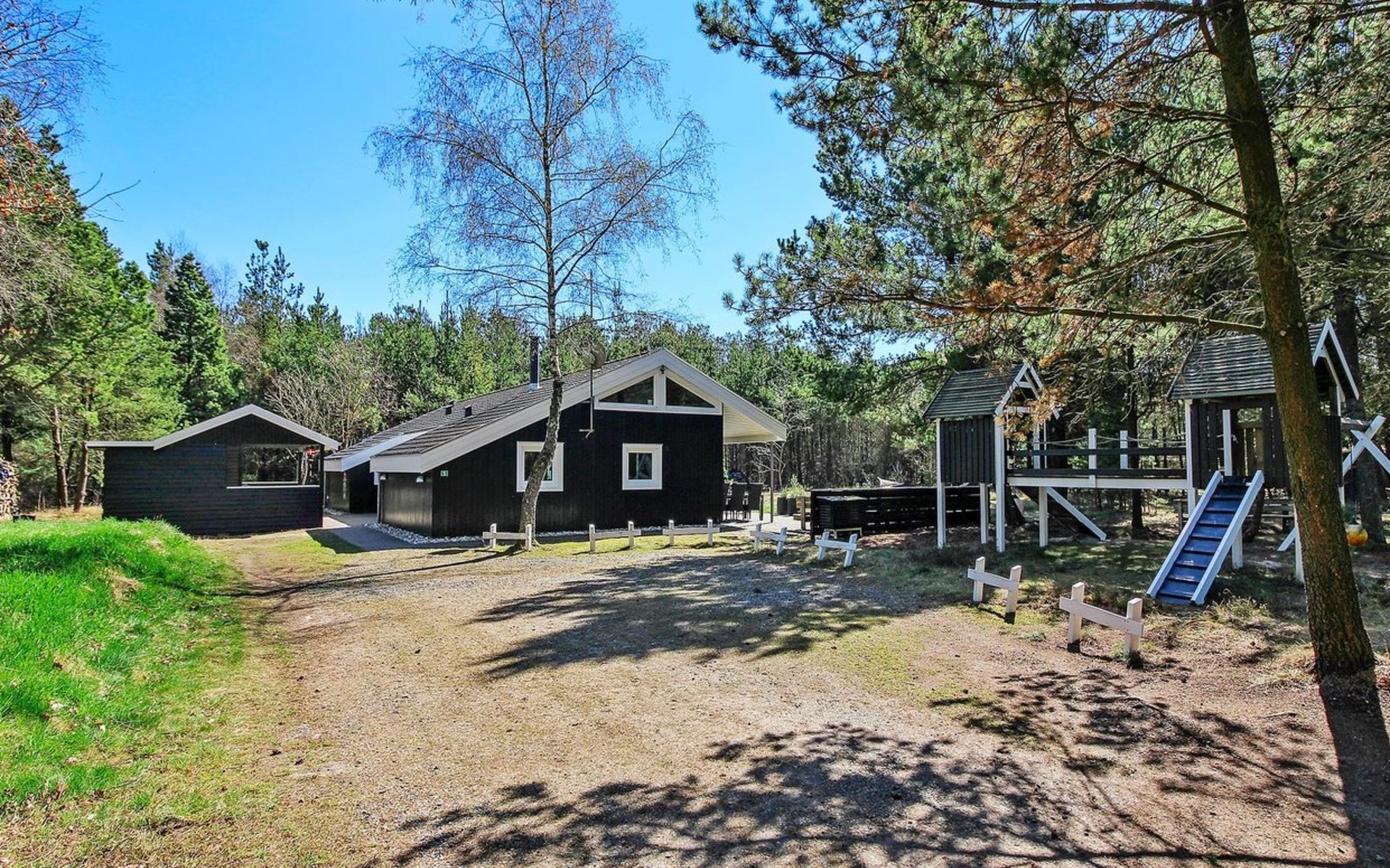 Eengezinswoning, bouwjaar 1995. 8 km van zee. Voor alleengebruik: wild terrein 3.530 m2, overdekt zwembad. Terras (25 m2), kinderspeelplaats (schommel). In het huis: sauna, wasmachine, droger. Parkeerplaats bij het huis. Levensmiddelenwinkel 6 km. De eigenaar accepteert geen jeugdgroepen.