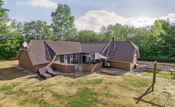 Eengezinswoning, bouwjaar 1995. 12 km van zee. Voor medegebruik: tuin. Voor alleengebruik: wild terrein 1.606 m2, tuin (omheind), overdekt zwembad (4 x 5 m, 2.3.6 m2, 125 - 125 cm diepte). Terras (25 m2), kinderspeelplaats (schommel). In het huis: sauna, wasmachine, droger. Parkeerplaats bij het huis. Levensmiddelenwinkel 600 m. De eigenaar accepteert geen jeugdgroepen.