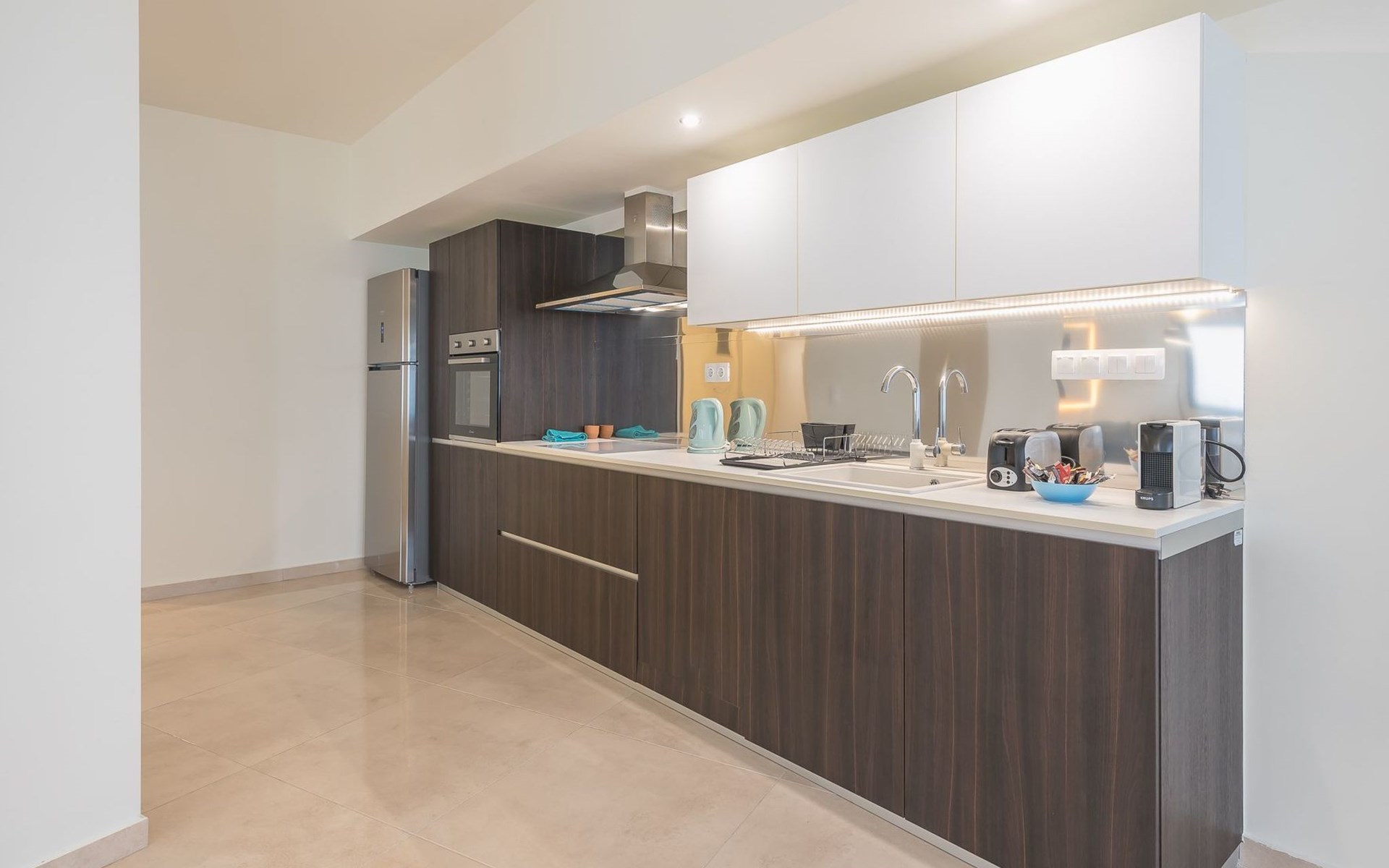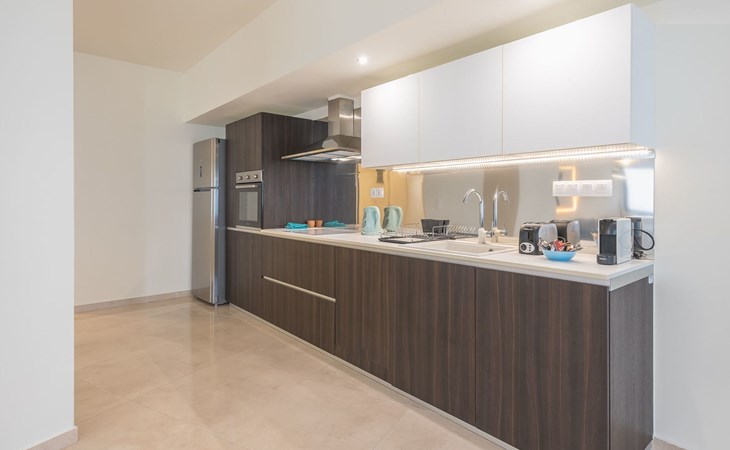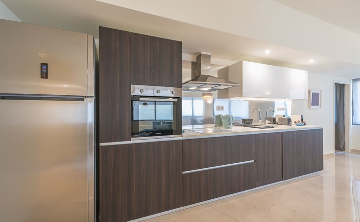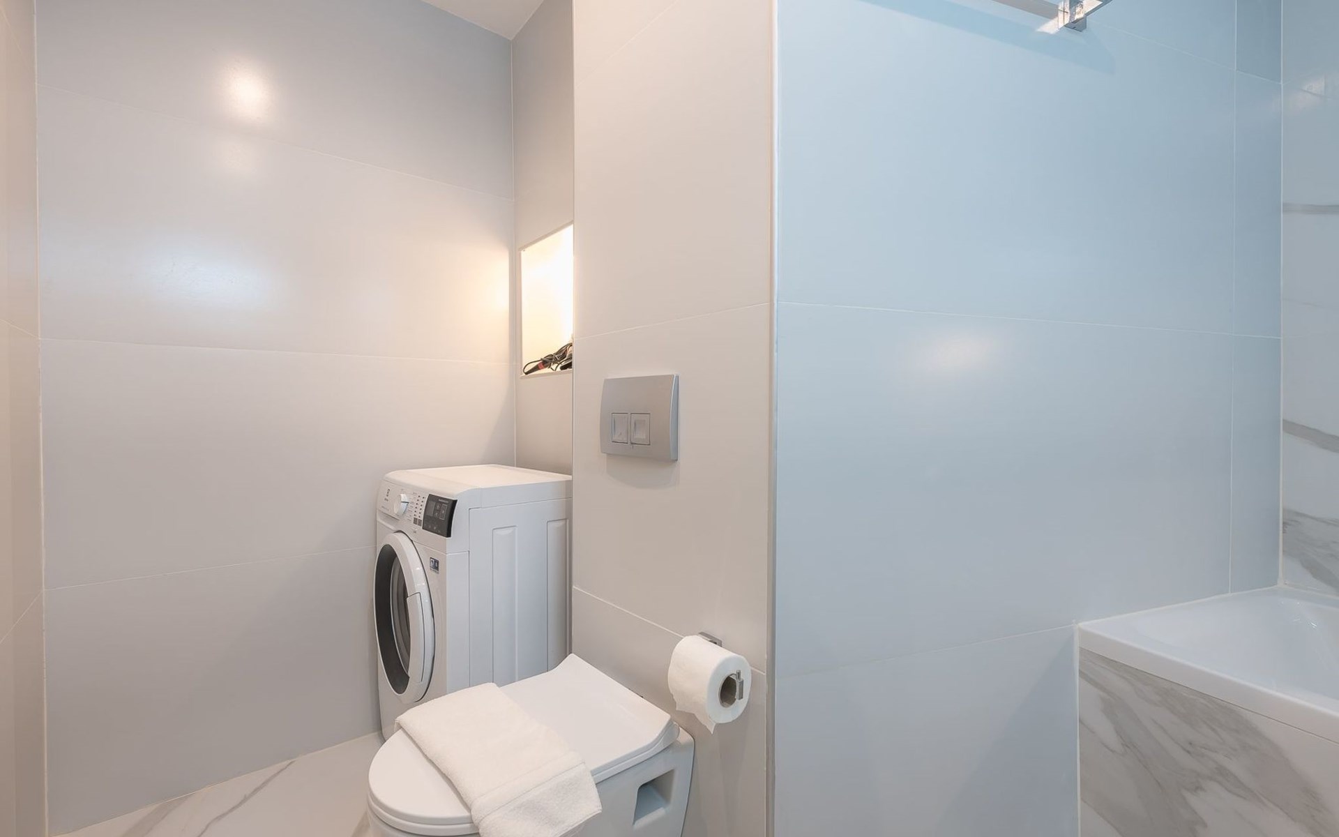 Voor uw gemak is de flat uitgerust met een wasmachine voor privégebruik, evenals een moderne keuken met keramische kookplaat, pod koffiezetapparaat, vaatwasser en waterkoker, zodat u maaltijden kunt bereiden zoals thuis.