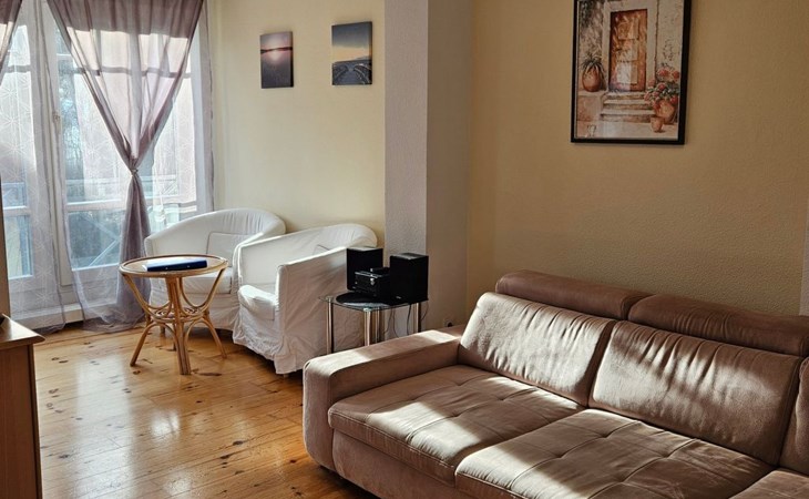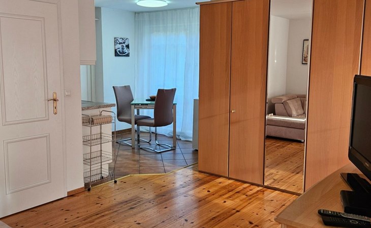 Discover this dreamlike holiday flat in a wonderful location, ideal for your next holiday in Bad Saarow. Just 150 metres from the picturesque Scharmützelsee and only 250 metres from the relaxing Saarow Therme, this flat offers the perfect starting point for an unforgettable time. Experience comfort and relaxation in one of the most beautiful corners of Bad Saarow.The tastefully furnished 2-room flat on 52 m² on the first floor has a large balcony with a view of Lake Scharmützelsee. Ideal for up to 3 people, we also offer a travel cot and a high chair for our younger guests. The flat features a living room and bedroom with elegant wooden floors, while the kitchen, hallway and bathroom have modern tiled floors. Facilities include a double bed, a fold-out sofa bed, flat-screen TV, radio, Internet/WLAN and a fully equipped kitchen with dishwasher, kettle, coffee machine, etc.The outside area of the holiday flat includes an exclusive car parking space in the underground car park as well as accessible parking spaces nearby. Enjoy the benefits of a holiday home where electricity, water, heating, travel cot, high chair, bed linen and towels are already included in the price. The spacious balcony invites you to enjoy the peaceful atmosphere and let your gaze wander over the lake.The immediate vicinity of the holiday flat offers a variety of leisure activities such as hiking and cycling trails, a spa park, various wellness offers, water sports activities and much more. Supermarkets, bakeries, doctors and a pharmacy as well as charming restaurants, pubs and cafés are just a few minutes' walk away. The harbour, the nearby children's playground and the train station are further amenities that will make your stay comfortable and enjoyable.Enjoy your holiday in this wonderful holiday flat which, with its exclusive location and wide range of amenities, ensures an unforgettable stay in Bad Saarow. Whether you are looking for relaxation or an active holiday, everyone will find exactly what they need to have a wonderful time here. Book now and secure your little piece of paradise on Lake Scharmützelsee.