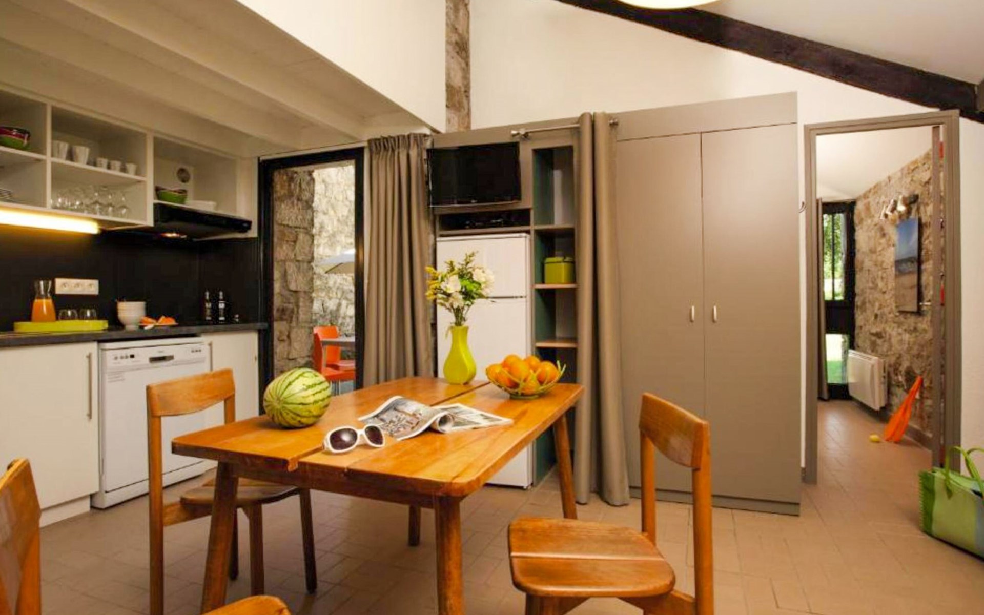 Kindvriendelijk vakantiecomplex "Domaine des Vans". 40 huizen in de woning. 2 km van het centrum van Les Vans, 600 m van de rivier, aan een doodlopende weg. Voor medegebruik: terrein met gazon en bomen, openluchtzwembad (seizoensgebonden beschikbaarheid: 15.Mei. - 15.Sep.). Basketbal, jeu de boules, volleybalveld, barbecue. In het complex: receptie, Internet (WiFi), wasmachine, droger (extra). Parkeerplaats op het terrein. Levensmiddelenwinkel 200 m, restaurant 2 km, bakkerij 2 km, bushalte 2 km. Manege 10 km. Attracties in de buurt: Centre nautique (Canoe-Kayak-Paddle) 1.5 km, Naves 3 km, Banne 10 km, Les Chaos de Montselgues (UNESCO) 25 km, Vallon Pont d'Arc (Gorges de l'Ardèche) 29 km. Wandelgebied GR. Autovrij vakantiepark. De afgebeelde foto is slechts een voorbeeld.