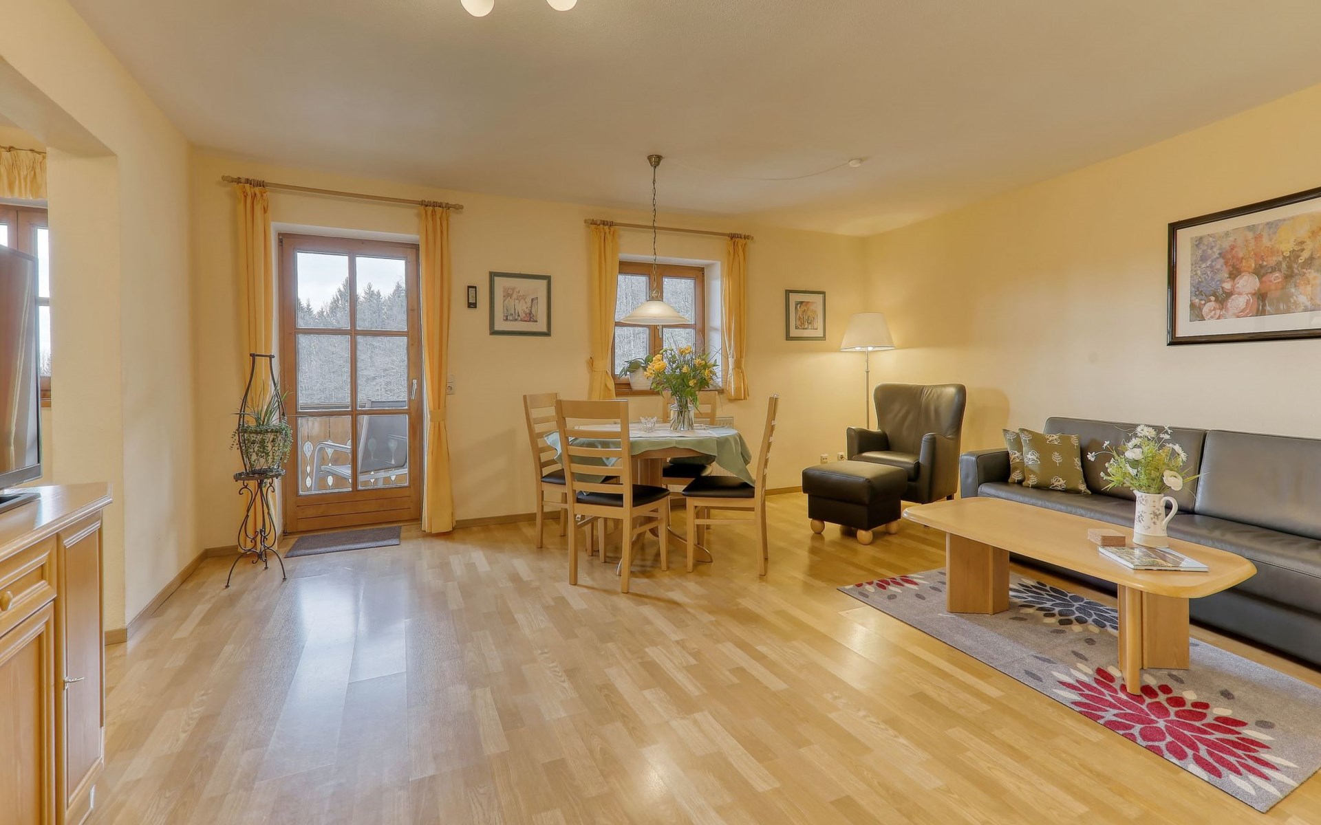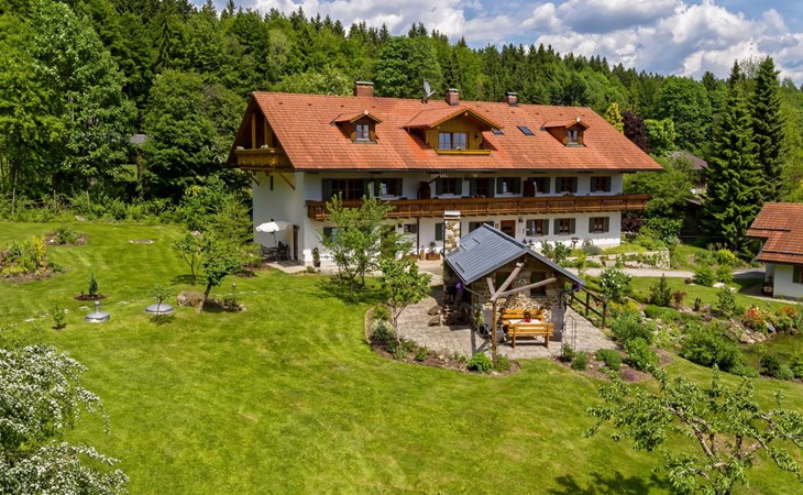 Haus Jägerfleck is situated on a large property in a quiet, idyllic location directly in the national park. Live in harmony with nature. There is a large forest playground in the immediate vicinity. The entrance to the cross-country ski trail and starting point for hikes is right next to the property. The 8 holiday flats are very different and offer something special for every taste. But what they all have in common is cleanliness, modern and high-quality furnishings, where you will feel at home. In the entire living area we have chosen the furnishings not only for their beauty, but above all for their health and biological aspects. Daylight bathrooms, wooden floors, tasteful wooden furniture and a fully equipped kitchen with dishwasher for your comfort. Use our party house with wood-burning stove for cosy evenings for up to 15 people.Private balcony with forest viewCommunal barbecue (gas or charcoal) Please bring your own charcoalHeatable barbecue hut with sink and fridgeDrinks fridge with water, soft drinks and beer (subject to charge)Campfire area with swing barbecueParking space at the house. Electricity cable with intermediate meter for an electric carPlot is detached. Garden with garden furniture and park-like character1st floor. Central heating. 1 accommodation unit of this typeDouble bed 1.80x2.00m, barrel pocket spring core hardness grade 4, duvets, 3 pillows per person (80x80, 80x40, 40x40), wardrobe, chest of drawers. Bedroom is on the north sideSofa bed, living room with slatted frame and mattress 160x200Dining table for 4 peopleLiving area with satellite TV, stereo and furnished south-facing balconyKitchen with dishwasher, fridge with freezer compartment, 4-ring hob, oven, extractor bonnet, sink, pots, pans, filter coffee machineBathroom: shower tray with shower curtain, washbasin, WCWardrobeTreetop walk with animal enclosure 10kmNatural swimming pool Spiegelau is 3km awayHiking and cross-country skiing trails from the house3 supermarkets and various restaurants in Spiegelau (3km)Treetop walk with animal enclosure 10kmBeautiful motorbike tours in the surrounding areaBavarian Forest National Park right next to the propertyWild and romantic stone gorge Spiegelau 3kmMountain Rachel from the house there and back 6hFree bus and train with Nationalparkcard (free of charge available here)various Nationalpark/Ranger toursSkiing area Mitterfirmiansreut in 20kmArber in 30kmPullman City 25kmPassau 45kmFreilandmuseum FinsterauCeltic villageCzech Republic 40kmAustria 40kmKayak tours possiblefor more tips, contact the tourist office in SpiegelauThe house is located about 3km from SpiegelauPlease note that wild animals are on the roads at duskPlease think of winter tyres from October to EasterRoads are cleared in the morning and more often during the day in case of snowfallThere is a garden pond on the property, about 1.20m deep. Please take care of your childrenWe have our own spring water which is strictly controlled by the authorities. Please treat the water with care and our house has its own sewage treatment plant. Please only throw toilet paper into the toilet.there are horses in the neighbourhood. Please do not feed them.we are located right next to the nature reserve. Please no New Year's Eve firecrackers. Dogs must be kept on a leash in the national park.bread service is possible.sauna use is organised. You have this for yourself. It is not shared with other guests. Please plan your visit to the sauna. You will receive 2 towels per person. The use of the sauna is 2 hours.