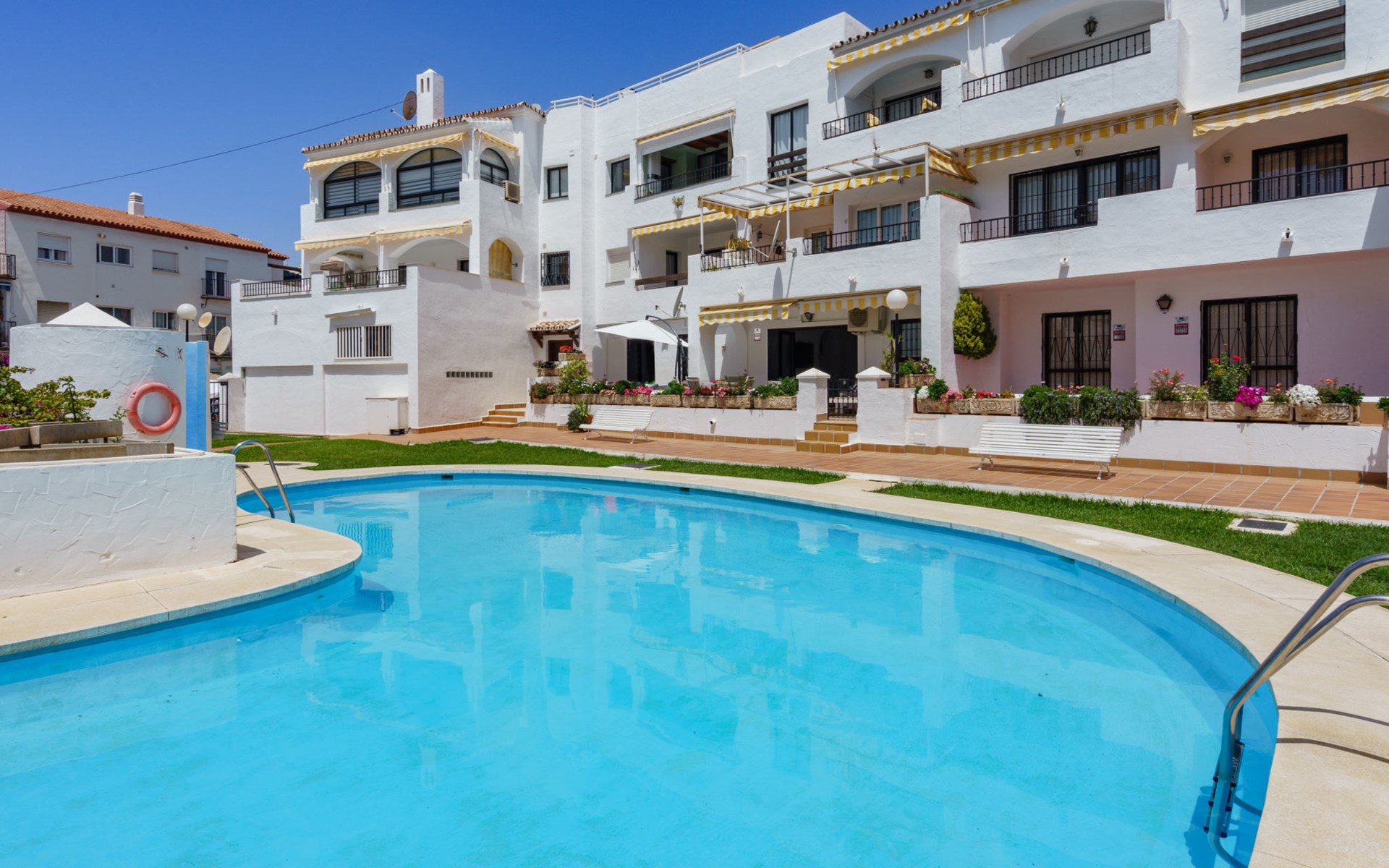 Mooi, comfortabel flatgebouw "Erik Chef Parador". Rustige, zonnige ligging, 100 m van zee, van het strand. Voor medegebruik: ligweide, openluchtzwembad niervormig (10 x 5 m, 100 - 175 cm diepte, seizoensgebonden beschikbaarheid: 01.Mrt. - 31.Dec.). Buitendouche. Winkel 50 m, winkelcentrum 23 km, restaurant 50 m, voetgangersgebied 250 m, station 52 km, zandstrand "Burriana" 100 m, duikschool 200 m. Jachthaven 17 km, golfterrein (18 holes) 23 km, tennis 1 km. Attracties in de buurt: Frigiliana, La Herradura, Malaga, Competa, Cuevas de Maro, Granada. Bekende skigebieden kunnen gemakkelijk worden bereikt: Sierra Nevada. Wandelgebied Sierra Almijara, Sierra Tejeda. Geen lift. Laden en lossen van de baggage is mogelijk bij het huis. Object referentie: ES5405.763.1 is gelegen op hetzelfde terrein.