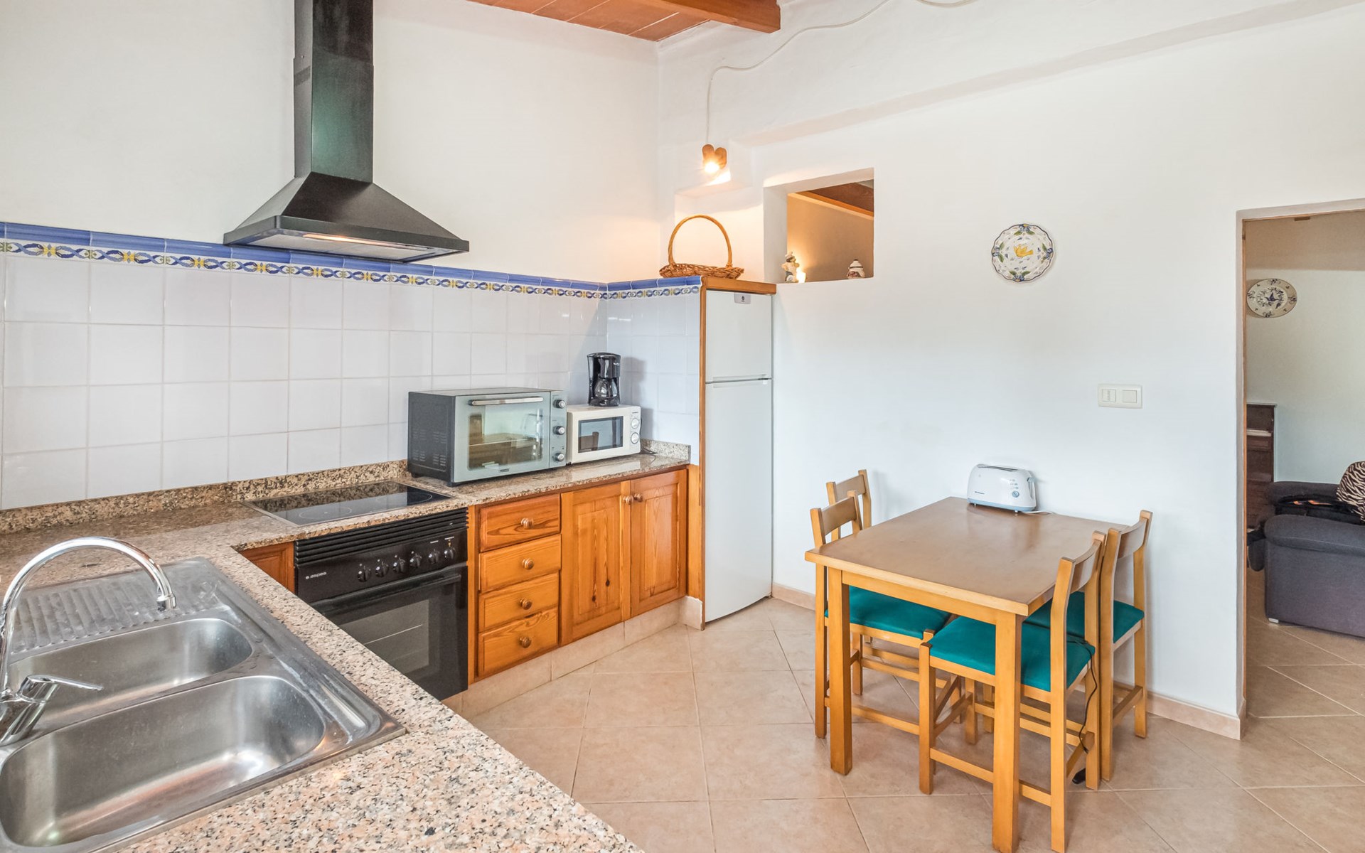 Huis met 2 woningen "Sa Rossa", aangebouwd. In de plaats, 100 m van het centrum van Es Llombards, 7 km van het centrum van Santanyi, 16 km van het centrum van Campos, 6 km van zee. Voor alleengebruik: terrein 200 m2 (omheind), tuin met planten en bomen, openluchtzwembad (7 x 3 m, 100 - 160 cm diepte, seizoensgebonden beschikbaarheid: 01.Jan. - 31.Dec.). Douche/WC bij het zwembad, openbare parkeerplaatsen in de straat. Winkel 7 km, bushalte "Santanyi" 6 km, treinstation "Manacor" 37 km, zandstrand "Cala Llombards" 6 km. Auto noodzakelijk. Het objekt is geschikt voor 4 volwassenen. De eigenaar woont op hetzelfde terrein.