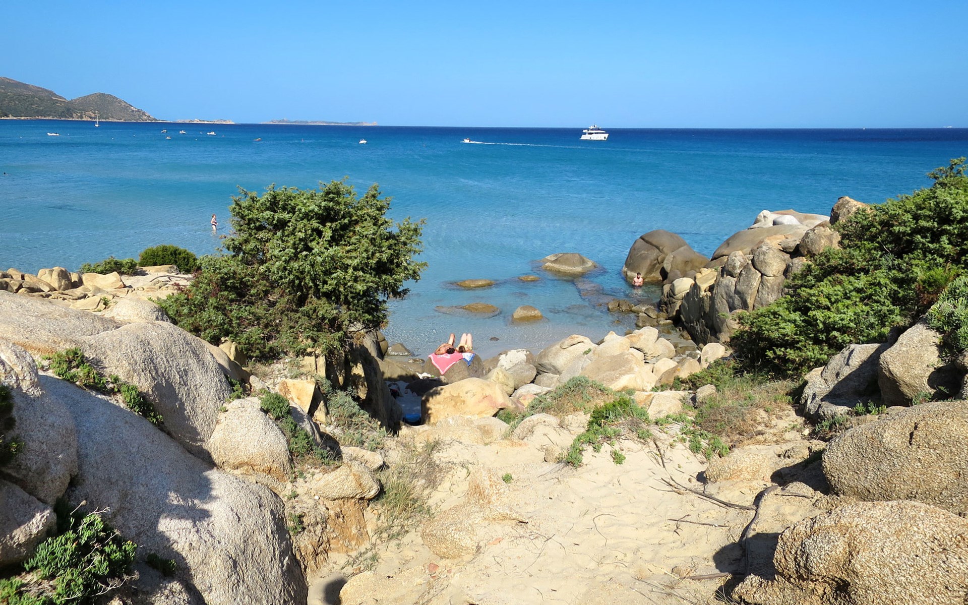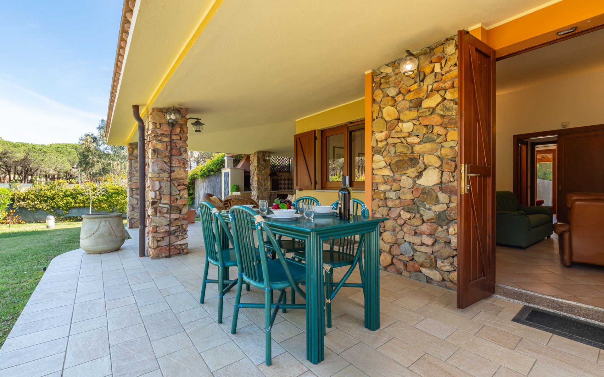 Mooi villa "Domus Ema", omgeven door bomen. Aan de rand van de plaats, 1 km van het centrum van Villasimius, rustige, zonnige ligging, 200 m van zee, 200 m van het strand, te midden van groen. Voor medegebruik: mooie tuin met bloemen en bomen. Voor alleengebruik: buitendouche, terras, grill. Toegangsweg (300 m onverharde weg). Parkeerplaats bij het huis. Winkel 200 m, supermarkt, restaurant, bar, bushalte "via Roma La Lanterna" 2 km, station "Cagliari" 60 km, veerboot "Cagliari" 60 km, zandstrand "Spiaggia Del Riso" 200 m. Jachthaven 1 km, jachthaven 1 km, golfterrein (18 holes) 1 km. Attracties in de buurt: Cagliari 55 km, Costa Rei 15 km. Auto noodzakelijk. Dieren in de buurt.