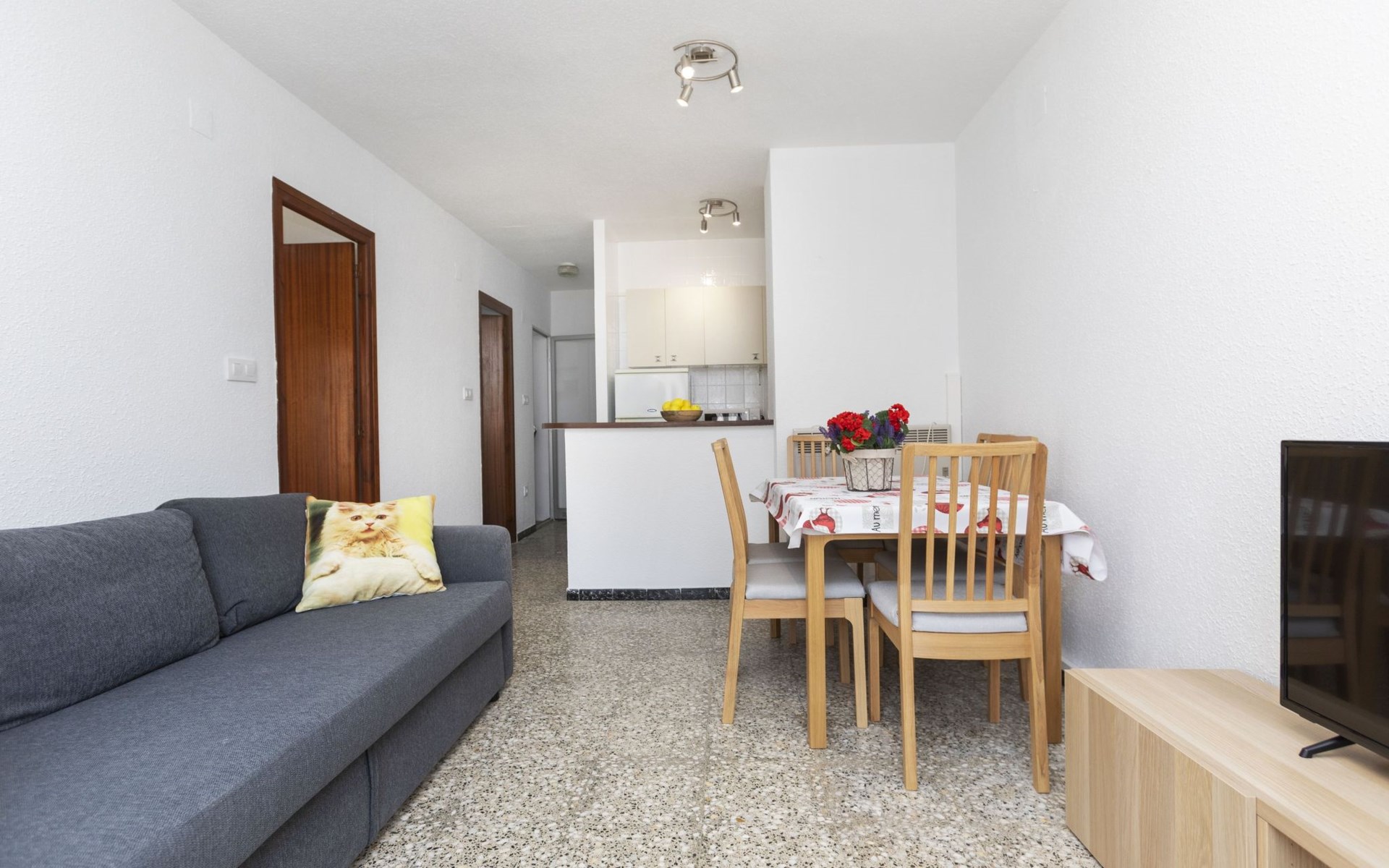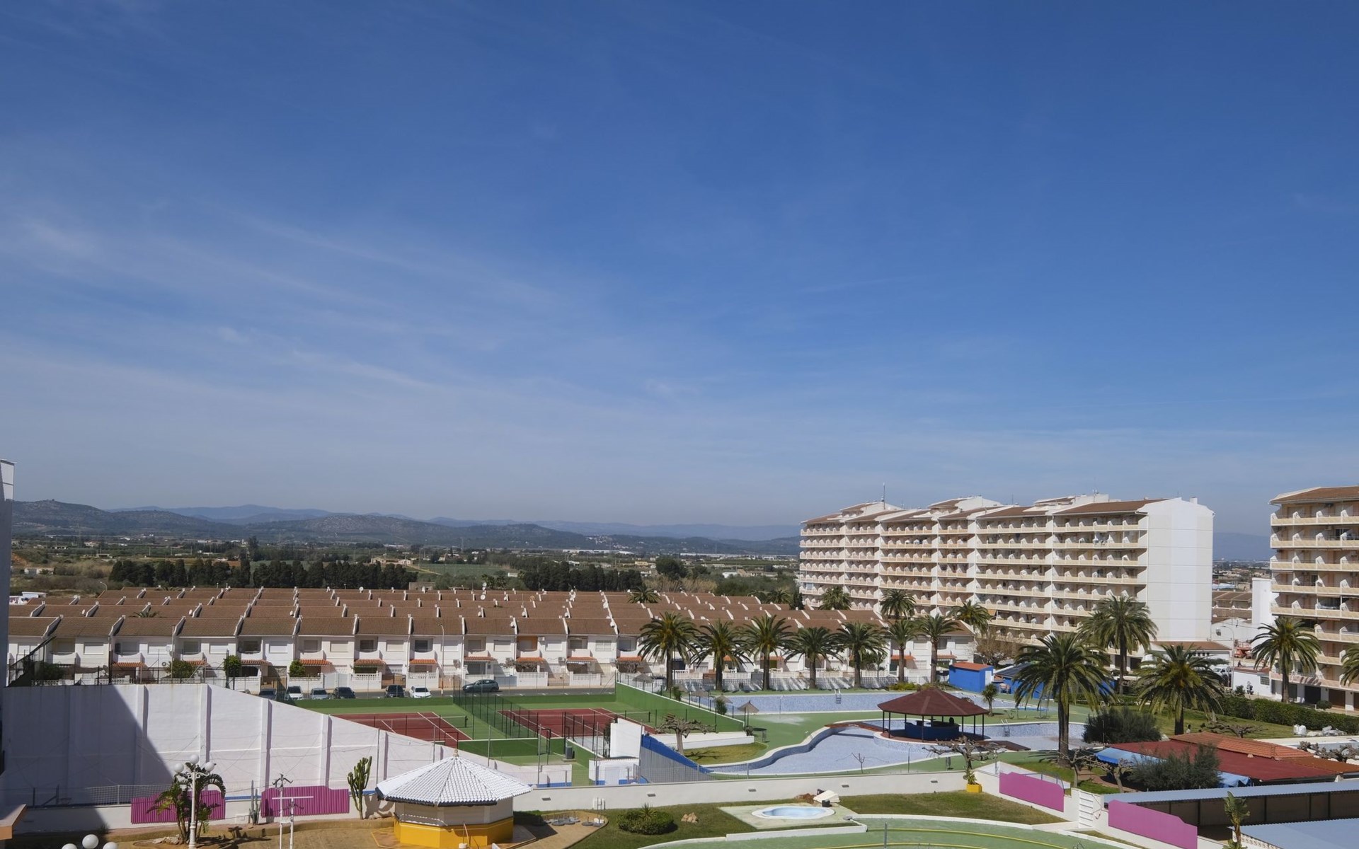 Papa Luna Peñiscola: Gezellig flatgebouw "Peñiscola Garden". 80 huizen in de plaats. Van zee, 350 m van het strand. Voor medegebruik: tuin op verschillende niveaus (omheind), 3 zwembaden (40 x 25 m, seizoensgebonden beschikbaarheid: 15.Jun. - 15.Sep. openingstijden zwembad: 10:00-20:00). Buitendouche, tennisbaan. In het huis: air-conditioning. Parkeerplaats bij het huis. Winkel, levensmiddelenwinkel, supermarkt, restaurant 350 m, bar, bushalte "Plaza de la Constitución" 3.5 km, station "Benicarló-Peñíscola" 6.4 km, zandstrand "Playa Norte". Golfterrein (18 holes) 30 km. Attracties in de buurt: Laberinto mas grande de España 9 m, Delta del Ebro 50 km, Museo Ciencia y Artes Valencia 150 km, Golf Panoramica 30 km, Castillo de Peñiscola 3 km. Bekende meren kunnen gemakkelijk worden bereikt: Pantano La Senia 25 km. Wandelgebied Sierra de Irta 10 km. Geen lift.