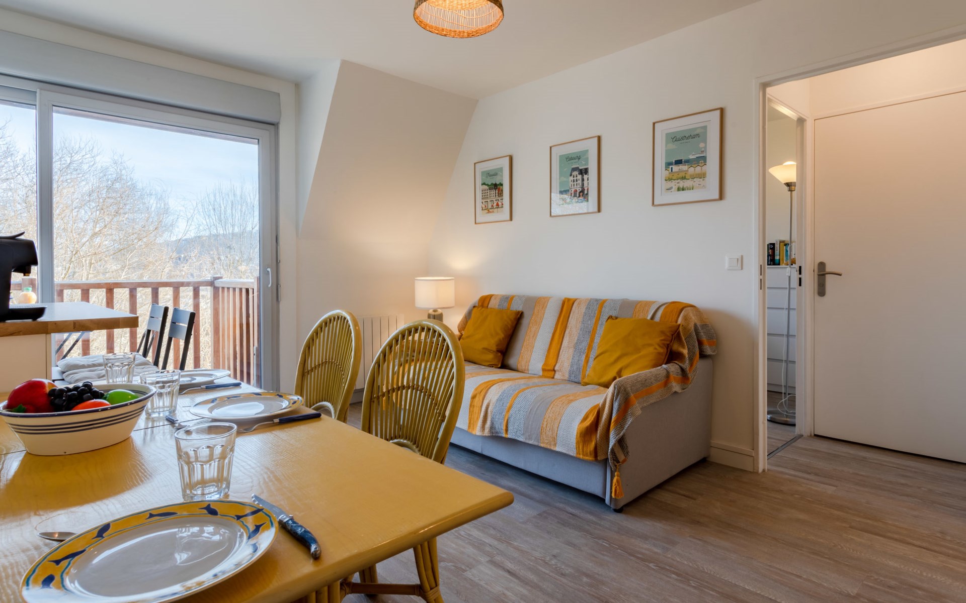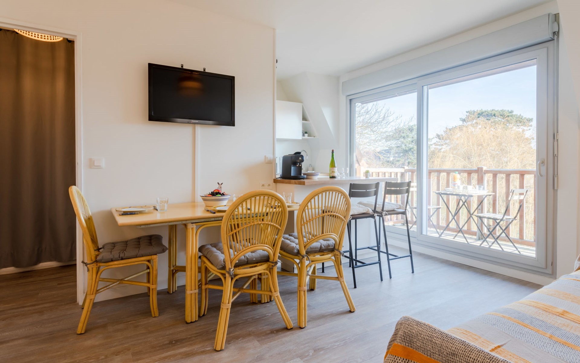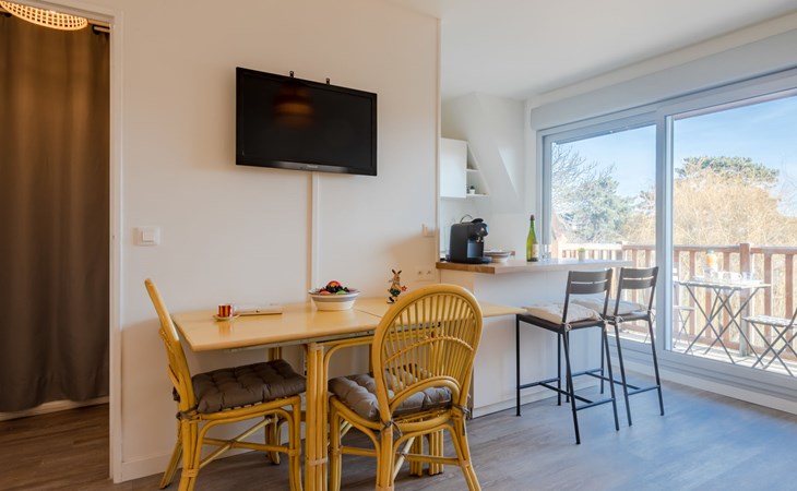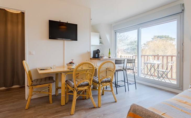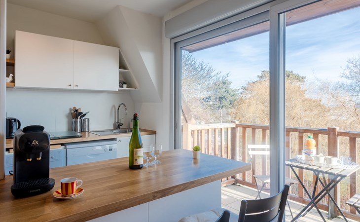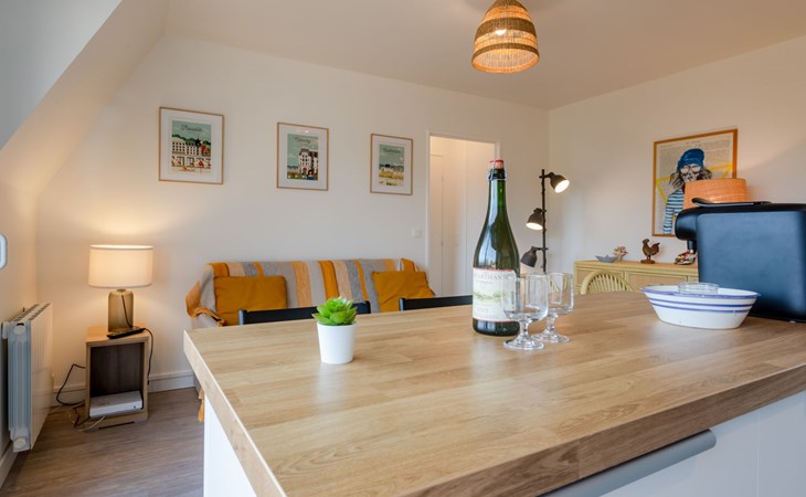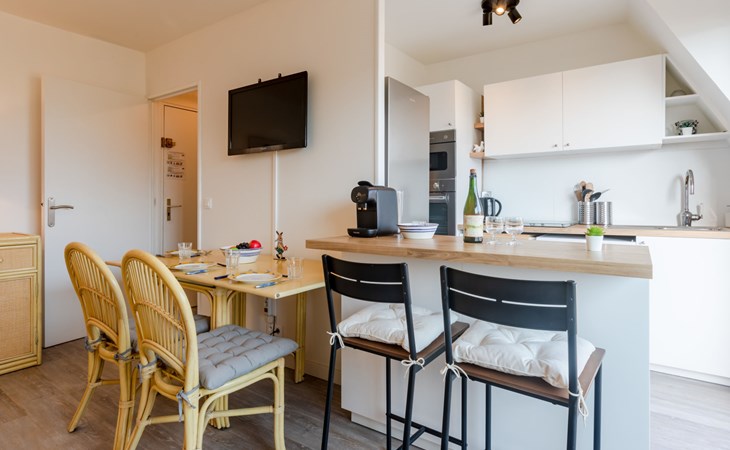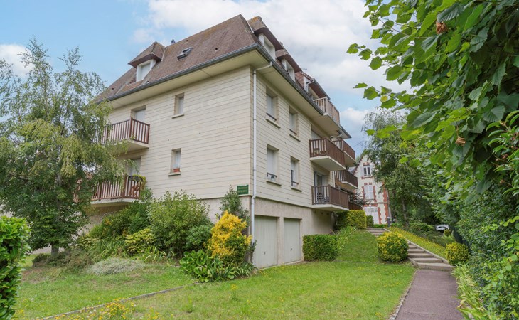 Residentie "Eurydice", van 3 verdiepingen, omgeven door bomen. In de plaats, 800 m van het centrum van Cabourg, 150 m van zee. Openbare parkeerplaatsen in de straat. Winkel 650 m, supermarkt 2.8 km, restaurant 650 m, bushalte "Hôtel de Ville" 1.1 km, zandstrand 150 m. Jachthaven 150 m. Geen lift. Let op: toegang tot het gebouw via een trapje van enkele treden.