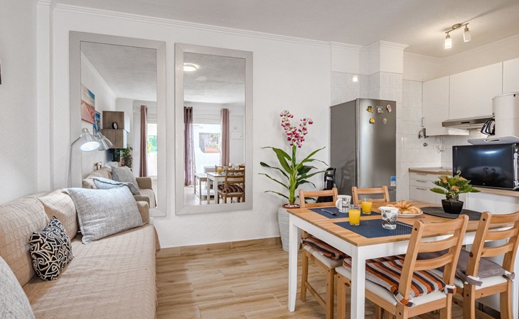 Groot flatgebouw "Parque Don Jose", van 3 verdiepingen. In het centrum van Costa del Silencio, rustige, zonnige ligging, perfecte locatie: in het centrum en toch rustig gelegen, 550 m van zee, 600 m van het strand. Voor medegebruik: mooie, verzorgde tuin op verschillende niveaus, vijver, 2 zwembaden (100 - 180 cm diepte, seizoensgebonden beschikbaarheid: 01.Jan. - 31.Dec.). Onregelmatig zwembad. Douche/WC bij het zwembad, kinderzwembad, jeu de boules. Supermarkt 550 m, restaurant, bar 25 m, bakkerij 300 m, café 25 m, bushalte "Jose Antonio Tavio" 450 m, kiezelstrand "Playa de Montaña Amarilla" 550 m. Golfterrein (9 holes) 10 km. Attracties in de buurt: Siam Park 17 km, Playa de Las Americas 18 km, Masca 50 km, Teide 52 km. Baby uitrusting op aanvraag. De eigenaar accepteert geen jeugdgroepen. Het complex wordt s´nachts bewaakt. Gesloten residentie met een elektrische deur. De omgeving is gevoelig voor geluidsoverlast. Gelieve geen lawaai te maken en de rust te bewaren.