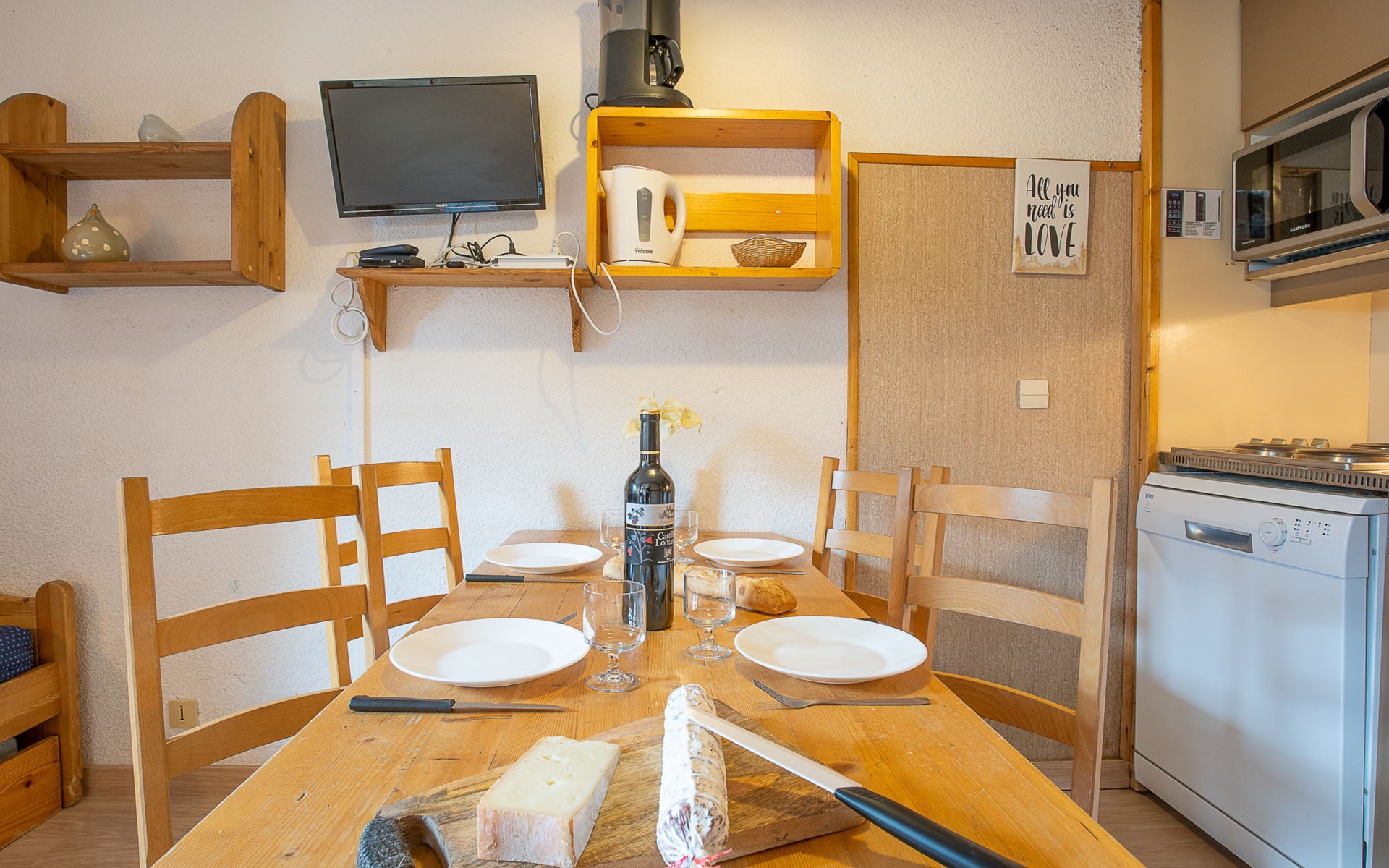 Zeer mooi residentie "Arcelle", van 7 verdiepingen. In het centrum van la station, drukke ligging, 100 m van het skigebied, in een voetgangerszone. In het complex: lift, berging voor ski's. In de winter sneeuwkettingen aanbevolen. Openbare parkeergarage op 50 m, extra. Oplaadstation. Winkel 1 m, levensmiddelenwinkel, supermarkt, winkelcentrum, restaurant, bar 2 m, bakkerij 15 m, café 5 m, voetgangersgebied 2 m, bushalte 50 m, openluchtzwembad 20 m. Sportcentrum 5 m, stoeltjeslift 50 m, kabelbaan op 150 m, ski faciliteiten 70 m, skipisten 100 m, skiverhuur 2 m, skibushalte 15 m, skischool 40 m, langlaufloipe 1 km, ijsbaan 150 m. Attracties in de buurt: Les Menuires 1 km. Bekende skigebieden kunnen gemakkelijk worden bereikt: 3 Vallées. Bekende meren kunnen gemakkelijk worden bereikt: Lac du lou 1 km, Lac Menuires 800 m. Baby uitrusting op aanvraag (extra). Groepen jongeren uitsluitend op aanvraag. De eigenaar accepteert geen groepen. Bij goede skicondities is het huis bereikbaar per ski. De sleuteloverdracht vindt plaats bij het agentschap Interhome ValThorens. Vergelijkbare accommodaties kunnen worden geboekt. De omgeving is gevoelig voor geluidsoverlast. Gelieve geen lawaai te maken en de rust te bewaren.