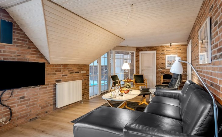 Eengezinswoning, bouwjaar 1992. 700 m van zee. Voor alleengebruik: wild terrein 2.001 m2, overdekt zwembad (3 x 5 m, 1.8.5 m2, 140 - 140 cm diepte). Kinderspeelplaats (schommel). In het huis: sauna, wasmachine, droger. Parkeerplaats bij het huis. Levensmiddelenwinkel 6 km. Golfterrein 7 km. De eigenaar accepteert geen jeugdgroepen.
