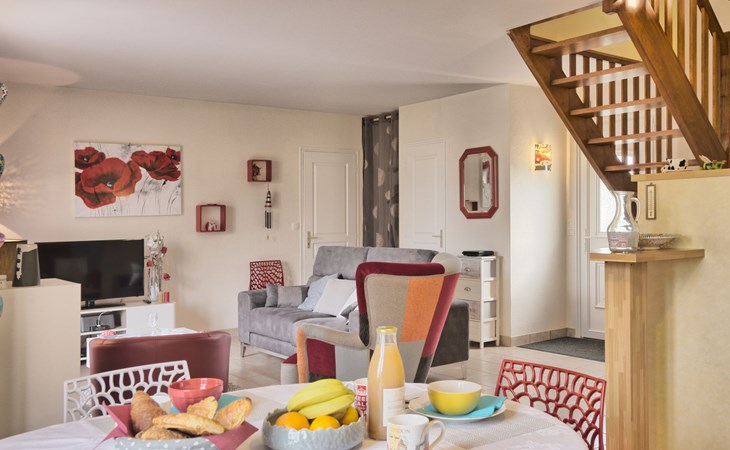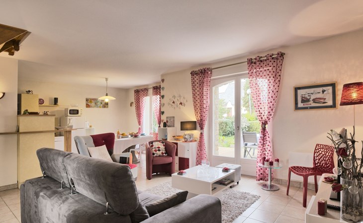 Huis "Charme des Govelins". 2 km van het centrum van Saint-Gildas-de-Rhuys, 7 km van het centrum van Sarzeau, verhoogde ligging in een woonwijk, perfecte locatie: in het centrum en toch rustig gelegen, 400 m van zee, aan een doodlopende weg. Voor alleengebruik: terrein 300 m2 met gazon, mooie tuin ter ontspanning. Berging beschikbaar. Parkeerplaats op het terrein. Winkel 2 km, supermarkt 2 km, fietsverhuur 2 km, bushalte 2 km, zandstrand "Les Govelins" 400 m, fKK-strand 2 km. Zeilschool 1 km. Attracties in de buurt: Golfe du Morbihan 5 km, Port Crouesty-Arzon 8 km, Château de Suscinio 12 km, Vannes 32 km, Carnac 60 km. Wandelgebied GR34.