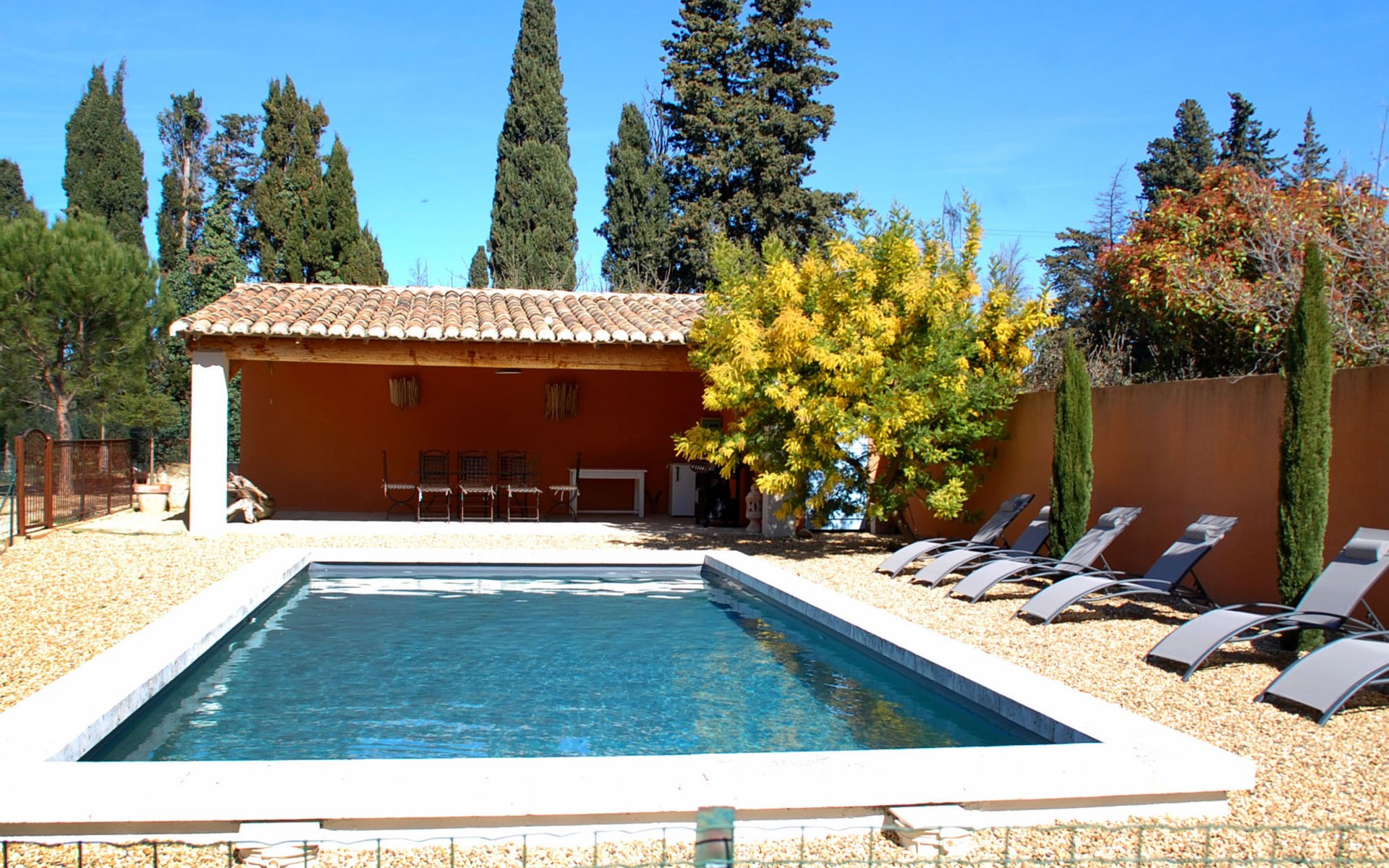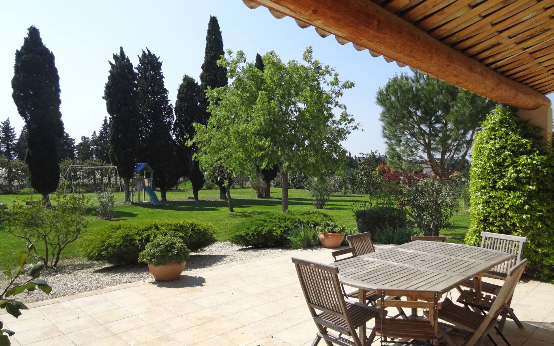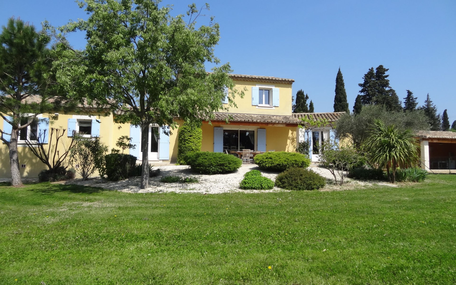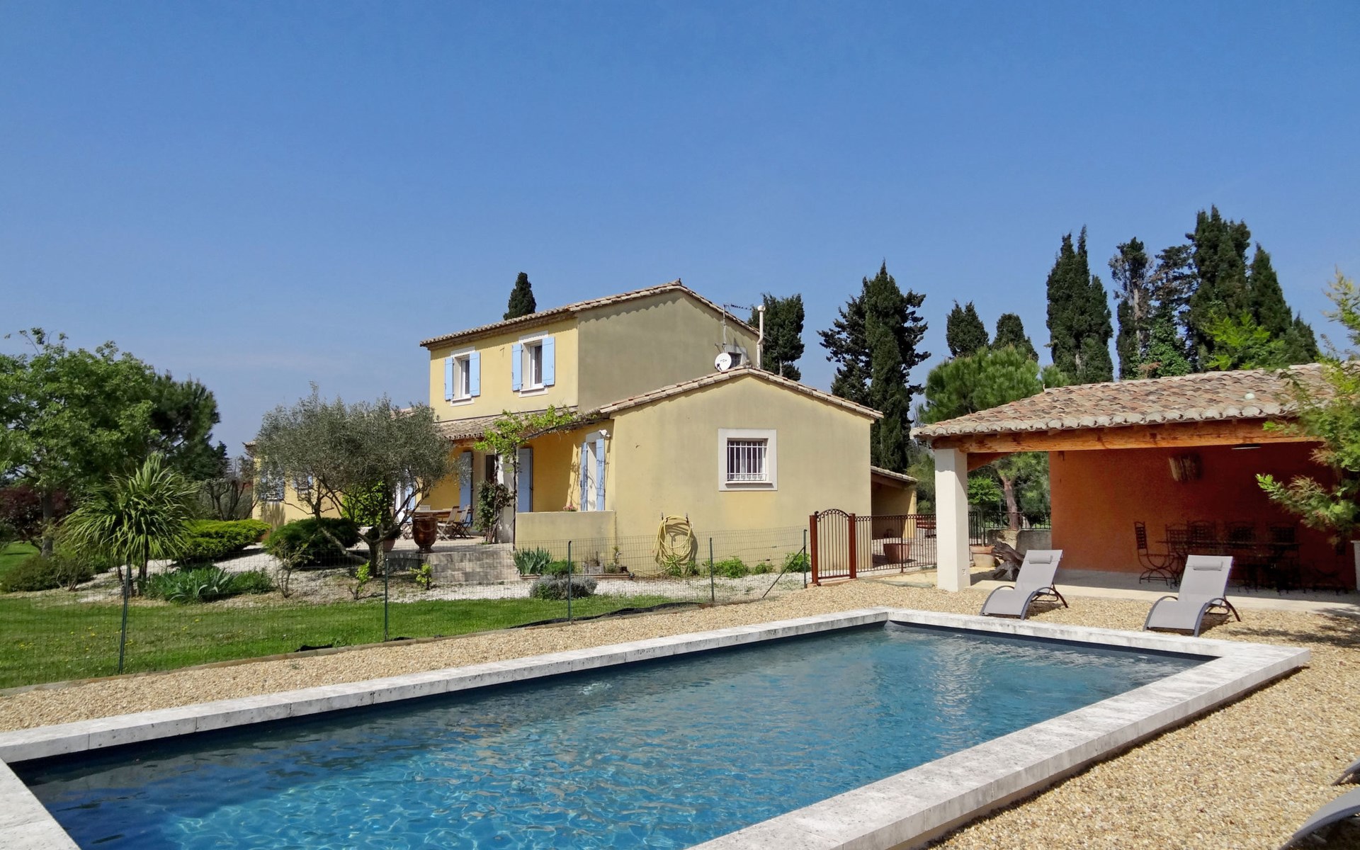Eyragues 6 km van Saint-Rémy-de-Provence: Mooi villa "Siflora", omgeven door weiden. In de plaats, 1.5 km van het centrum van Eyragues, rustige ligging. Voor alleengebruik: terrein 3.500 m2 (omheind), groot, verzorgde tuin (omheind) gazon en bomen, openluchtzwembad omheind (4 x 9 m, 120 - 170 cm diepte, seizoensgebonden beschikbaarheid: 01.Apr. - 30.Okt.) met trap. Tafeltennis, barbecue, kinderspeelplaats (schommel), parkeerplaats (voor 4 auto's) op het terrein. Winkel 1.5 km, restaurant 1.5 km, bushalte "Les jardins" 1.5 km. Tennis 1.5 km. Attracties in de buurt: Saint-Rémy-de-Provence 5 km, Avignon 20 km, Arles 27 km, La Camargue 70 km, Fontvieille 19 km, Les Baux de Provence 13 km.