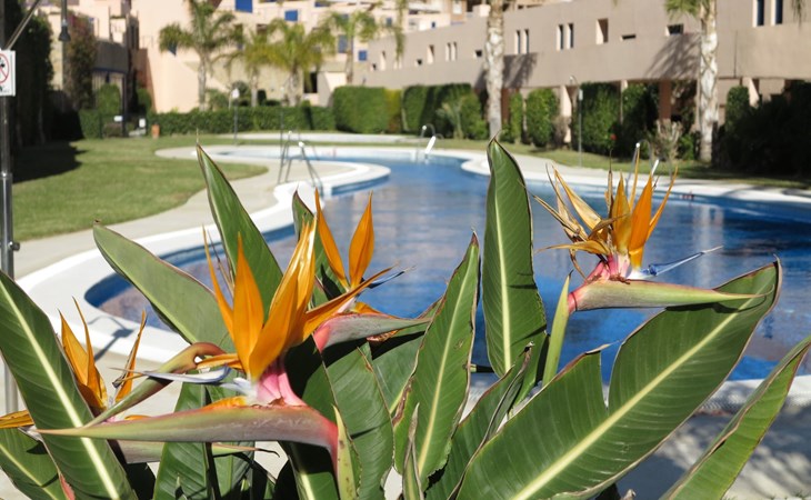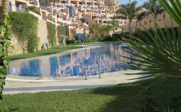 Het ruime terras is ingericht in 3 gedeelten: zithoek, eethoek en ligzetels. Het volledige terras beschikt over 2 grote zonneluifels die zorgen voor voldoende schaduw. De Penthouse is gelegen in een gesloten residentie temidden van exotische tuinen met buitenzwembad, kinderzwembad, verwarmd overdekt zwembad en jacuzzi, volledig beveiligd met camerabewaking.
