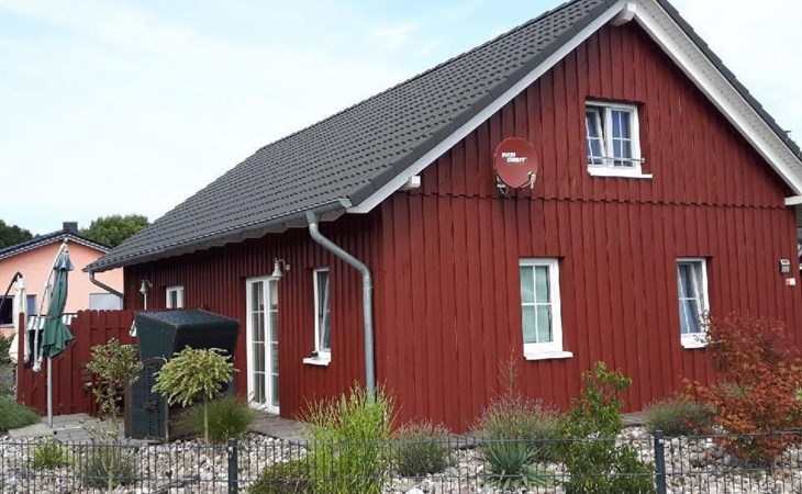 Cosy Swedish cottage (holiday home 23a) in a good location, just a few minutes' walk to the beach, close to the Hanseatic town of Wismar.The holiday home Schwedenhaus Zierow, newly built in Swedish country house style in 2012, consists of two residential units (house 23a and house 23b) and offers you soothing cosiness for a relaxing and restful holiday with your family or friends.House 23a (semi-detached house) has a living space of approx. 54 square metres and is newly and modernly furnished. The original Swedish red (faluröd) wooden façade, the white doors and lattice windows and the lovingly landscaped outdoor area make the holiday home friendly and inviting. On the ground floor there is an open-plan living and dining room with kitchen, bedroom (two single beds), hallway and bathroom, upstairs there is a large sleeping gallery (double bed) and reading corner. A flat-screen TV with satellite reception is available in the living area. The bathroom has a large floor-to-ceiling/barrier-free shower. The terraces (equipped with garden furniture) and walkways are made of wood, the majority of the fully fenced property is laid with decorative stones and discreetly planted. Thanks to the south-west orientation of the house, you can enjoy the sun on the terrace well into the evening hours. There is also a garden shed (lockable), a garden barbecue and a private car park.You will find the Schwedenhaus Zierow in the holiday home settlement "Ostseeferiendorf Zierow", in a scenic and quiet location. The Baltic Sea coast of the Bay of Wismar and the beach, which is supervised by lifeguards in the summer season, are only 500 metres away. Here you have many opportunities to organise your leisure time with games, fun or sport. A children's playground, mini golf and a small café are located directly on the beach, and from the coast in Zierow you have a good view of the island of Poel, which you can reach quickly by boat (6 km) or by land (17 km). On the northern part of the island, the open sea and beautiful beaches await you, e.g. at Schwarzer Busch, Timmendorfer Strand or Gollwitz.Zierow lies at the gates of the UNESCO World Heritage and Hanseatic city of Wismar (8 km) and between the Hanseatic cities of Lübeck (50 km to the west) and Rostock (65 km to the east). The state capital Schwerin with its picturesque park and lake landscape and the beautiful Schwerin Castle is only 35 km from Zierow, and the Baltic seaside resorts of Boltenhagen (17 km), Rerik (35 km), Kühlungsborn/Heiligendamm (45 km) and Warnemünde (65 km) are also within easy reach and invite you to take a stroll or a day trip. you will find plenty of shopping facilities in the Gägelow shopping centre (2.5 km) or in Wismar-Wendorf (3 km). For small purchases (e.g. fresh bread rolls) you can go to the nearby village shop in Zierow, which has a few small restaurants where you can eat well and inexpensively. The nearest marinas are in Wendorf (3 km), Hohen Wieschendorf (3 km), Wismar (7 km) and on the Weiße Wiek / Boltenhagen (15 km).