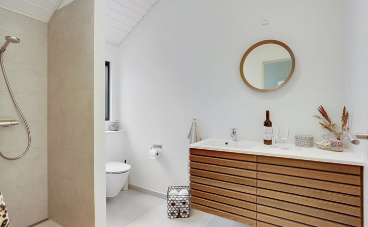 Eengezinswoning, bouwjaar 2019. 400 m van zee. Voor alleengebruik: wild terrein 1.285 m2. Buitendouche, terras (35 m2). In het huis: wasmachine, droger. Parkeerplaats bij het huis. Levensmiddelenwinkel 2.5 km. De eigenaar accepteert geen jeugdgroepen.