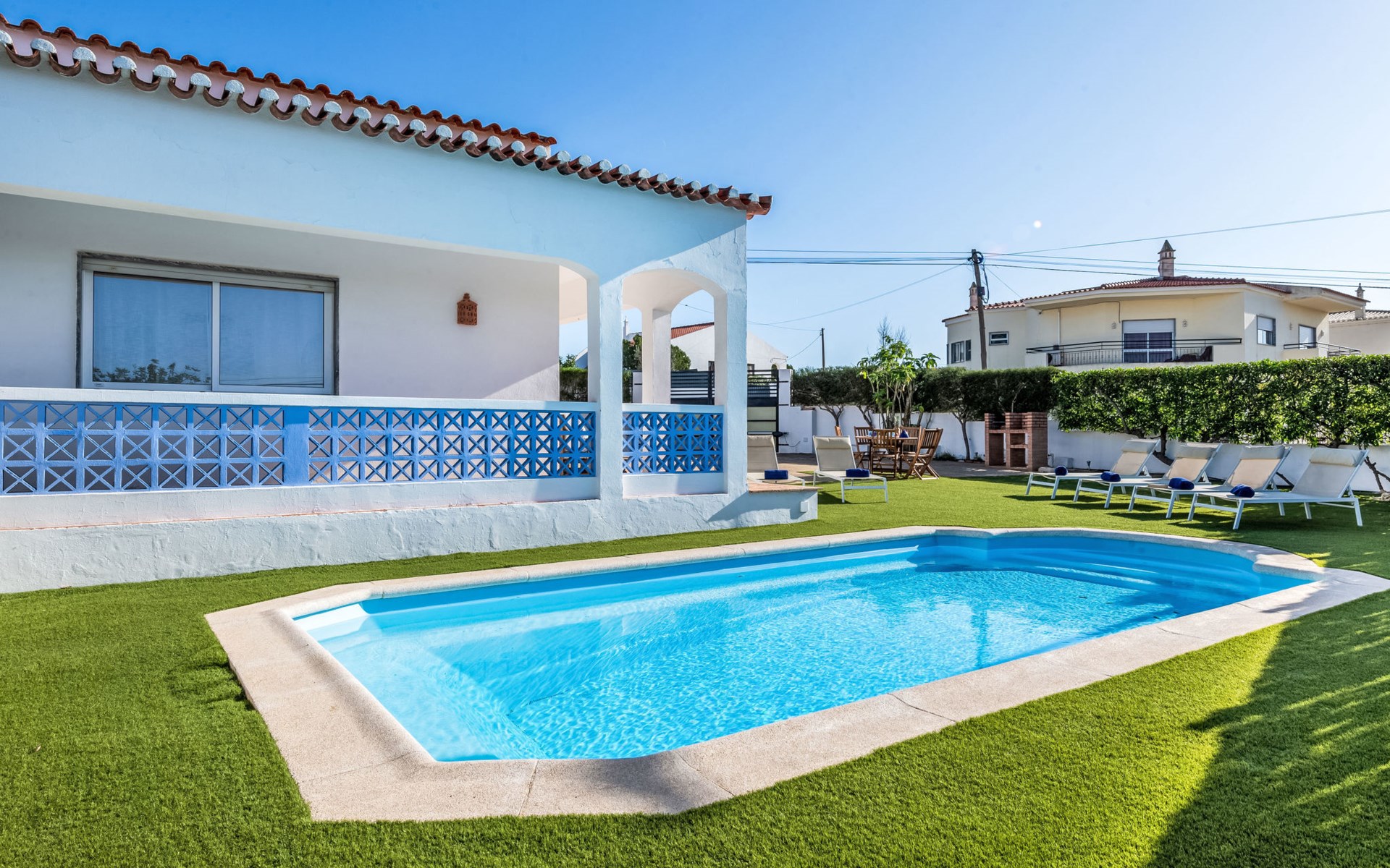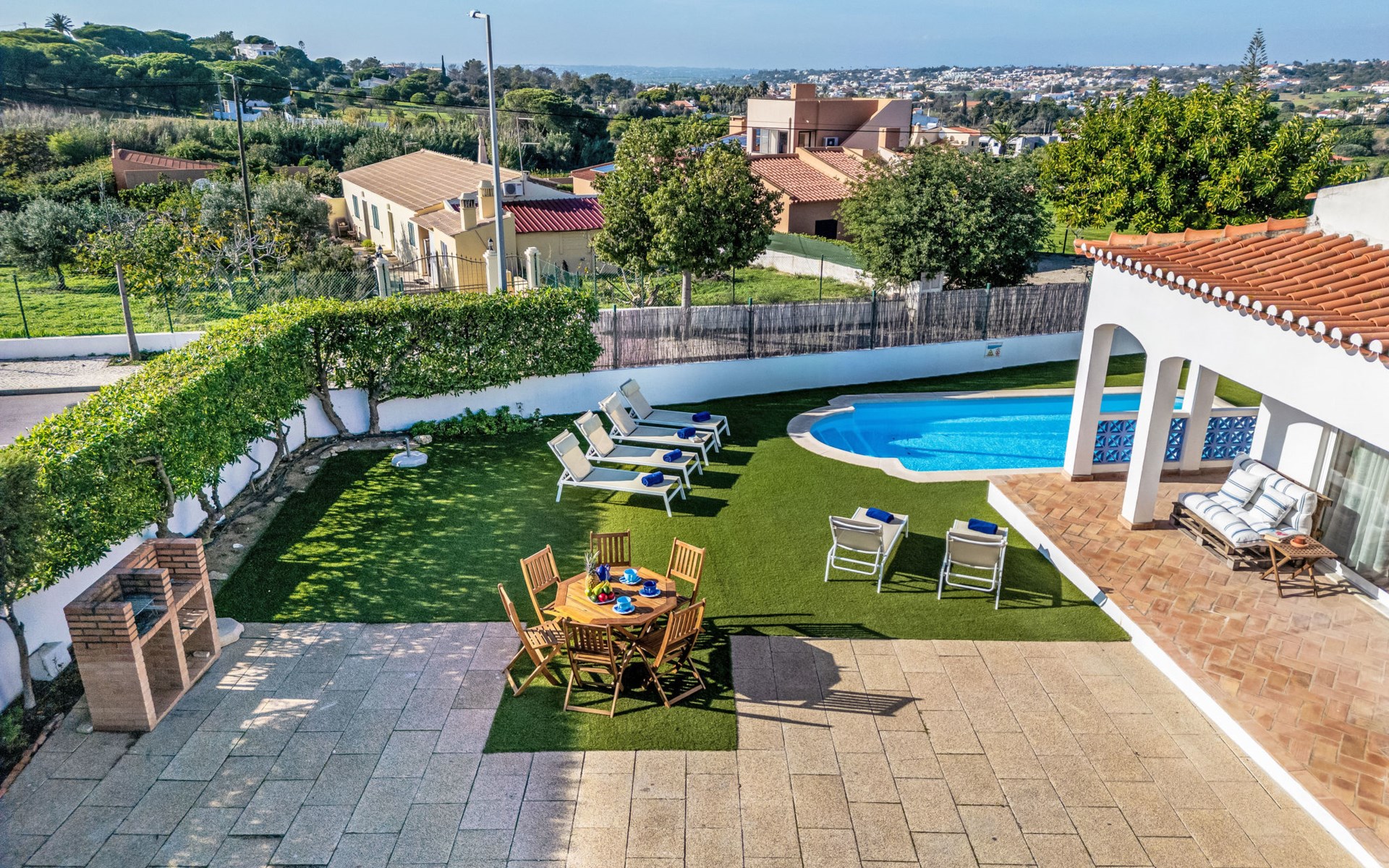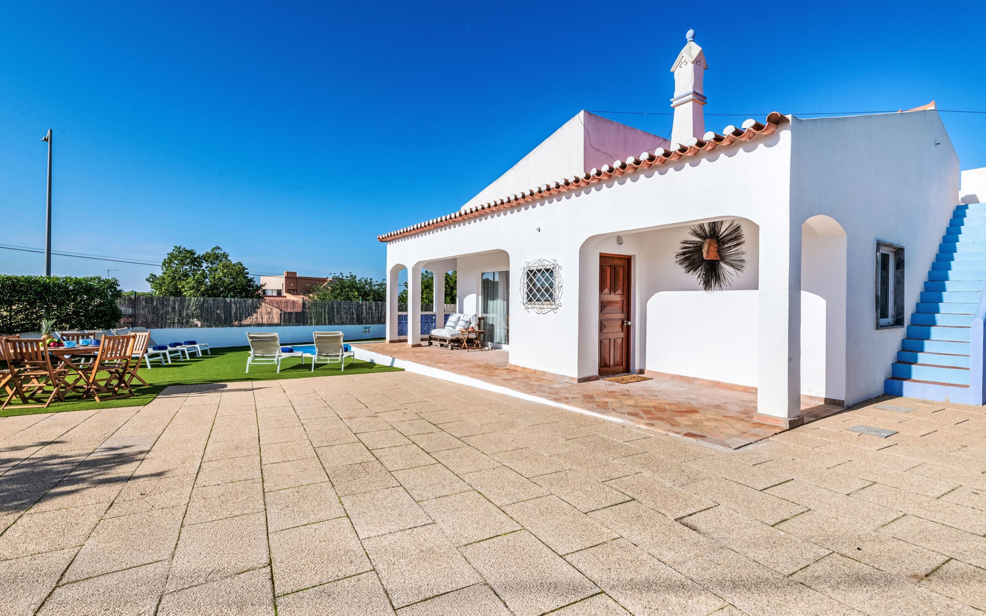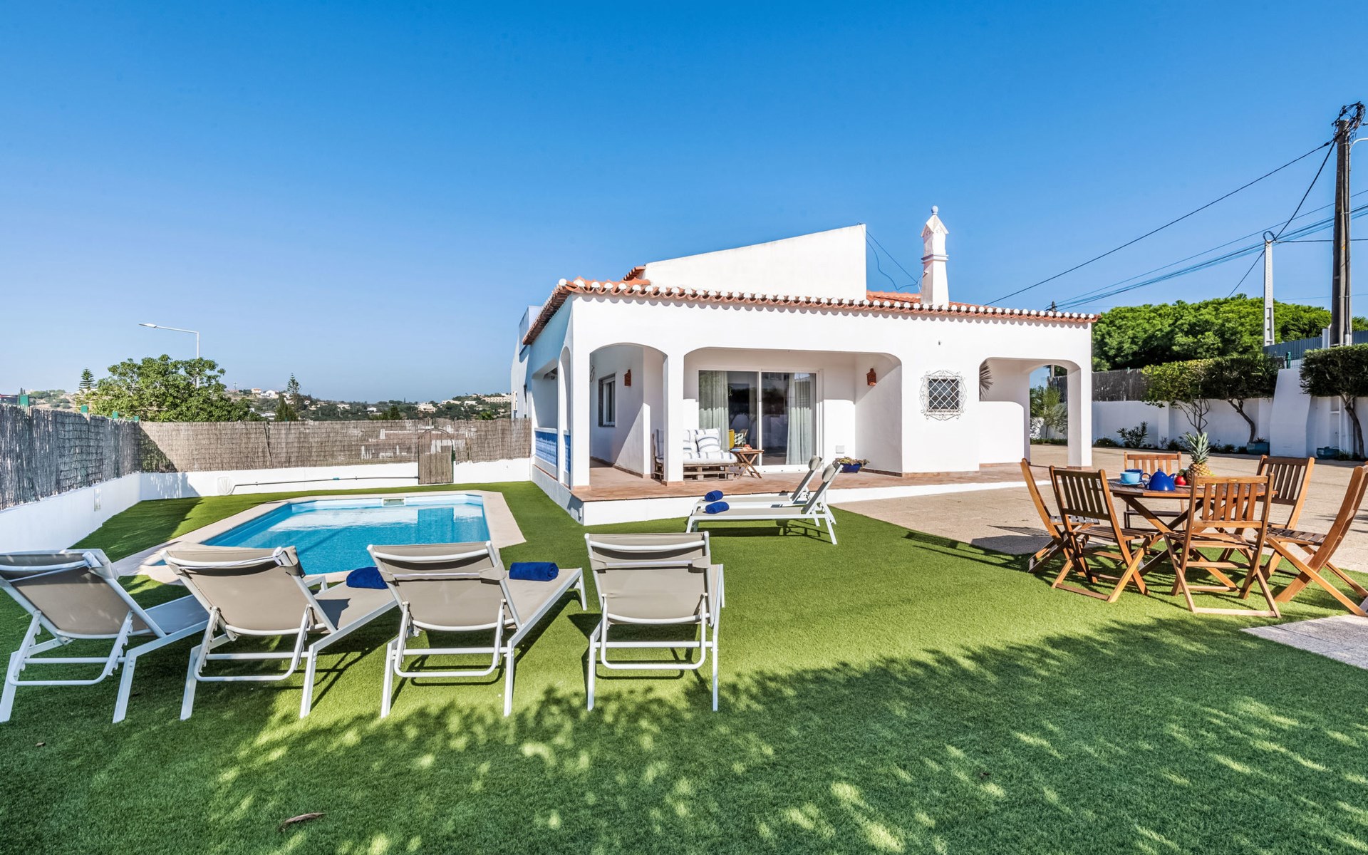 Zeer gezellig huis "Antonica", vrijstaand, gerenoveerd in 2023. Buiten de plaats, 6.5 km van het centrum van Albufeira, villa wijk, 1.6 km van zee. Voor alleengebruik: openluchtzwembad (4 x 8 m, 85 - 185 cm diepte, seizoensgebonden beschikbaarheid: 01.Jan. - 31.Dec.). Terras, tuinmeubelen, barbecue. In het huis: Internet (WiFi), wasmachine. Parkeerplaats bij het huis. Levensmiddelenwinkel 500 m, supermarkt 900 m, winkelcentrum 8.4 km, restaurant 110 m, bar 350 m, bakkerij 900 m, café 350 m, zandstrand "Praia do Evaristo" 1.6 km. Jachthaven 3 km, golfterrein (18 holes) 4.1 km, surfschool 2.1 km, tennis 10.1 km, midgetgolf 7.1 km, manege 4.1 km, kinderspeelplaats 5 km. Attracties in de buurt: Zoomarine 7.5 km, Aqualand 10.1 km, Krazy World 14.1 km, Museu Municipal de Arqueologia 5.1 km, Torre do Relógio de Albufeira 5.1 km, Miradouro do Pau da Bandeira 3.1 km. Wandelgebied Lagoa dos Salgados 12.3 km. Auto noodzakelijk. Laden en lossen van de baggage is mogelijk bij het huis.
