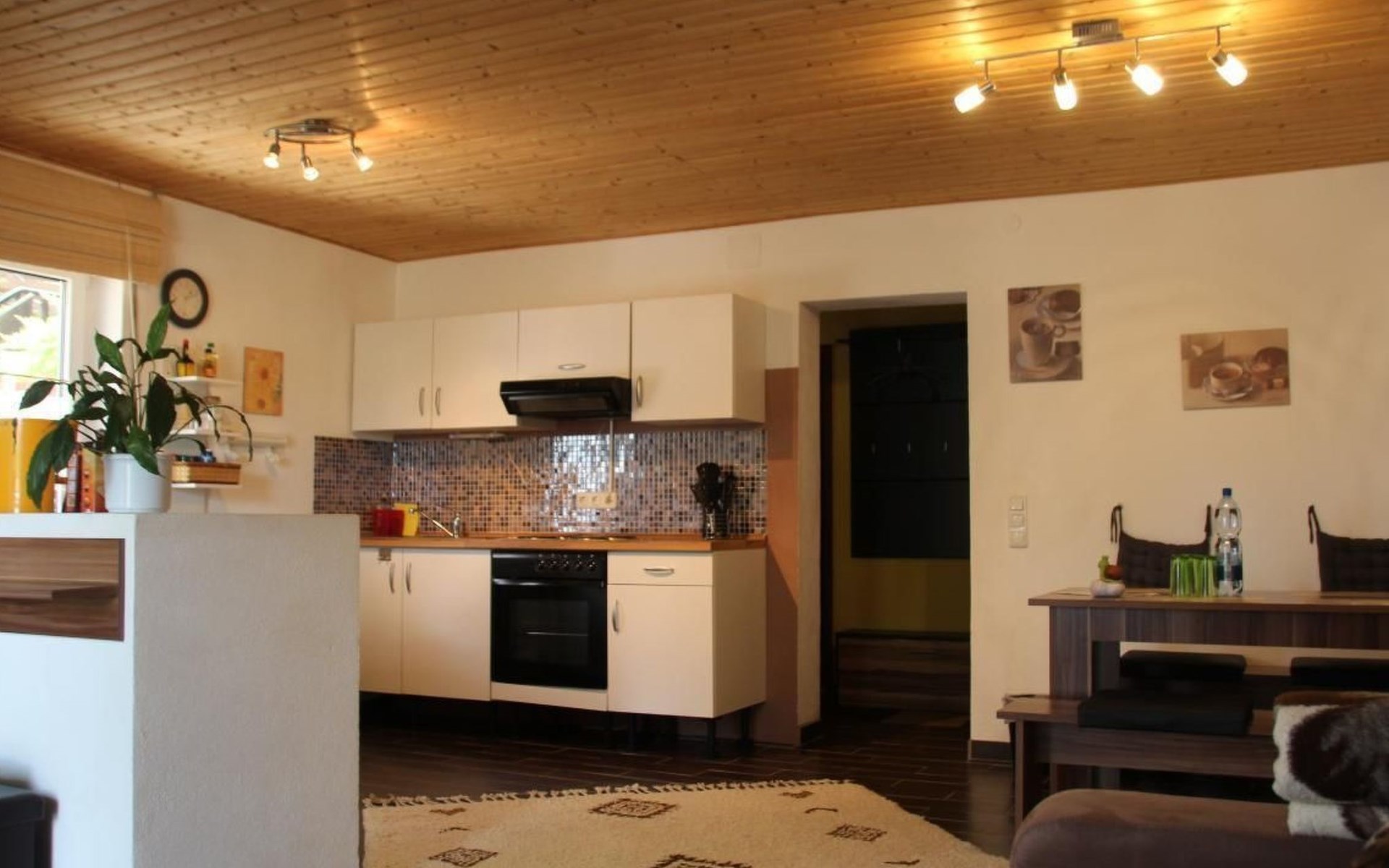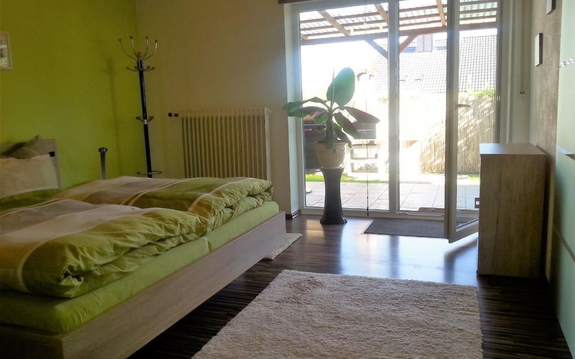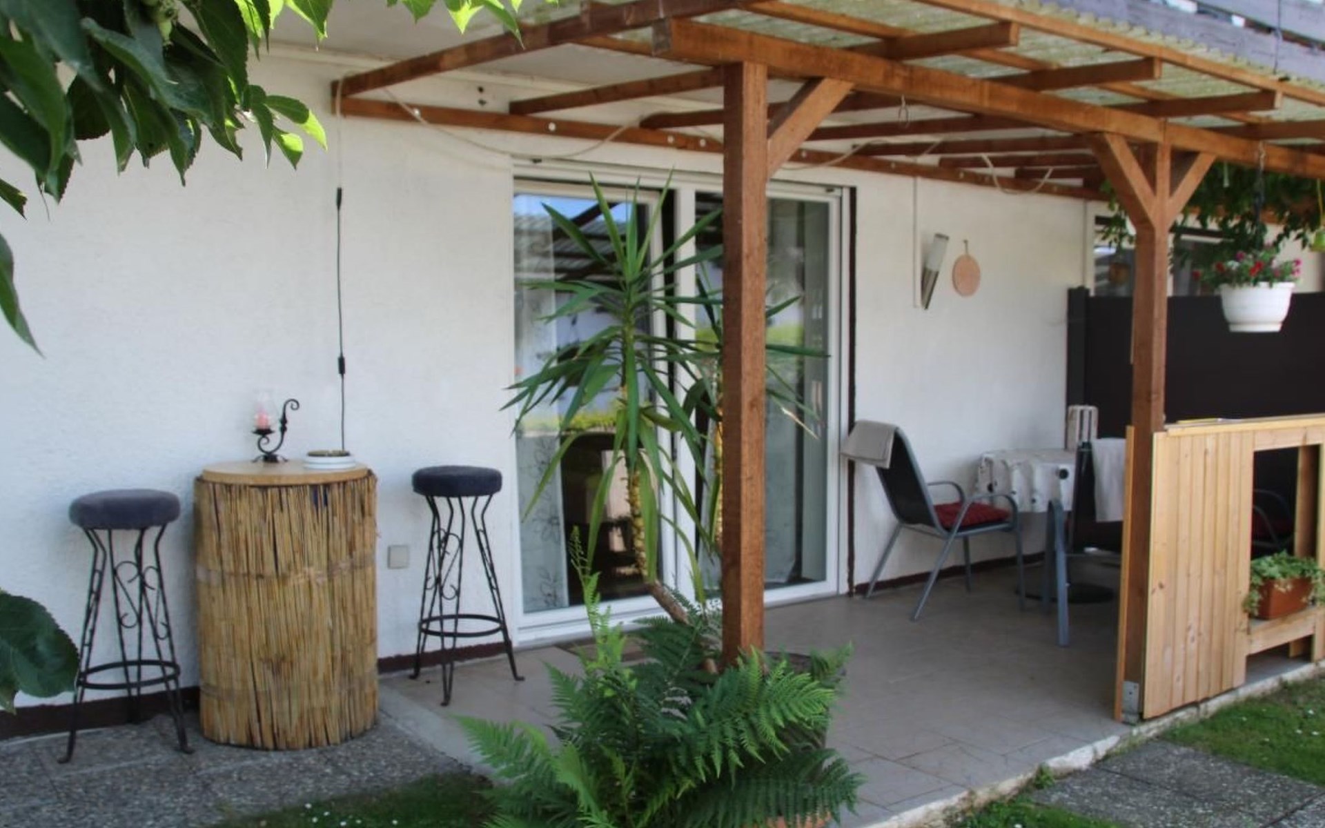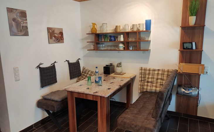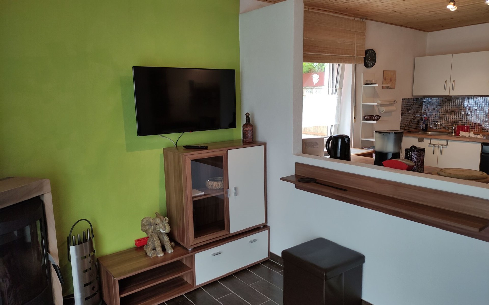 The holiday flat Ria is located near - approx. 10 km - the world heritage city of Bamberg.enjoy the peace and quiet and the unique landscape in the beautiful Main valley.ideal starting point for cycling and hiking tours, e.g. to Franconian Switzerland.a wide range of up-to-date information material is available for you.in warm weather, the flat also offers a wonderful, cool climate! The accommodation is also very central for sightseeing. Bamberg is also easily accessible by bus, so there is no need to search for a parking space.The municipality of Viereth-Trunstadt (approx. 3700 inhabitants) is situated between the River Main and the foothills of the Steigerwald. - From here you have direct "access" to the Main cycle path- You have a direct entry and exit point in Viereth if you are travelling on the Main river- You have the natural recreation areas of the Steigerwald, the Hassberge and Franconian Switzerland in the immediate vicinity- You have the ideal starting point for visiting cities such as the World Heritage city of Bamberg, Schweinfurt, Coburg and Würzburg- You have the foothills of the Franconian wine-growing region in central proximity- We have a wide range of restaurants and breweries.The apartment is approx. 70 sq.m. Through a small hallway you enter the approx. 40 sq.m. large living-dining area with open kitchen, a pull-out sofa bed - 1.40 x 2 m - TV-Flat and a Swedish stove for romantic evenings for two, the patio door leads into the garden with barbecue area and cosy sitting area as well as a separate smoking area.The bedroom has a double bed - 1.80 x 2 m - and a large wardrobe.there you also have access to the garden.you share this with a second apartment.short descriptionOther : Non-smoking houseShort description 1Number of kitchens : 1Living room 1Other living room equipment : open kitchen, dining area and living room. A pull-out sofa bed and coffee table, Swedish stove, large TV flat on a small sideboard. Dining area, large table, seating for 4 people.Bedroom 1Other bedroom equipment : large wardrobe, 2 bedside cabinets, small chest of drawers, clothes rack, 1 reading chairKitchen 1Other kitchen equipment : fridge with freezer compartment, electric cooker, extractor bonnet, microwave, kettle, egg cooker, dishwasher, coffee machine, scales, pots, pans, crockery, cutlery etc. sufficient for 4 people,Garden and outdoor facilitiesGarden equipment : garden furniture available, barbecueGarden and outdoor facilitiesThe property is fenced. The terrace is equipped with garden furniture and a barbecue. Charcoal and barbecue utensils are available. The Mediterranean flair of the garden will help you to spend relaxing hours.Parking on the street, in front of the house, lockable storage for bicycles and bikes available, e-bikers can recharge their batteries free of charge.SurroundingsSports facilities in the area: basketball, golf course, canoeing, climbing, mountain biking, cycling toursSurroundings 1Excursion possibilities: Franconian Switzerland, the Steigerwald and the Hassberge are right on the doorstep. Here you can relax and/or do sports, and a wide range of information material is available for you.Location description : Viereth is nestled in the Main valley. With its approx. 3700 inhabitants it is a tranquil village. With a direct motorway connection - A 70 - you can reach the larger cities of Franconia in no time. The Maintal cycle path leads directly through Viereth and along the Main to Bamberg. In the immediate vicinity you can enjoy original Franconian food, wine or beer. An Italian speciality restaurant is within walking distance. A butcher's shop with a separate snack bar, a bakery and 1 cash machine are part of the local scene. A shopping centre is 1 km away and can be reached by car in approx. 3 minutes.
