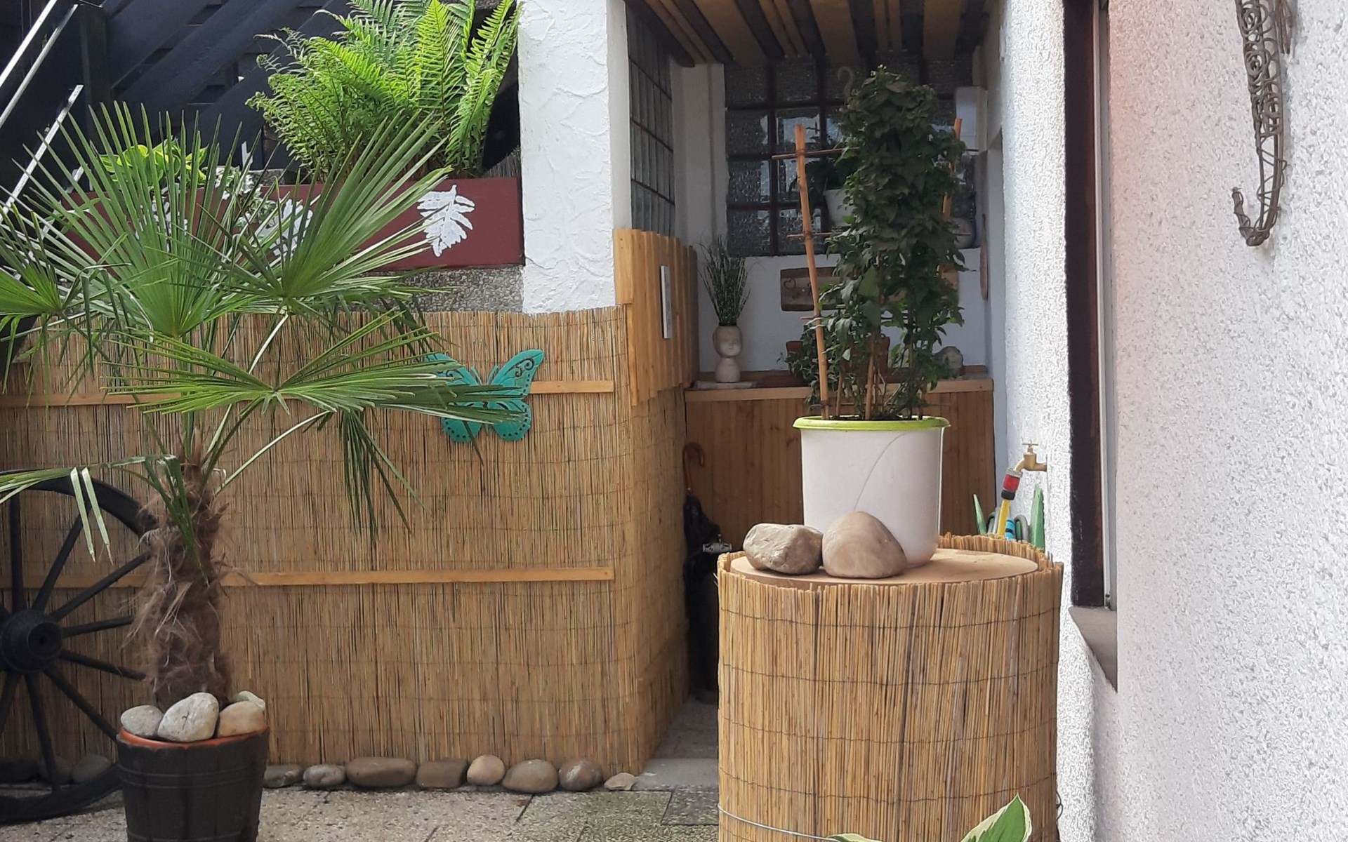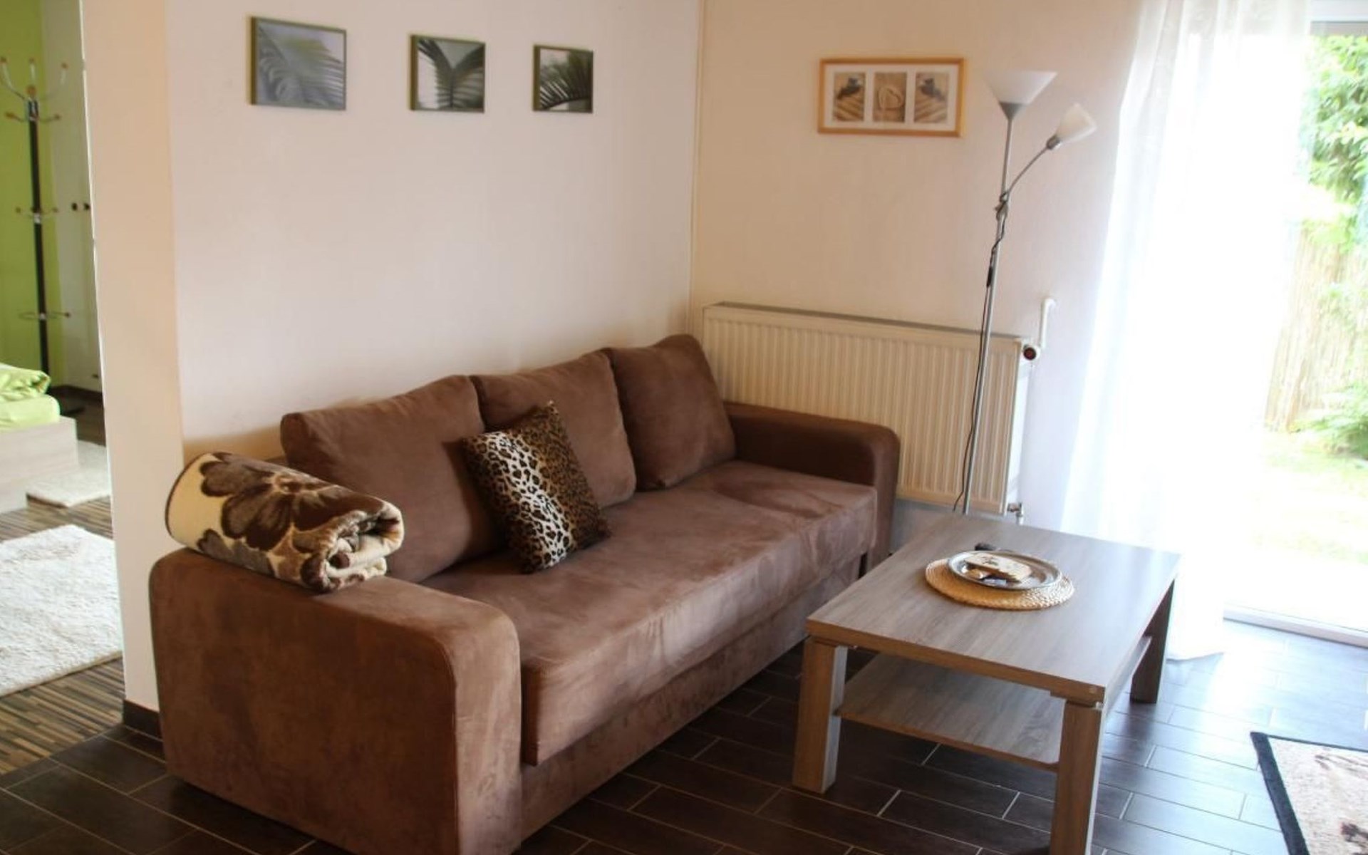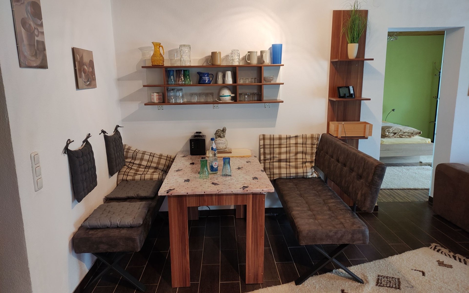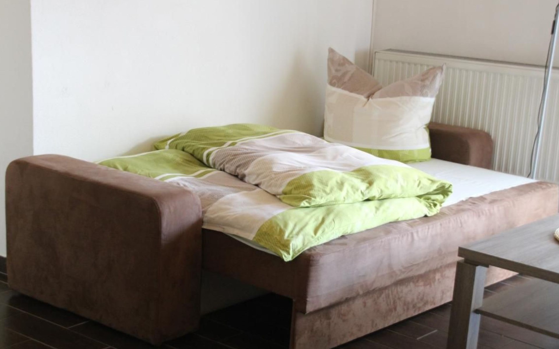 The holiday flat Ria is located near - approx. 10 km - the world heritage city of Bamberg.enjoy the peace and quiet and the unique landscape in the beautiful Main valley.ideal starting point for cycling and hiking tours, e.g. to Franconian Switzerland.a wide range of up-to-date information material is available for you.in warm weather, the flat also offers a wonderful, cool climate! The accommodation is also very central for sightseeing. Bamberg is also easily accessible by bus, so there is no need to search for a parking space.The municipality of Viereth-Trunstadt (approx. 3700 inhabitants) is situated between the River Main and the foothills of the Steigerwald. - From here you have direct "access" to the Main cycle path- You have a direct entry and exit point in Viereth if you are travelling on the Main river- You have the natural recreation areas of the Steigerwald, the Hassberge and Franconian Switzerland in the immediate vicinity- You have the ideal starting point for visiting cities such as the World Heritage city of Bamberg, Schweinfurt, Coburg and Würzburg- You have the foothills of the Franconian wine-growing region in central proximity- We have a wide range of restaurants and breweries.The apartment is approx. 70 sq.m. Through a small hallway you enter the approx. 40 sq.m. large living-dining area with open kitchen, a pull-out sofa bed - 1.40 x 2 m - TV-Flat and a Swedish stove for romantic evenings for two, the patio door leads into the garden with barbecue area and cosy sitting area as well as a separate smoking area.The bedroom has a double bed - 1.80 x 2 m - and a large wardrobe.there you also have access to the garden.you share this with a second apartment.short descriptionOther : Non-smoking houseShort description 1Number of kitchens : 1Living room 1Other living room equipment : open kitchen, dining area and living room. A pull-out sofa bed and coffee table, Swedish stove, large TV flat on a small sideboard. Dining area, large table, seating for 4 people.Bedroom 1Other bedroom equipment : large wardrobe, 2 bedside cabinets, small chest of drawers, clothes rack, 1 reading chairKitchen 1Other kitchen equipment : fridge with freezer compartment, electric cooker, extractor bonnet, microwave, kettle, egg cooker, dishwasher, coffee machine, scales, pots, pans, crockery, cutlery etc. sufficient for 4 people,Garden and outdoor facilitiesGarden equipment : garden furniture available, barbecueGarden and outdoor facilitiesThe property is fenced. The terrace is equipped with garden furniture and a barbecue. Charcoal and barbecue utensils are available. The Mediterranean flair of the garden will help you to spend relaxing hours.Parking on the street, in front of the house, lockable storage for bicycles and bikes available, e-bikers can recharge their batteries free of charge.SurroundingsSports facilities in the area: basketball, golf course, canoeing, climbing, mountain biking, cycling toursSurroundings 1Excursion possibilities: Franconian Switzerland, the Steigerwald and the Hassberge are right on the doorstep. Here you can relax and/or do sports, and a wide range of information material is available for you.Location description : Viereth is nestled in the Main valley. With its approx. 3700 inhabitants it is a tranquil village. With a direct motorway connection - A 70 - you can reach the larger cities of Franconia in no time. The Maintal cycle path leads directly through Viereth and along the Main to Bamberg. In the immediate vicinity you can enjoy original Franconian food, wine or beer. An Italian speciality restaurant is within walking distance. A butcher's shop with a separate snack bar, a bakery and 1 cash machine are part of the local scene. A shopping centre is 1 km away and can be reached by car in approx. 3 minutes.