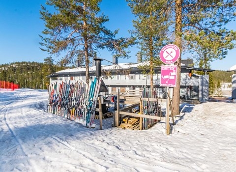 Round logs cabin, built 2011, livingroom/kitchen, sleeping loft with 3 beds, bathroom with shower cubicle, sauna with wood heated stove, glass terrace. Access to sauna through terrace. Stepladders to loft, no sight from the loft down.