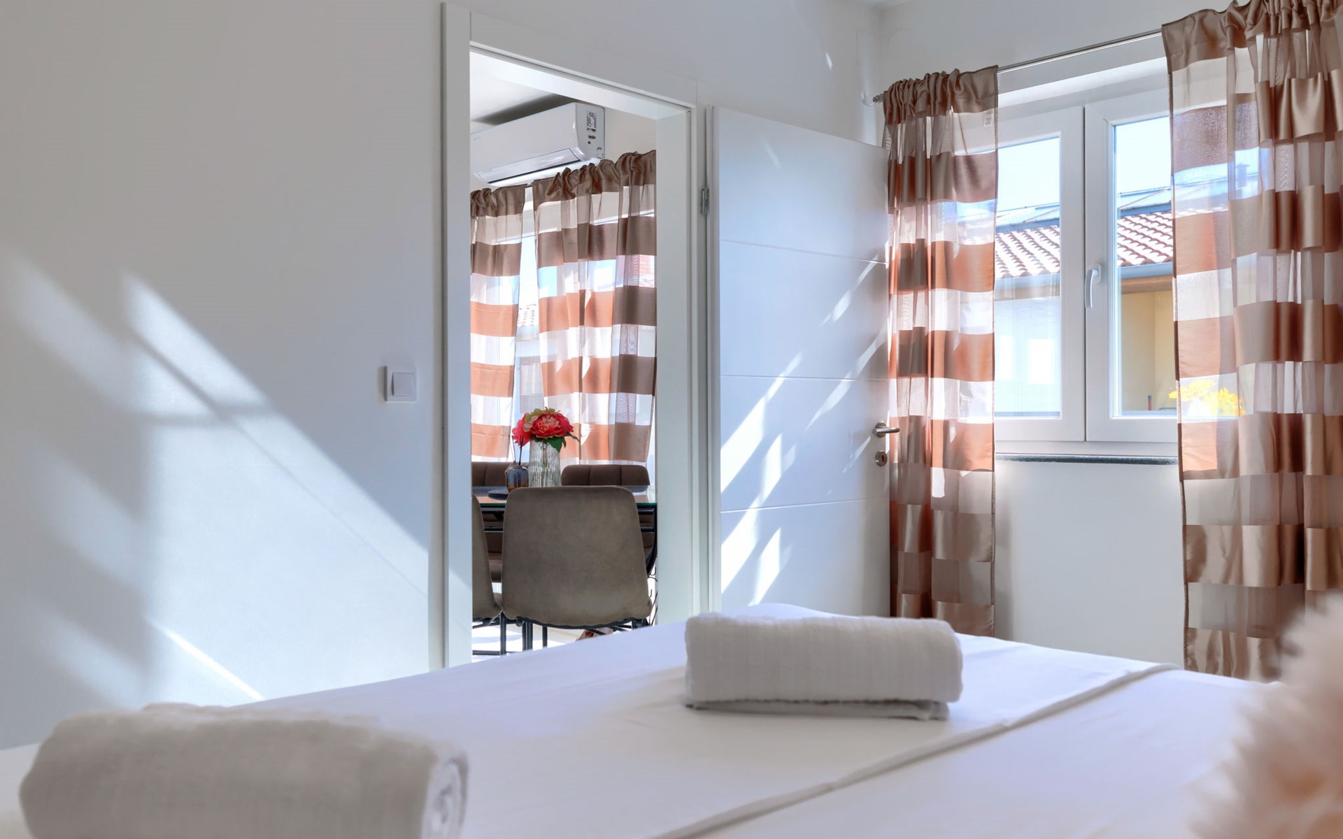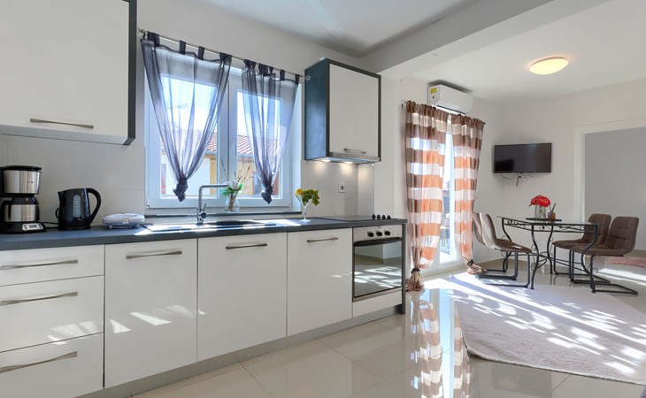 Eenvoudig appartementencomplex "Villa Amra". In de wijk Finida, 1.2 km van het centrum van Poreč, 800 m van zee, van het strand. Voor medegebruik: barbecue. In het huis: internetaansluiting. Parkeerplaats bij het huis op het terrein. Supermarkt 350 m, restaurant 500 m, bushalte 1.1 km, kiezelstrand, rotsstrand 800 m. Jachthaven 1 km, zeilschool 1 km, tennis 1 km, wandelroutes 1 km vanaf het huis, fietspad 1 km, kinderspeelplaats 300 m. Attracties in de buurt: Aquapark 3 km.