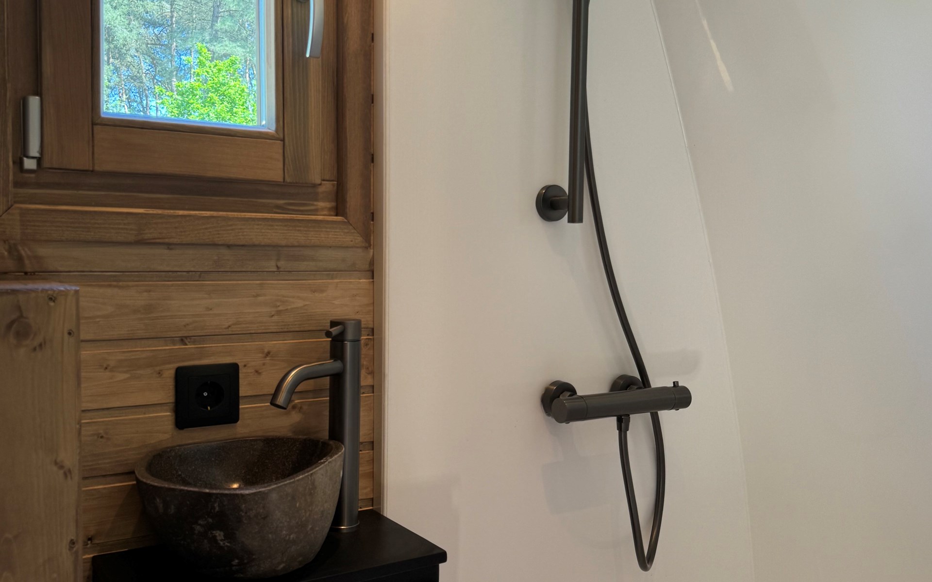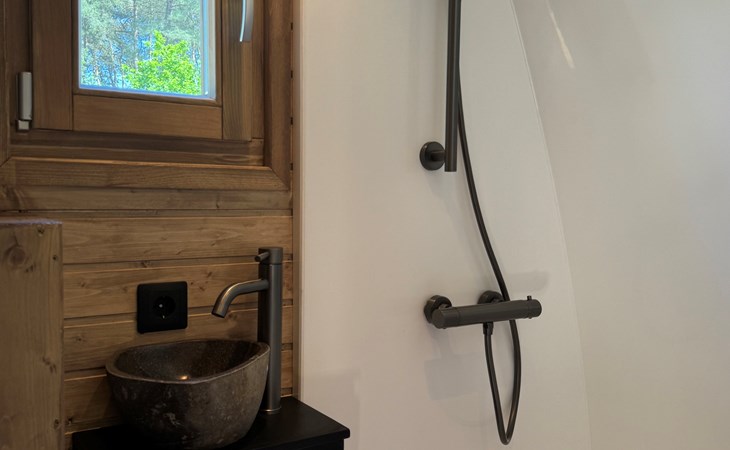 Geniet van de stilte en het uitzicht op het omringende groen, terwijl je met een goed boek of een kop koffie neerstrijkt op je eigen terras. Op dit terras kun je bovendien bakken op je eigen Plancha BBQ, wat buiten genieten extra bijzonder maakt. Deze cabin is perfect voor wie wil onthaasten, ontsnappen aan de drukte en zich wil onderdompelen in de eenvoud en schoonheid van het buitenleven. Hier komen comfort en natuur moeiteloos samen.