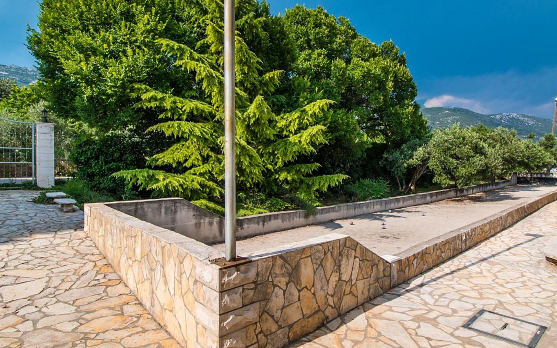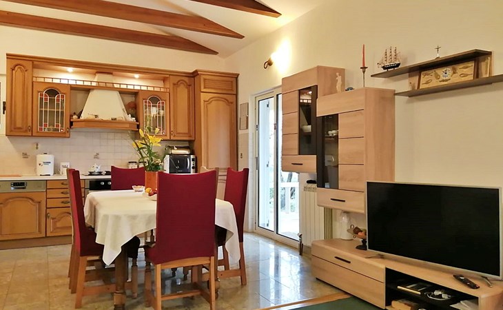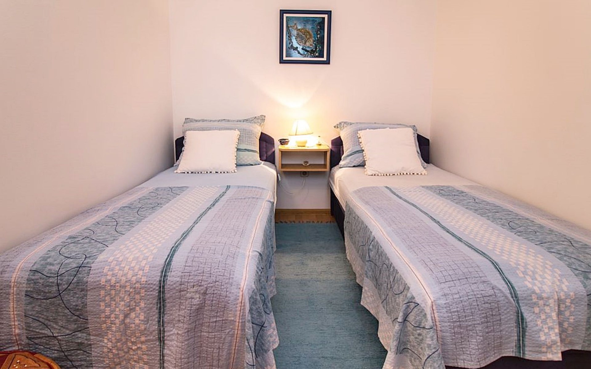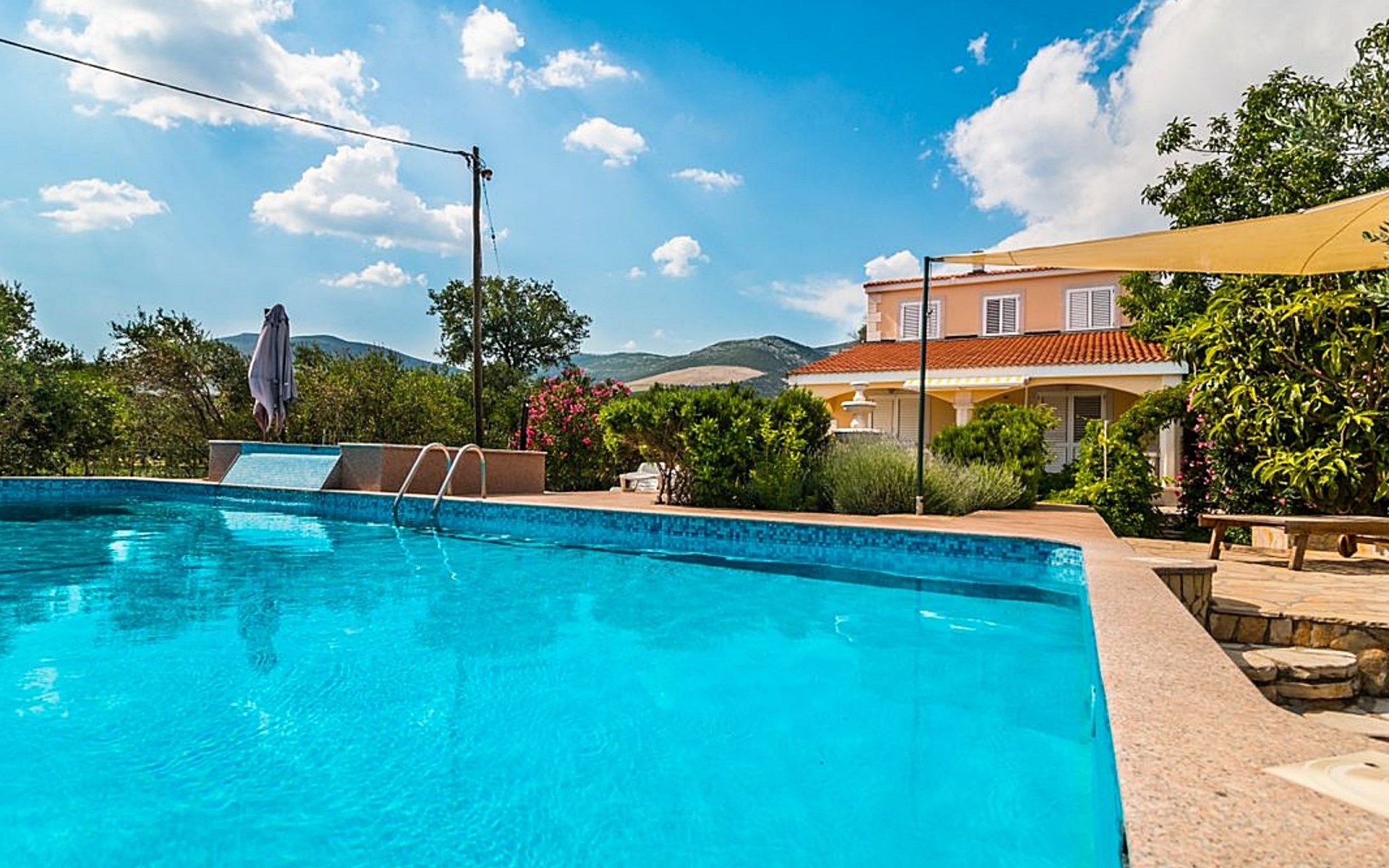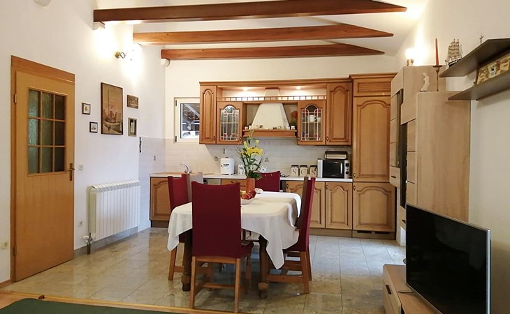 Huis "Marija", omgeven door velden. Rustige, zonnige ligging, 3.6 km van zee, 3.6 km van het strand. Voor alleengebruik: terrein 4.000 m2 (omheind), openluchtzwembad hoekig, verwarmd (55 m2, seizoensgebonden beschikbaarheid: 01.Mei. - 15.Okt.). Buitendouche, onderhoud zwembad door de eigenaar/tuinman. In het huis: internetaansluiting, sauna, centrale verwarming, wasmachine. Parkeerplaats bij het huis op het terrein. Supermarkt 1.6 km, bushalte 1.2 km, treinstation 2.3 km, kiezelstrand 3.6 km. Vliegveld 6 km van het huis.
