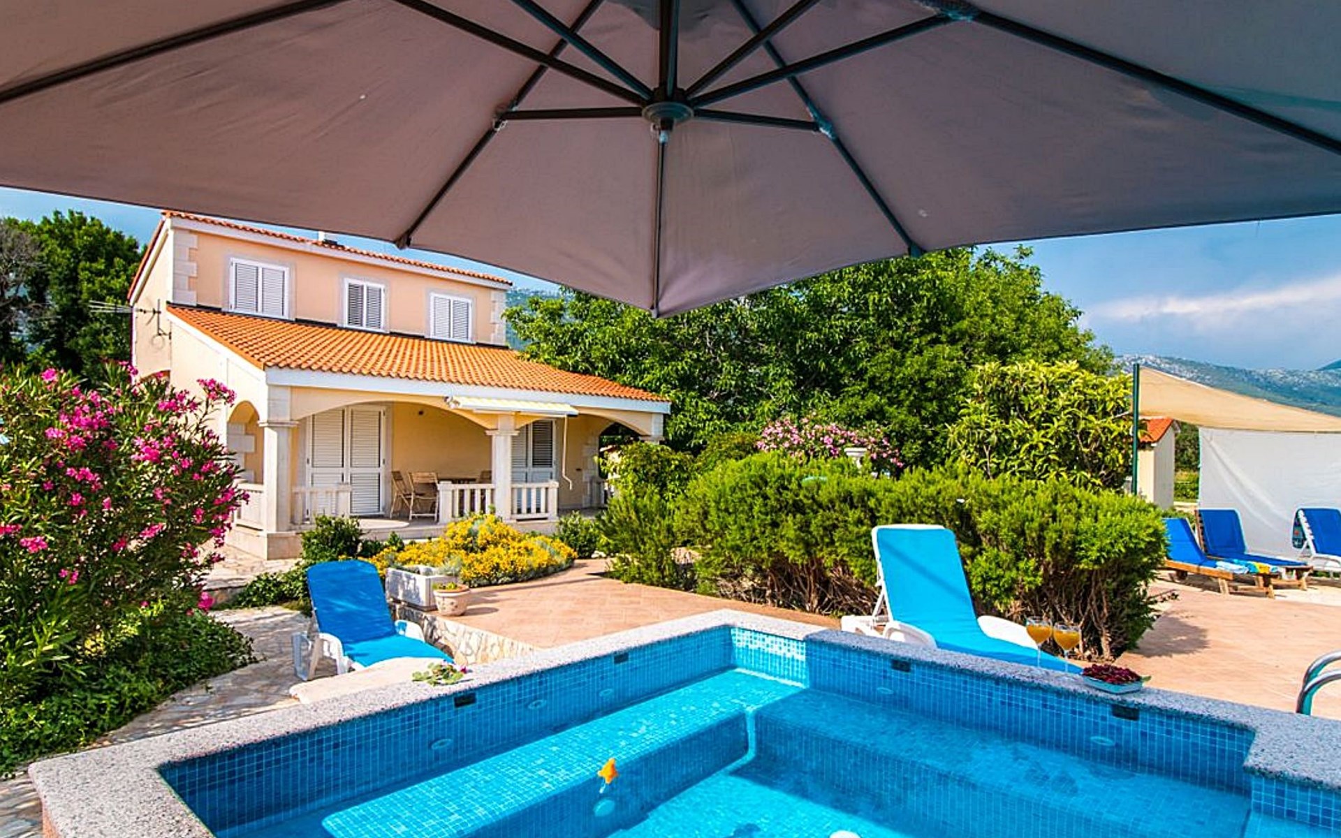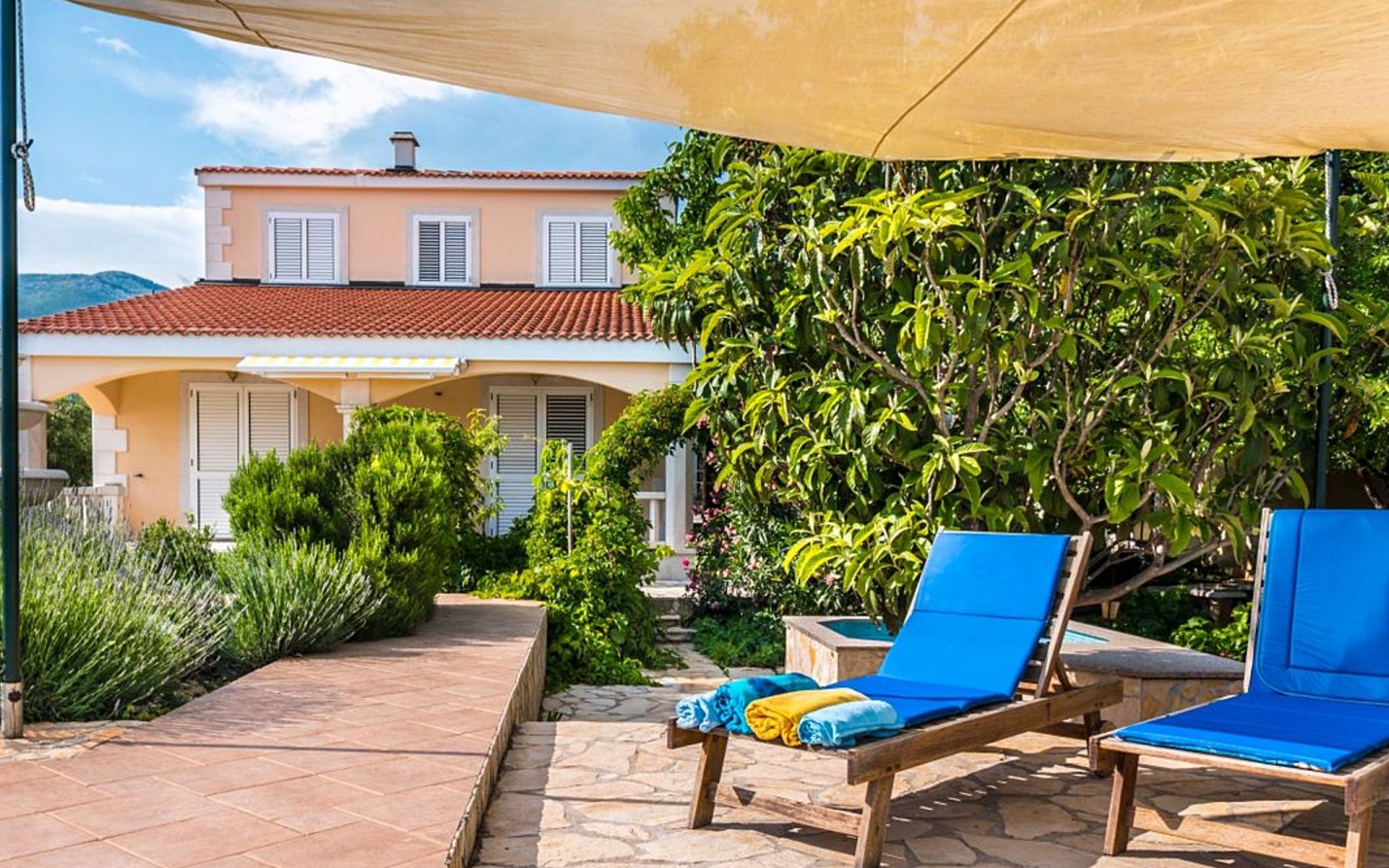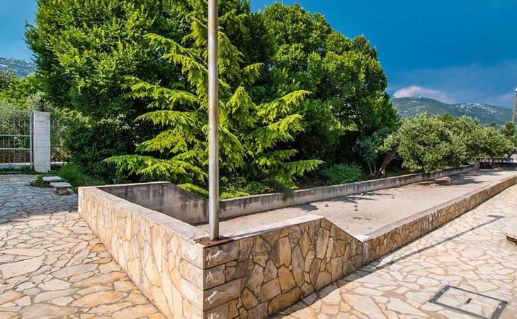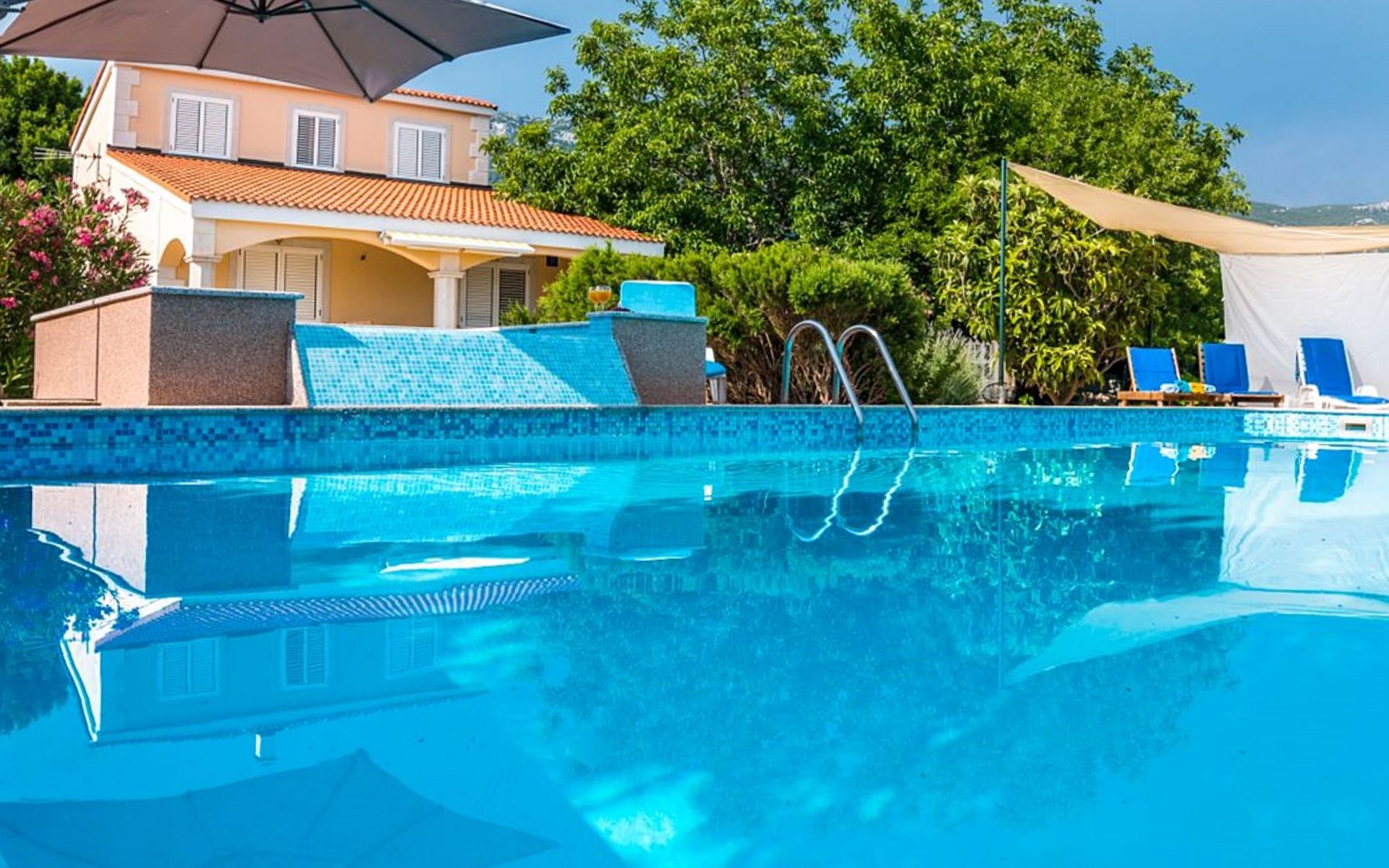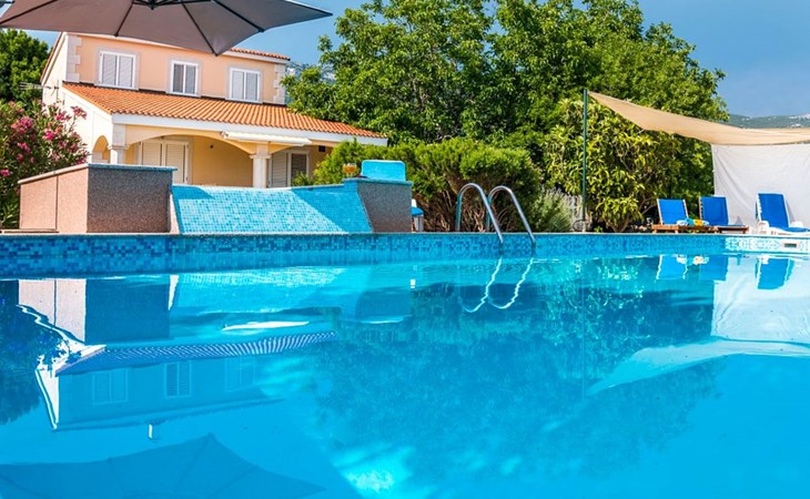 Huis "Marija", omgeven door velden. Rustige, zonnige ligging, 3.6 km van zee, 3.6 km van het strand. Voor alleengebruik: terrein 4.000 m2 (omheind), openluchtzwembad hoekig, verwarmd (55 m2, seizoensgebonden beschikbaarheid: 01.Mei. - 15.Okt.). Buitendouche, onderhoud zwembad door de eigenaar/tuinman. In het huis: internetaansluiting, sauna, centrale verwarming, wasmachine. Parkeerplaats bij het huis op het terrein. Supermarkt 1.6 km, bushalte 1.2 km, treinstation 2.3 km, kiezelstrand 3.6 km. Vliegveld 6 km van het huis.