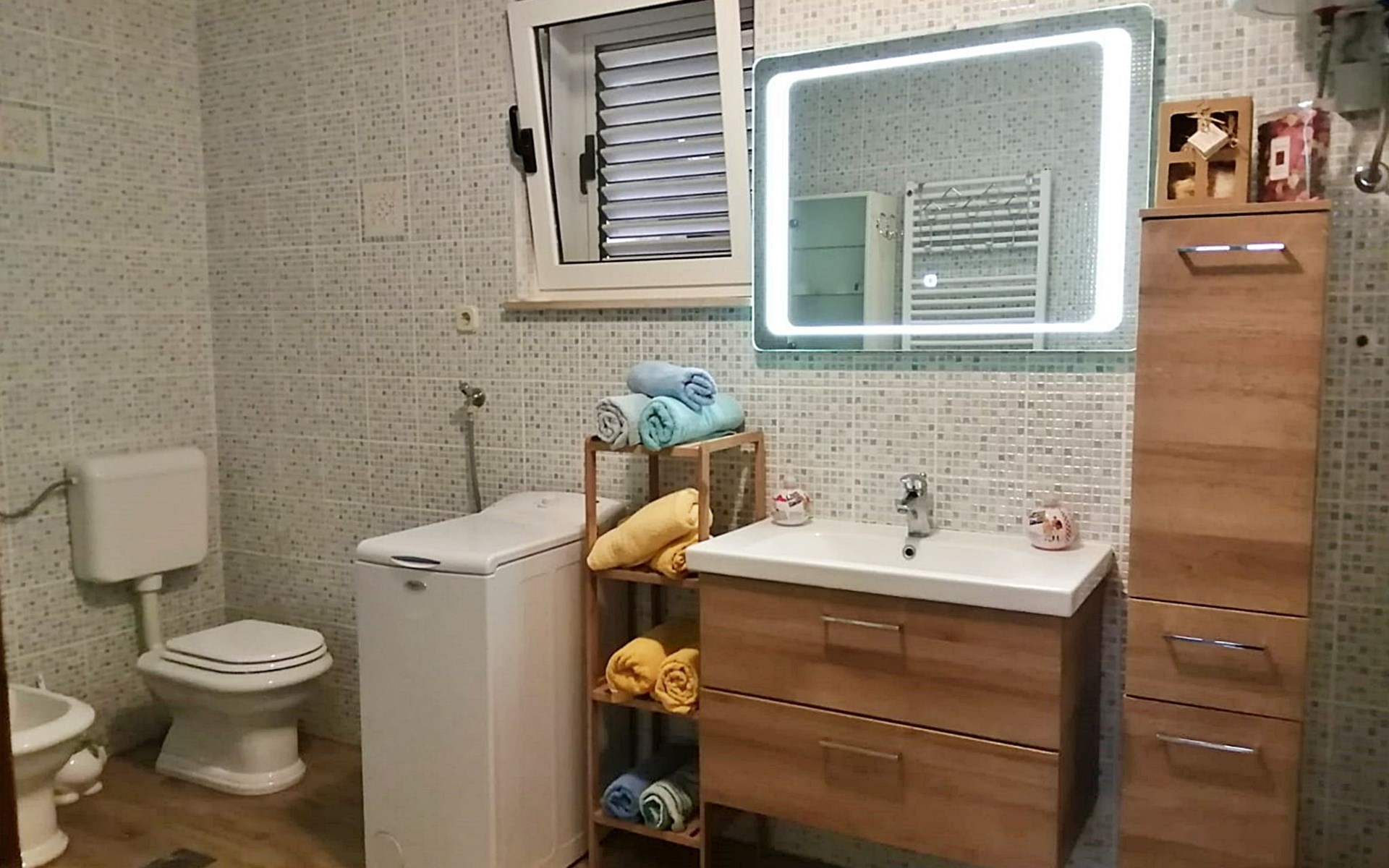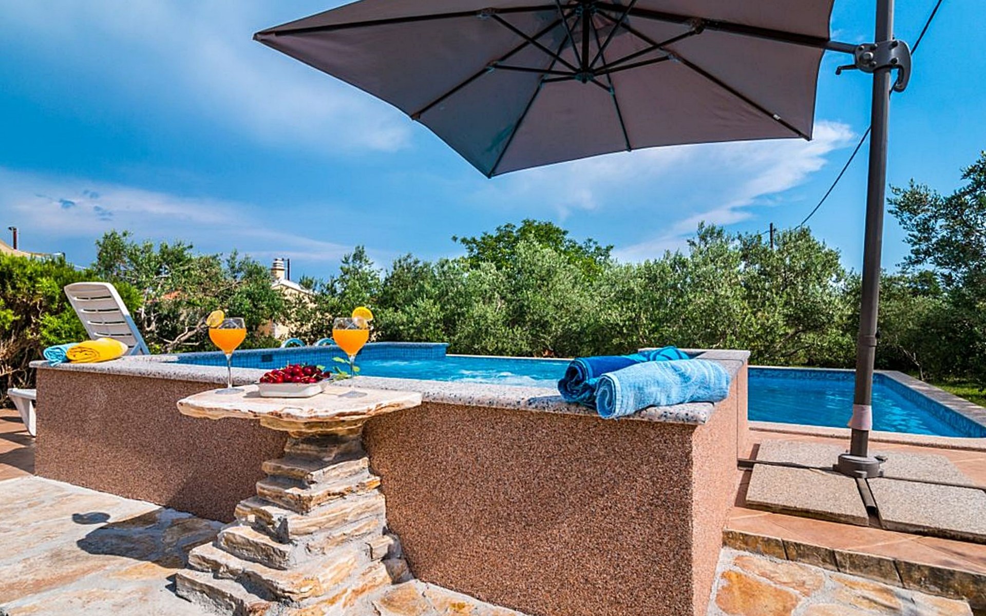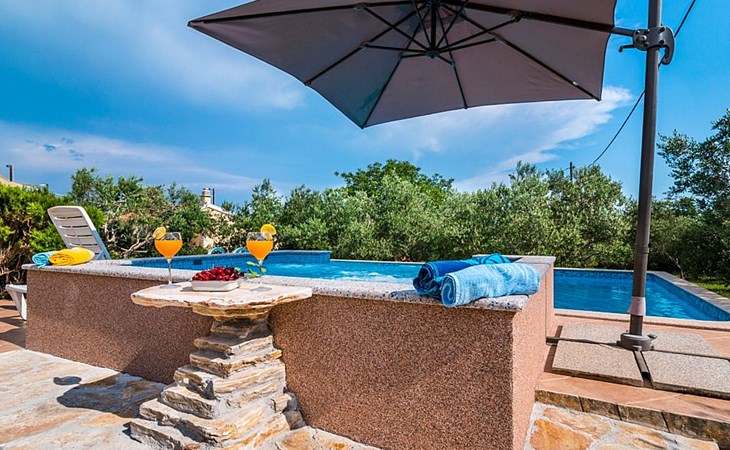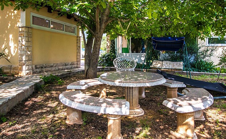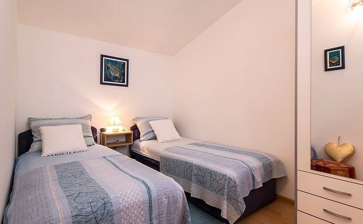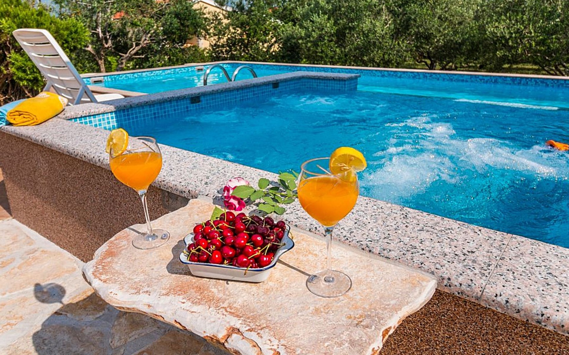 Huis "Marija", omgeven door velden. Rustige, zonnige ligging, 3.6 km van zee, 3.6 km van het strand. Voor alleengebruik: terrein 4.000 m2 (omheind), openluchtzwembad hoekig, verwarmd (55 m2, seizoensgebonden beschikbaarheid: 01.Mei. - 15.Okt.). Buitendouche, onderhoud zwembad door de eigenaar/tuinman. In het huis: internetaansluiting, sauna, centrale verwarming, wasmachine. Parkeerplaats bij het huis op het terrein. Supermarkt 1.6 km, bushalte 1.2 km, treinstation 2.3 km, kiezelstrand 3.6 km. Vliegveld 6 km van het huis.
