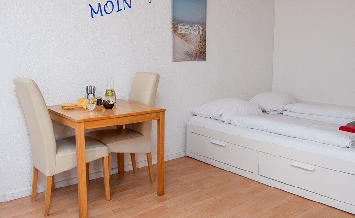 Zeer eenvoudig appartementencomplex. In het centrum van Norddeich, 400 m van zee, 400 m van het strand, aan een doodlopende weg. Voor medegebruik: patio. In het huis: centrale verwarming. Supermarkt 1.7 km, restaurant 250 m, bakkerij 250 m, café, bushalte 500 m, station 1.5 km, veerboot 1.5 km, zandstrand 400 m, openluchtzwembad 14 km, overdekt zwembad 500 m. Golfterrein (18 holes) 8 km, surfschool 750 m, tennis 2.5 km, midgetgolf 500 m, kinderspeelplaats 600 m.