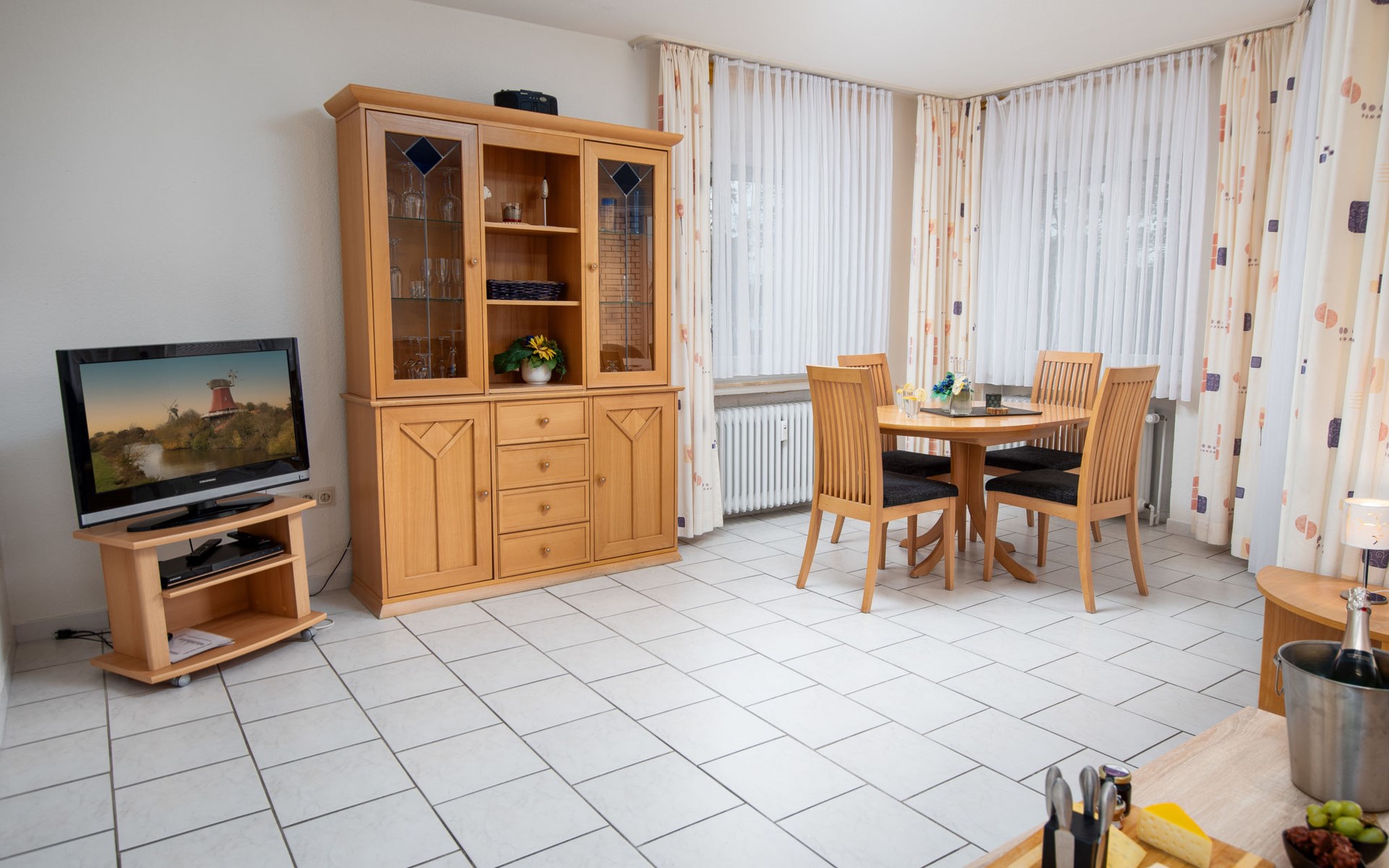 Flatgebouw van 4 verdiepingen. In de plaats, centrale ligging, 300 m van zee, 200 m van het strand. In het huis: lift, bergruimte voor fietsen, centrale verwarming. Parkeerplaats bij het huis. Supermarkt 1.5 km, restaurant 50 m, bakkerij 50 m, café, bushalte 300 m, station "Norddeich" 1.2 km, veerboot 1.2 km, zandstrand 200 m, overdekt zwembad 200 m. Golfterrein (18 holes) 8 km, surfschool 300 m, tennis 2.4 km.