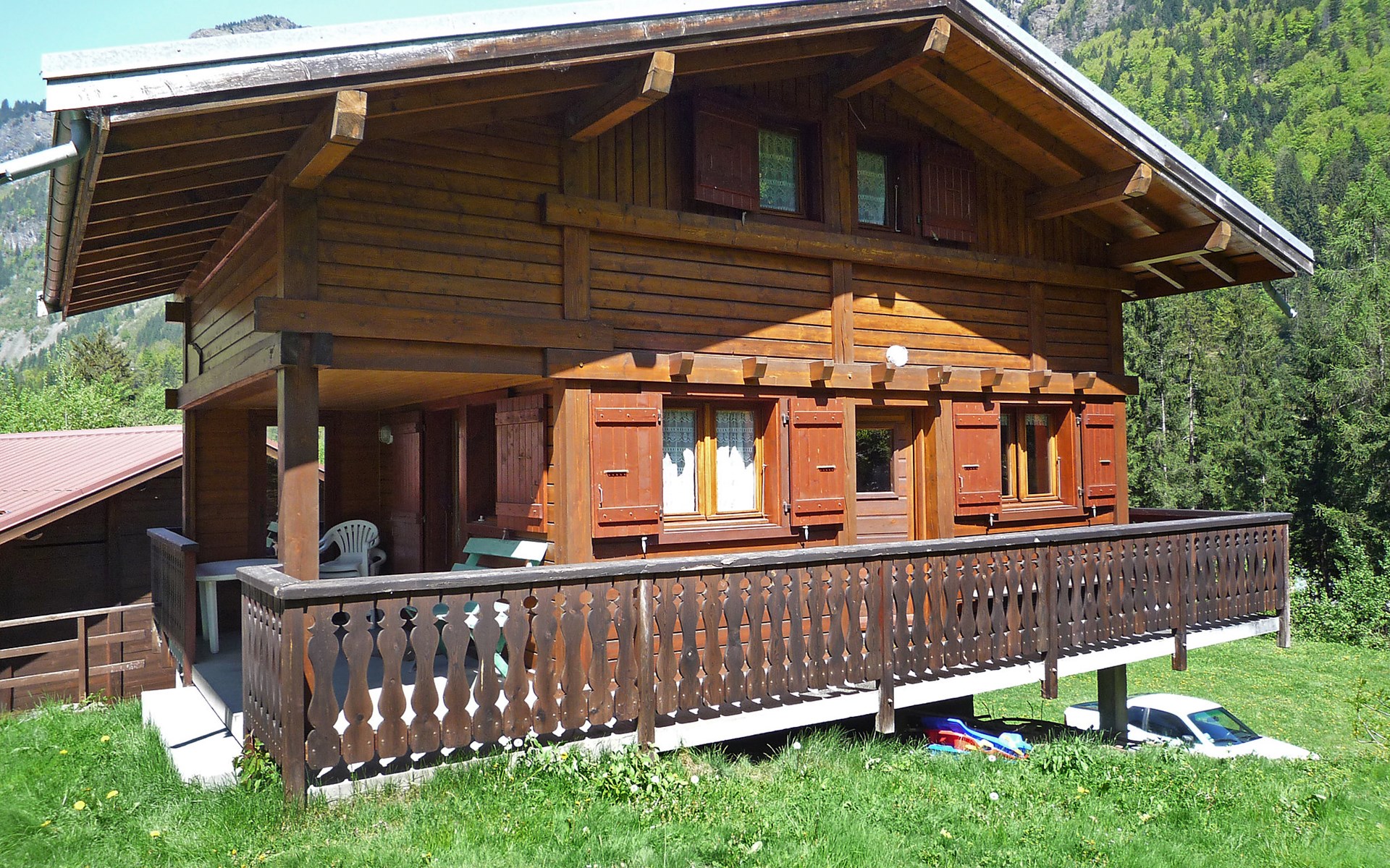 Servoz 6 km van des Houches: Chalet "Pierre Blanche", van 2 verdiepingen. In de wijk Le Lac, 1 km van het centrum van Servoz, rustige ligging. Parkeerplaats bij het huis. Winkel 1 km, winkelcentrum 8 km, restaurant 1 km, bushalte 500 m, station "de Servoz" 450 m. Golfterrein (18 holes) 16.3 km, sportcentrum 15 km, ski faciliteiten 6.8 km, skischool 6.8 km. Auto noodzakelijk.