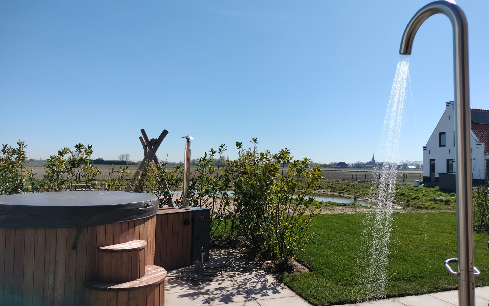 Uniek aan deze villa zijn de uitgebreide wellnessfaciliteiten. Begin de dag fris met een douche in de buitenlucht of in de sunshower met regendouche, ontspan in de barrelsauna, en laat je lichaam tot rust komen in de hottub onder de open lucht. Hier wordt luxe gecombineerd met de rust van het Zeeuwse landschap. Ook je hond is welkom – zo geniet het hele gezelschap mee.