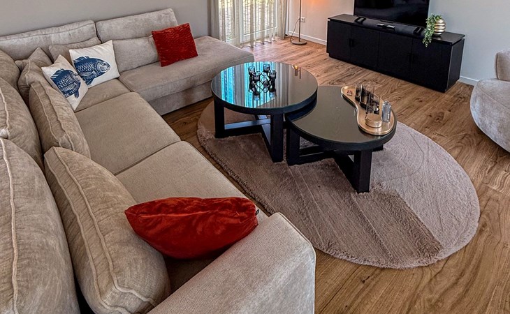 Binnen wacht een comfortabel en sfeervol ingericht verblijf. De villa is voorzien van een volledig uitgeruste keuken met combimagnetron, vaatwasser en koelkast met vriesvak, een gezellige zithoek met flatscreen TV, een moderne badkamer, en slaapkamers met boxspringbedden. Alles is tot in detail afgestemd op comfort en gemak.