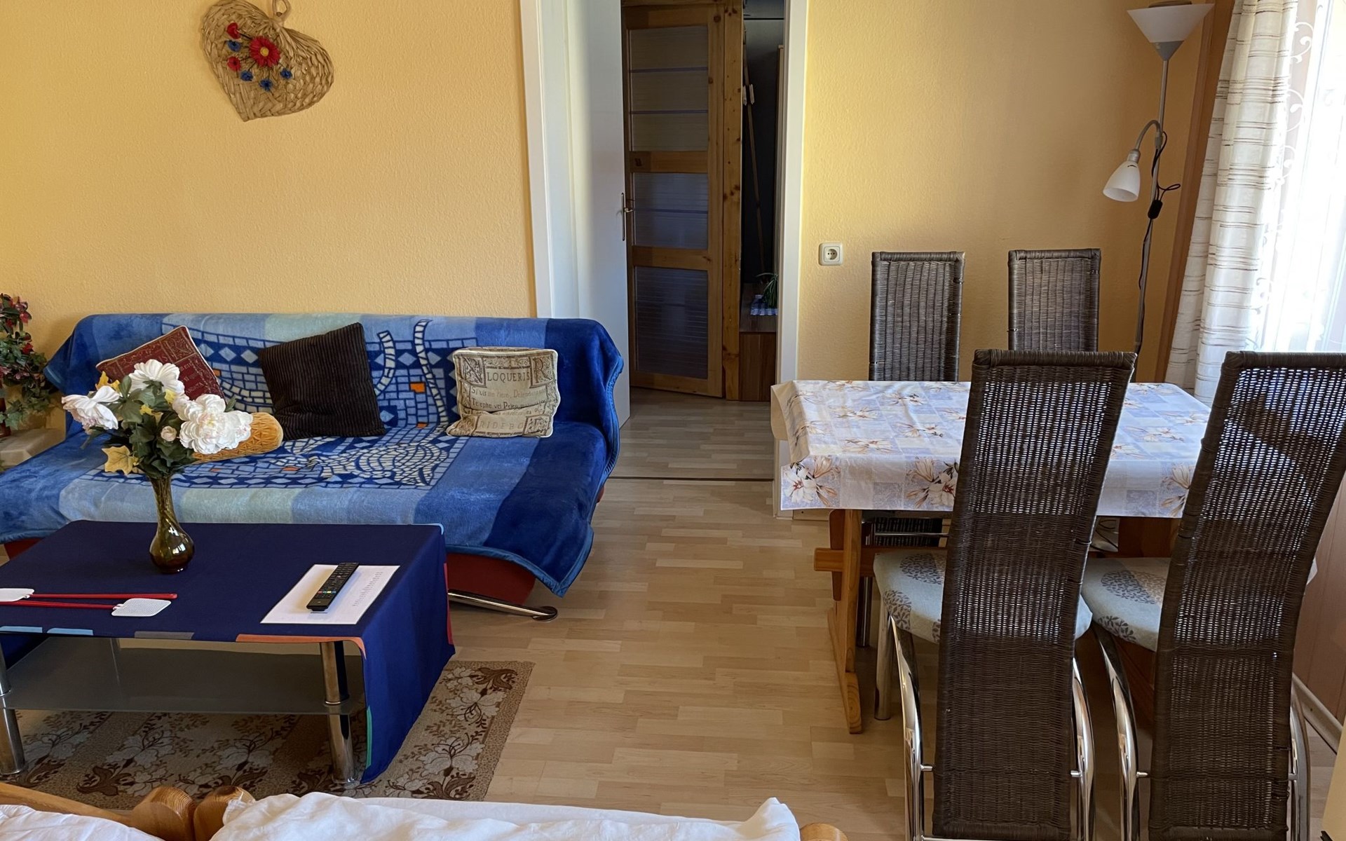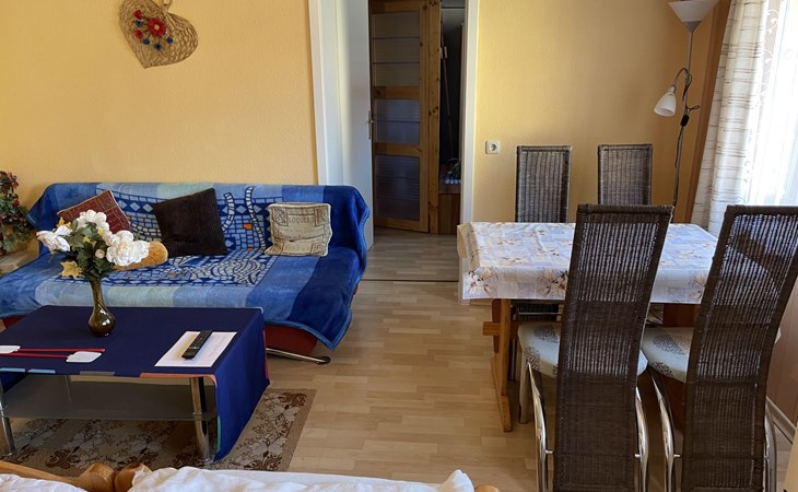 Flatgebouw "Old Hüsung". 500 m van het centrum van Mirow, 12 km van het centrum van Wesenberg, 45 km van het centrum van Waren, in een woonwijk, 600 m van het meer. Voor medegebruik: terrein 2.000 m2 (omheind) met gazon en bomen. Patio, tuinmeubelen, barbecue, kinderspeelplaats, parkeerplaats op het terrein. Winkel 150 m, supermarkt 600 m, restaurant 50 m, bushalte "Mirow ZOB" 600 m, grasstrand 1.2 km, overdekt zwembad 25 km. Attracties in de buurt: Müritz Nationalpark 5 km.
